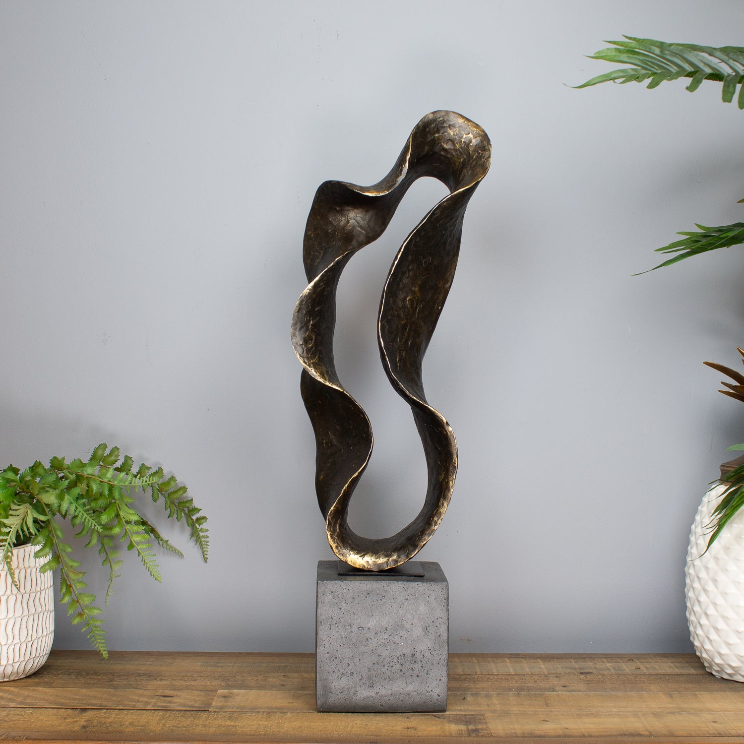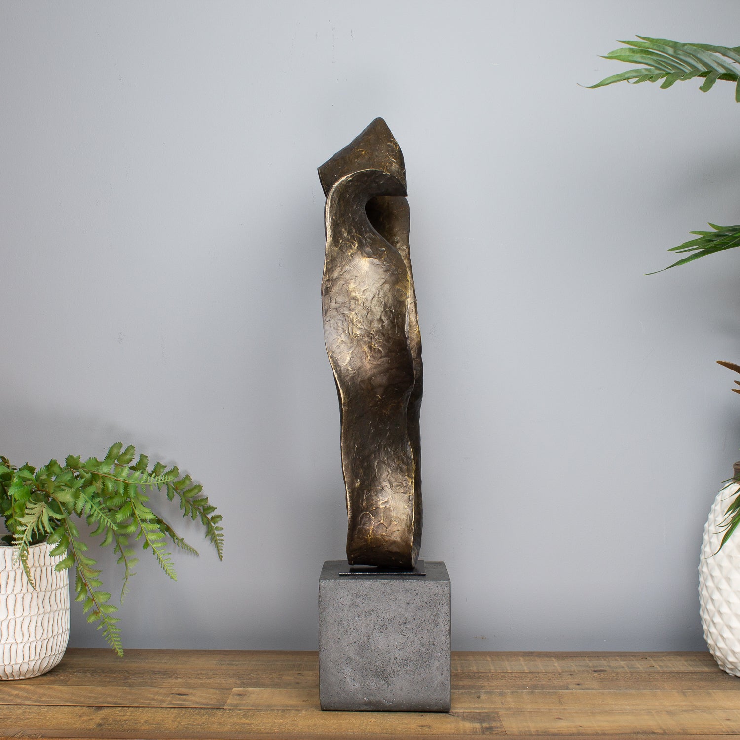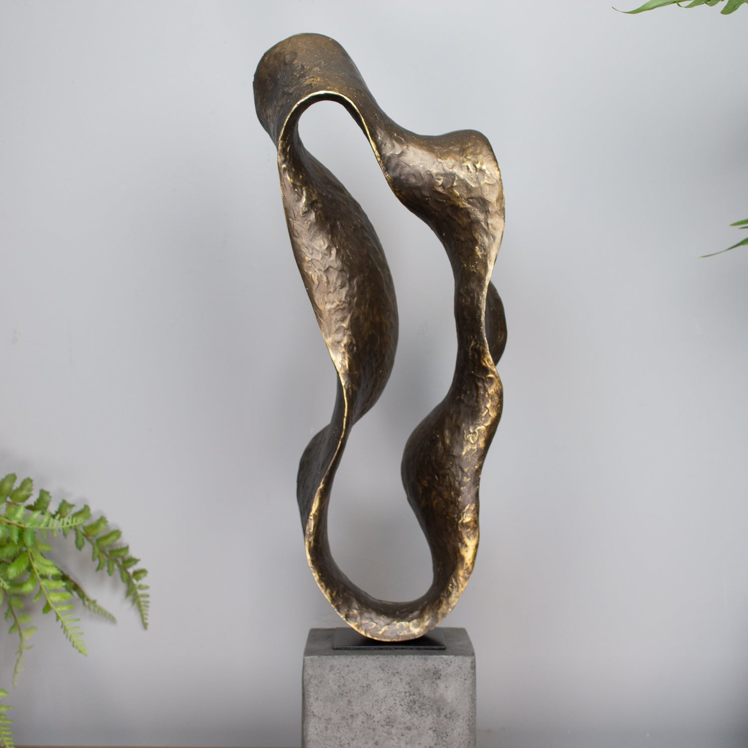 Add height and elegance to your space with this Tall Abstract Ribbon Sculpture, a beautifully flowing form crafted from bronze-coloured resin. With its smooth, twisting design and refined sense of movement, this piece brings a feeling of balance, fluidity, and artistic sophistication to any interior.