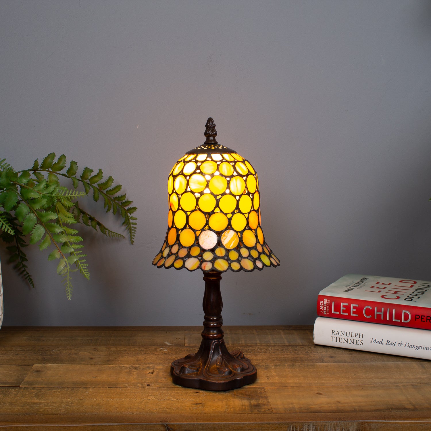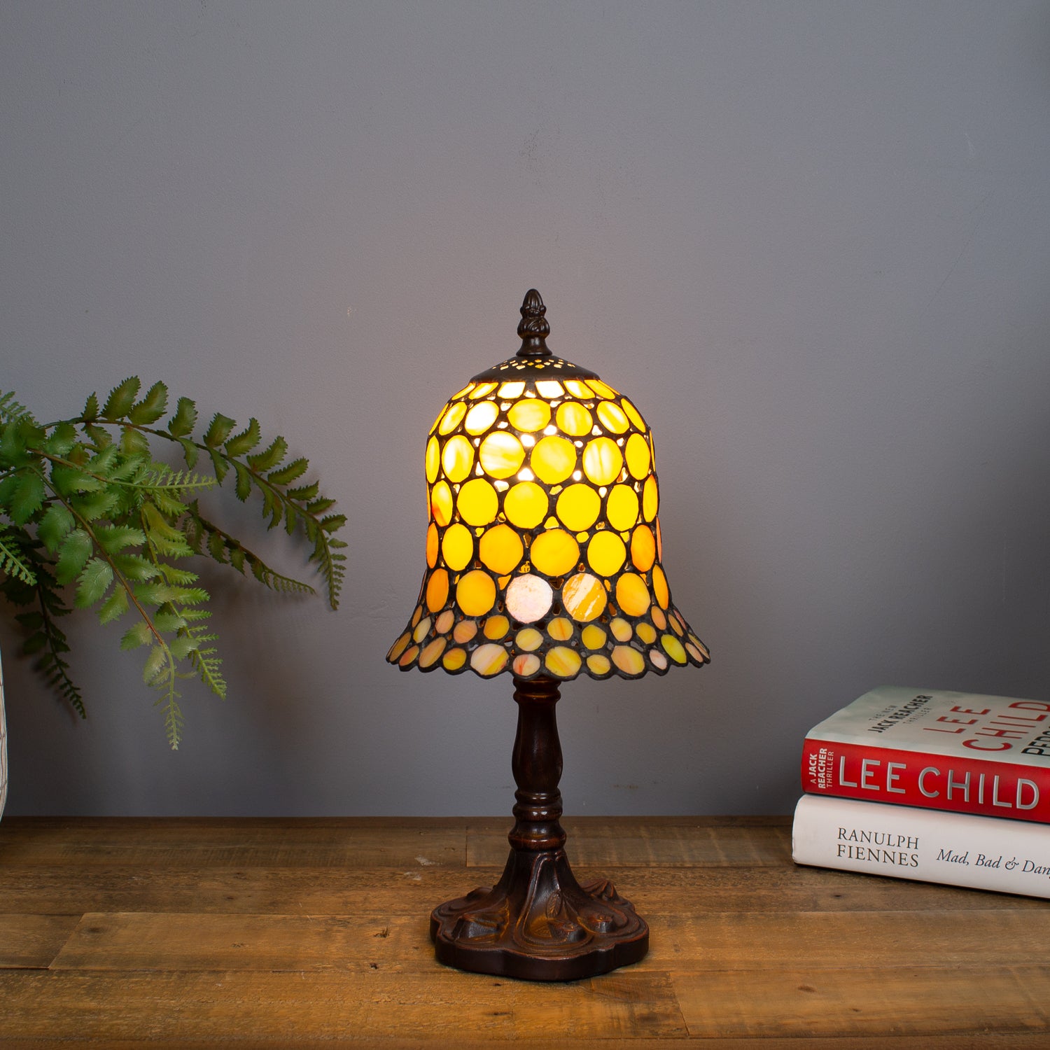 Bring a touch of vintage charm and warming colour to your home with our Spot Design Tiffany Lamp. With its beautiful bell-shaped shade crafted from favrile stained glass in a stylish spot design, this compact table lamp is the perfect little statement piece. Whether on a bedside, hallway console or tucked in a cosy reading nook, it casts a warm, ambient glow thatβs pure magic when lit.