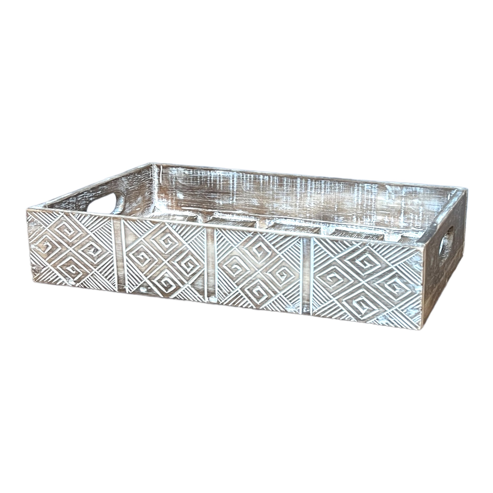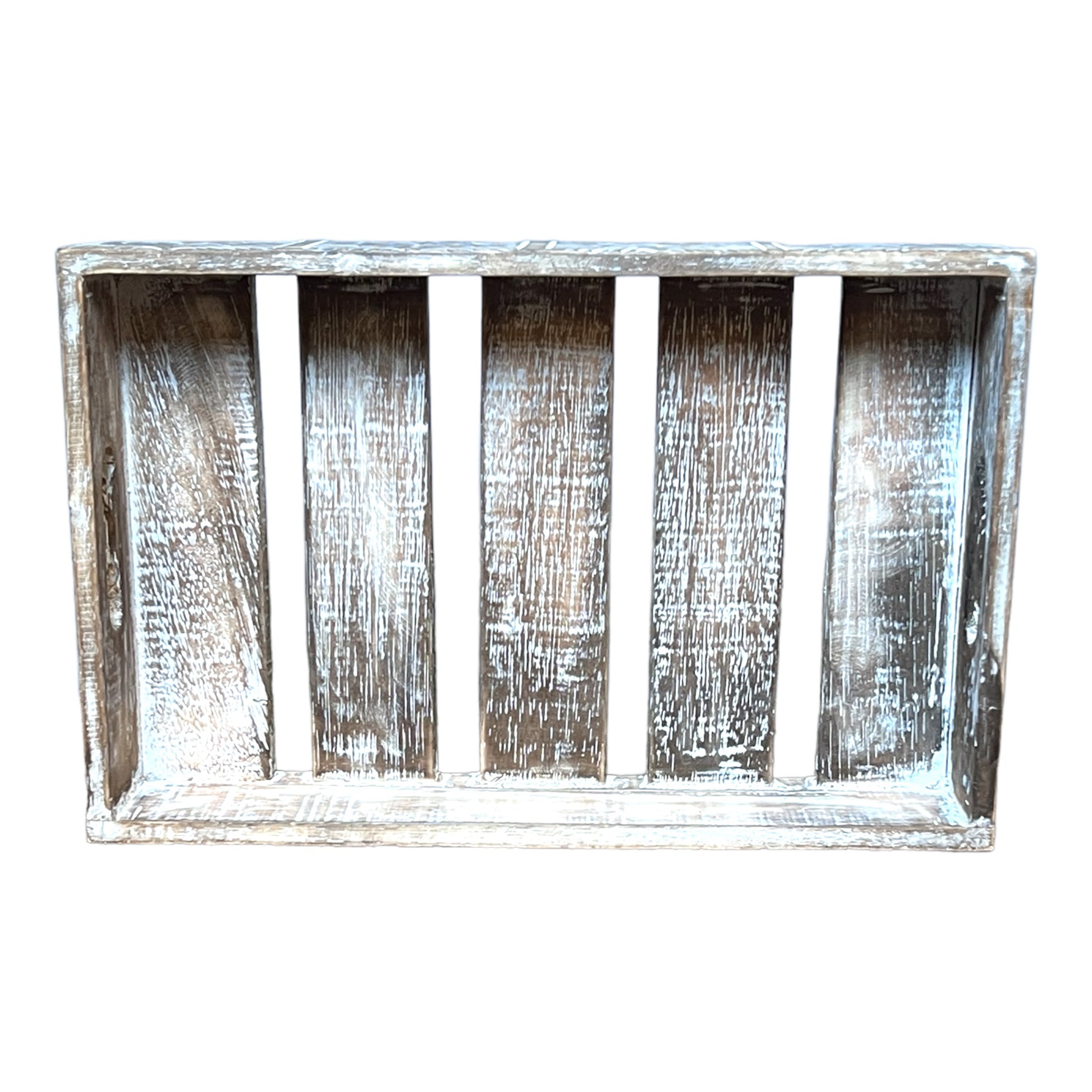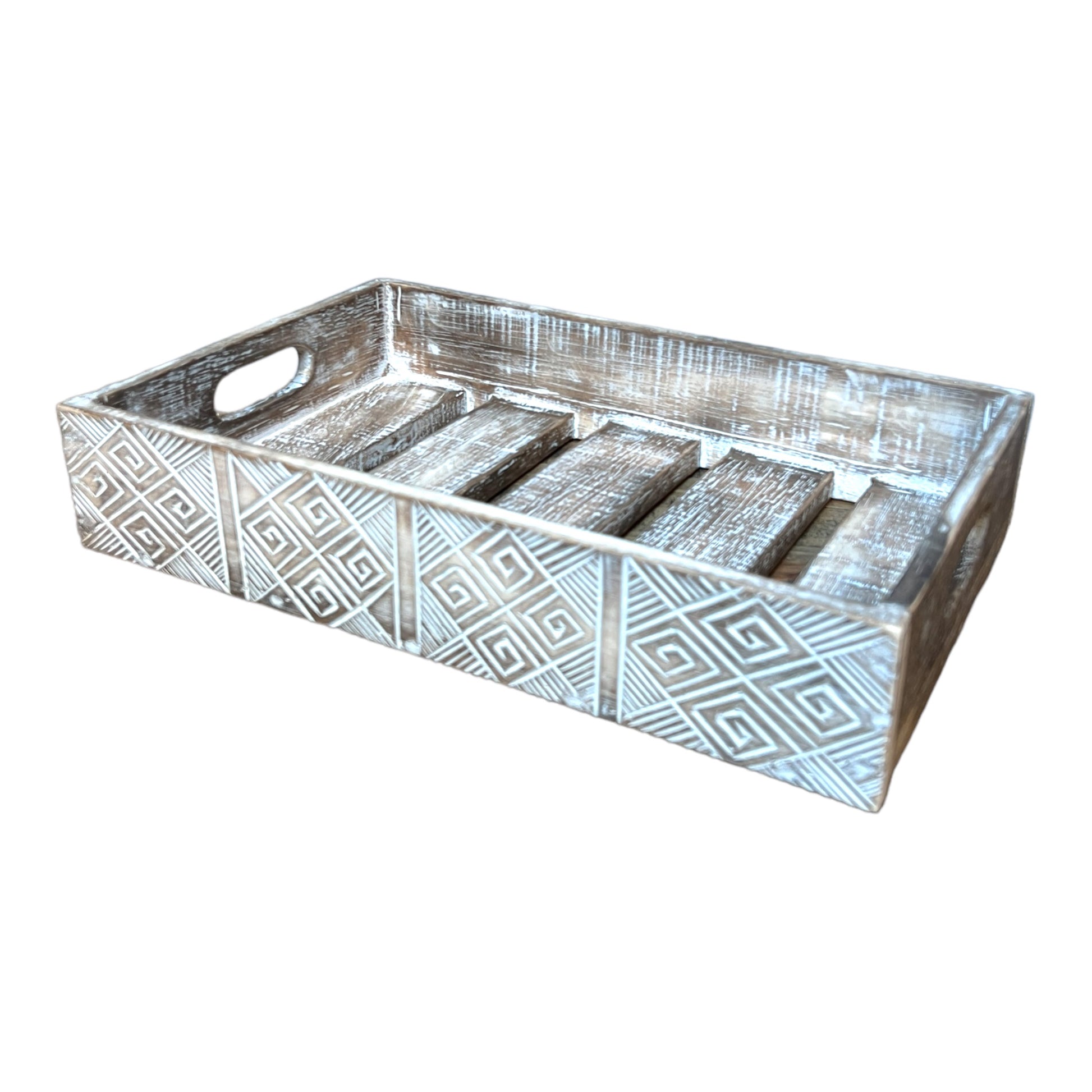 Add a touch of practical beauty to your kitchen with the Balinese Limewashed Wooden Tray. This tray combines functionality with style, making it the perfect addition to your home decor. Its sleek design and natural material will add a touch of elegance to any space.