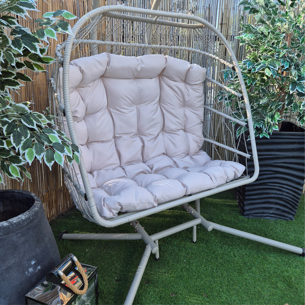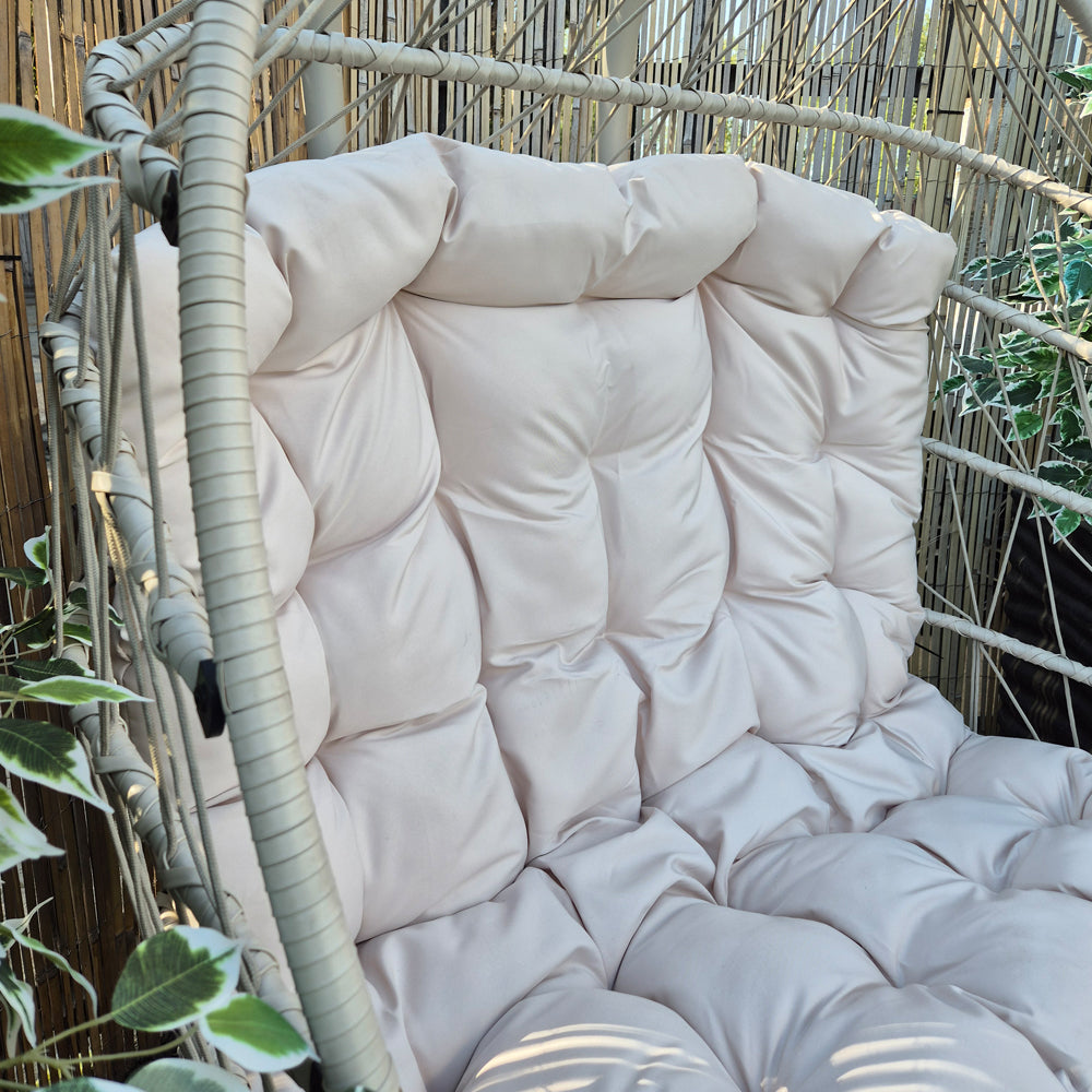 The gently curved basket cradles plush, fire-retardant cushions—thick, soft, and as inviting as an afternoon nap. Their warm, natural tones are effortlessly stylish, blending beautifully with both lush greenery and chic conservatory corners.
