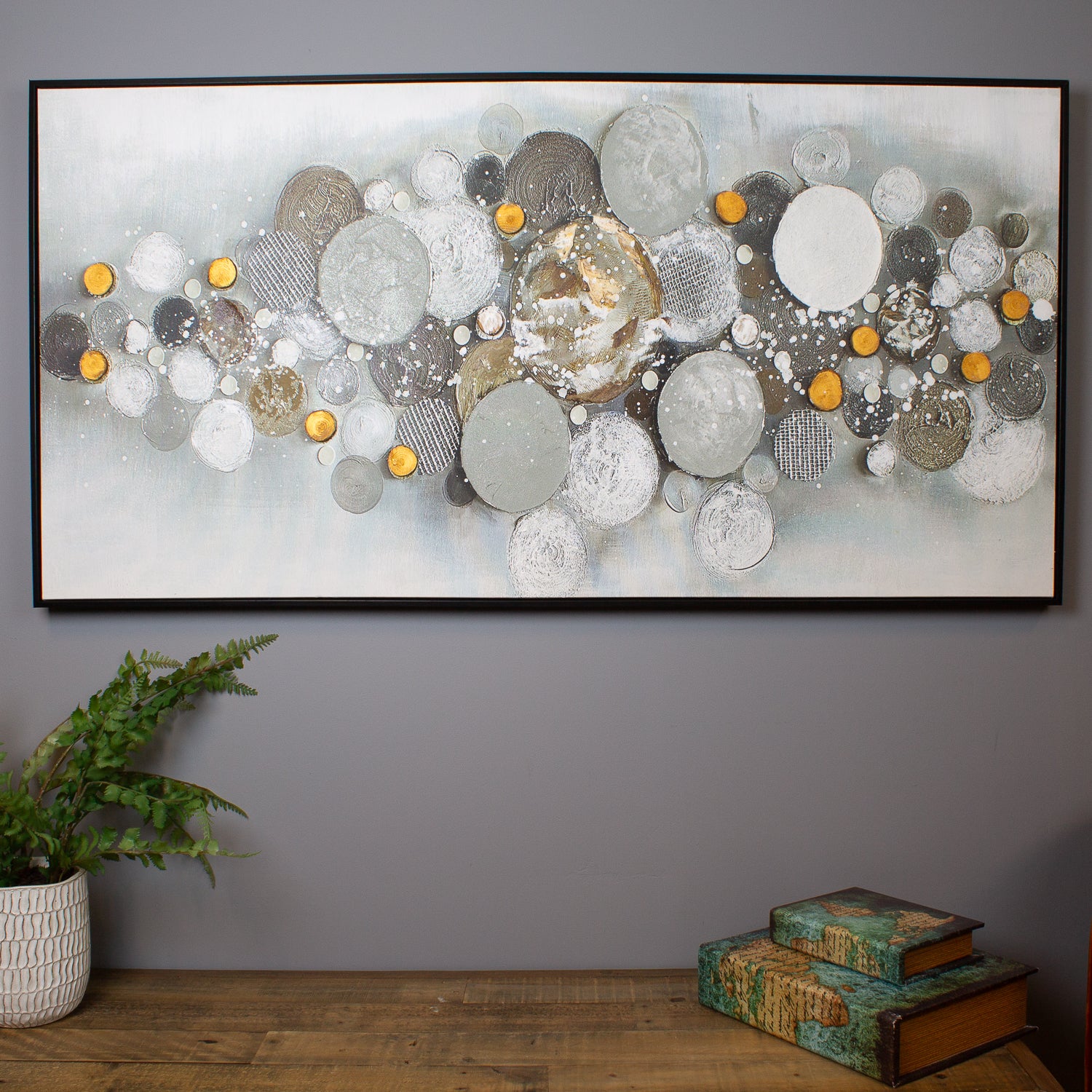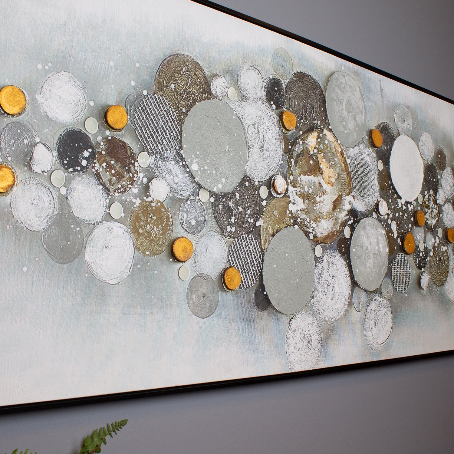 Introduce a sense of calm and intrigue to your space with the Circle Scatter Oil Canvas, a hand-finished masterpiece that blends neutral shades with unique textures. The abstract arrangement of circles creates a dynamic yet soothing composition, making it a perfect statement piece for modern and minimalist interiors.