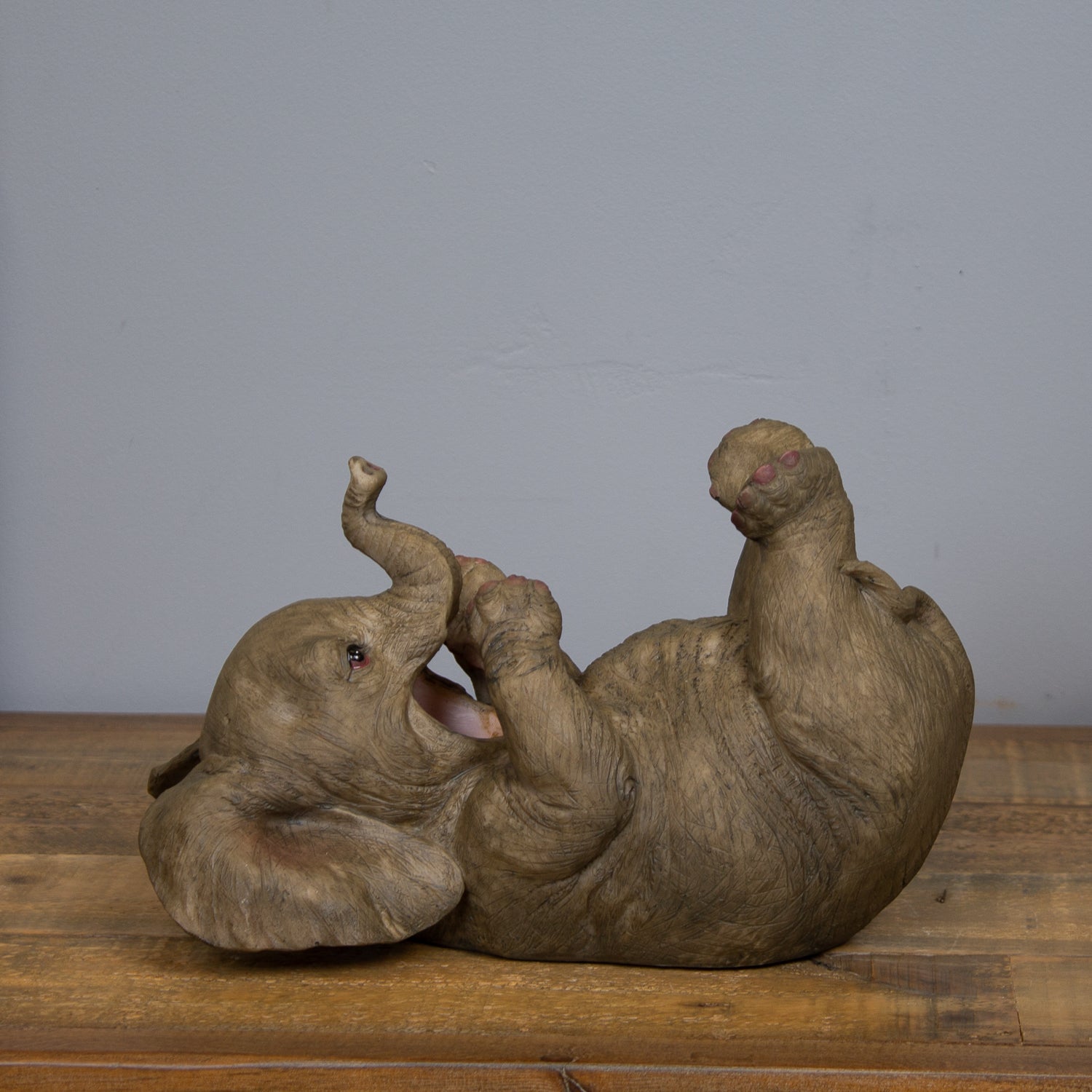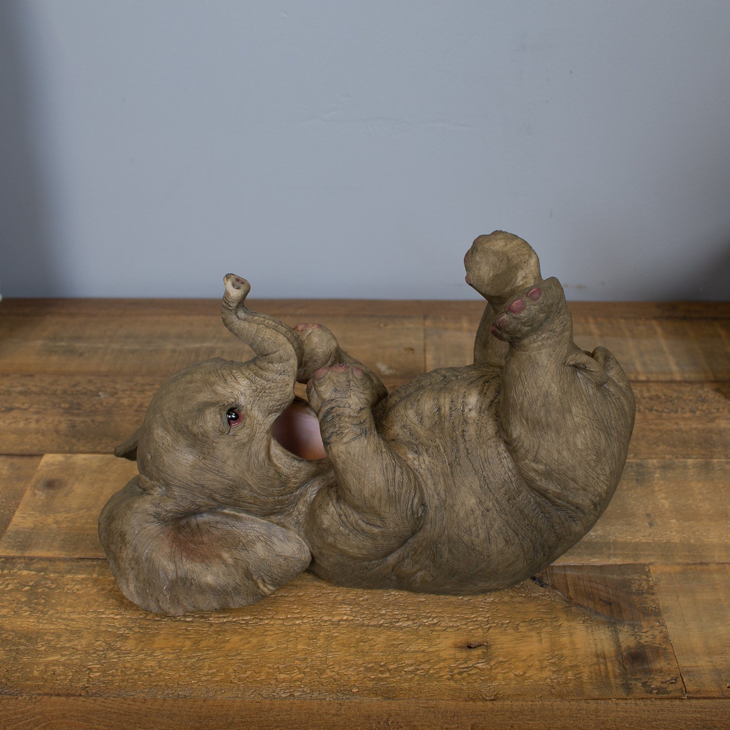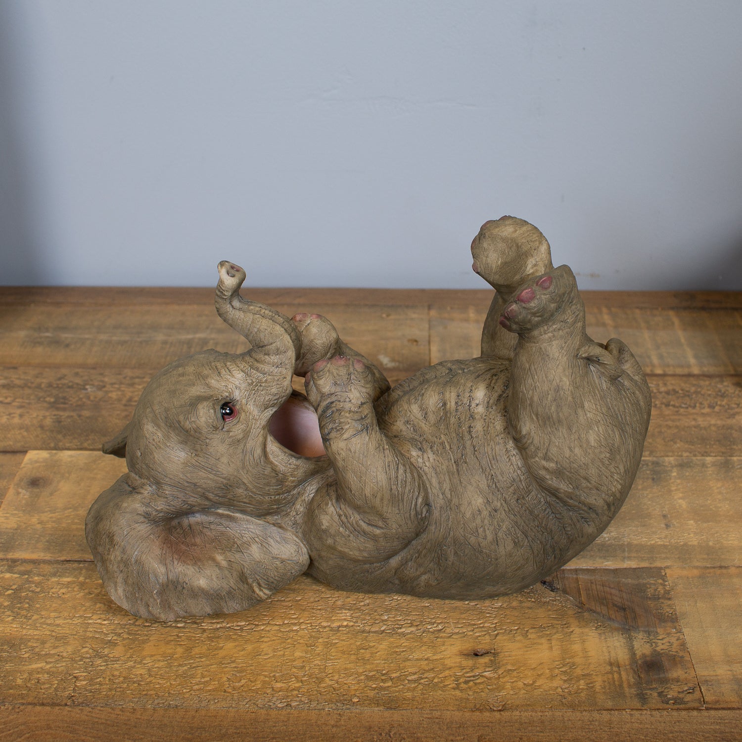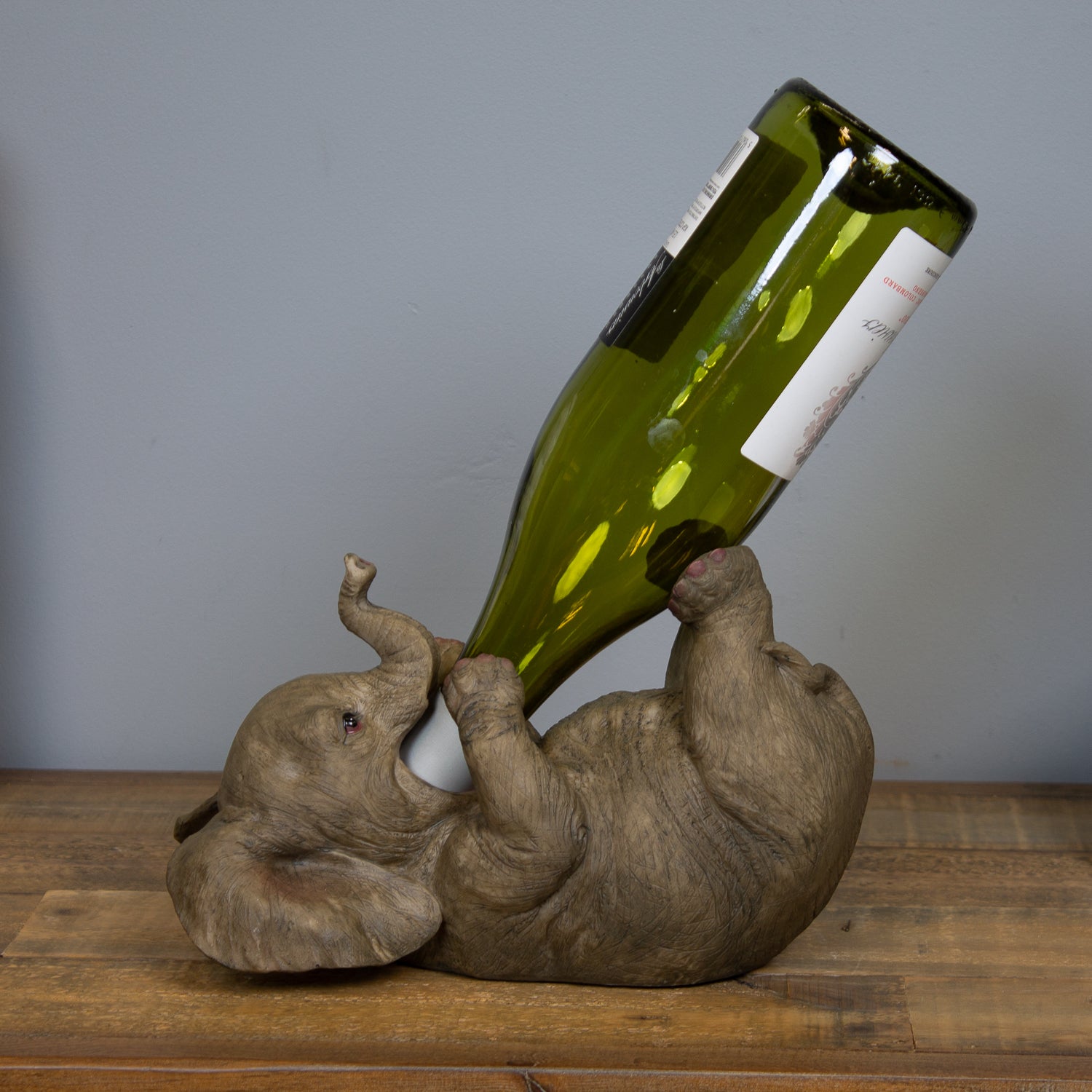 Lying cheekily on its back with feet in the air, this Resin Baby Elephant Wine Bottle Holder is as delightful as it is functional. Perfectly posed to cradle your favourite bottle, this playful pachyderm brings a light-hearted charm to your home bar or dining table.