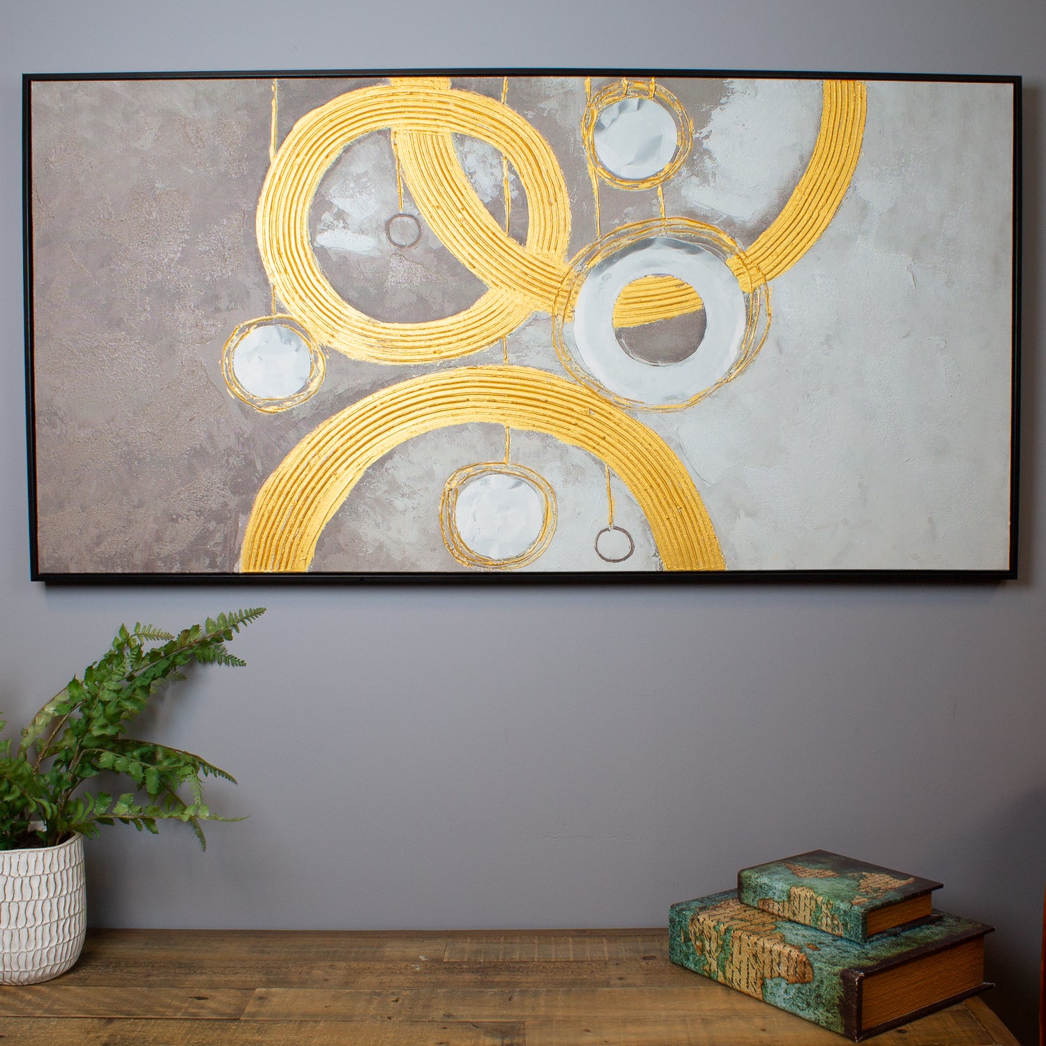 Elevate your space with the Entwined Circles Oil Canvas, a 122cm x 62cm statement piece that exudes modern sophistication and artistic depth. Featuring interconnected circles, a textured surface, and metallic embellishments, this hand-finished artwork creates a dynamic interplay of light, movement, and dimension.