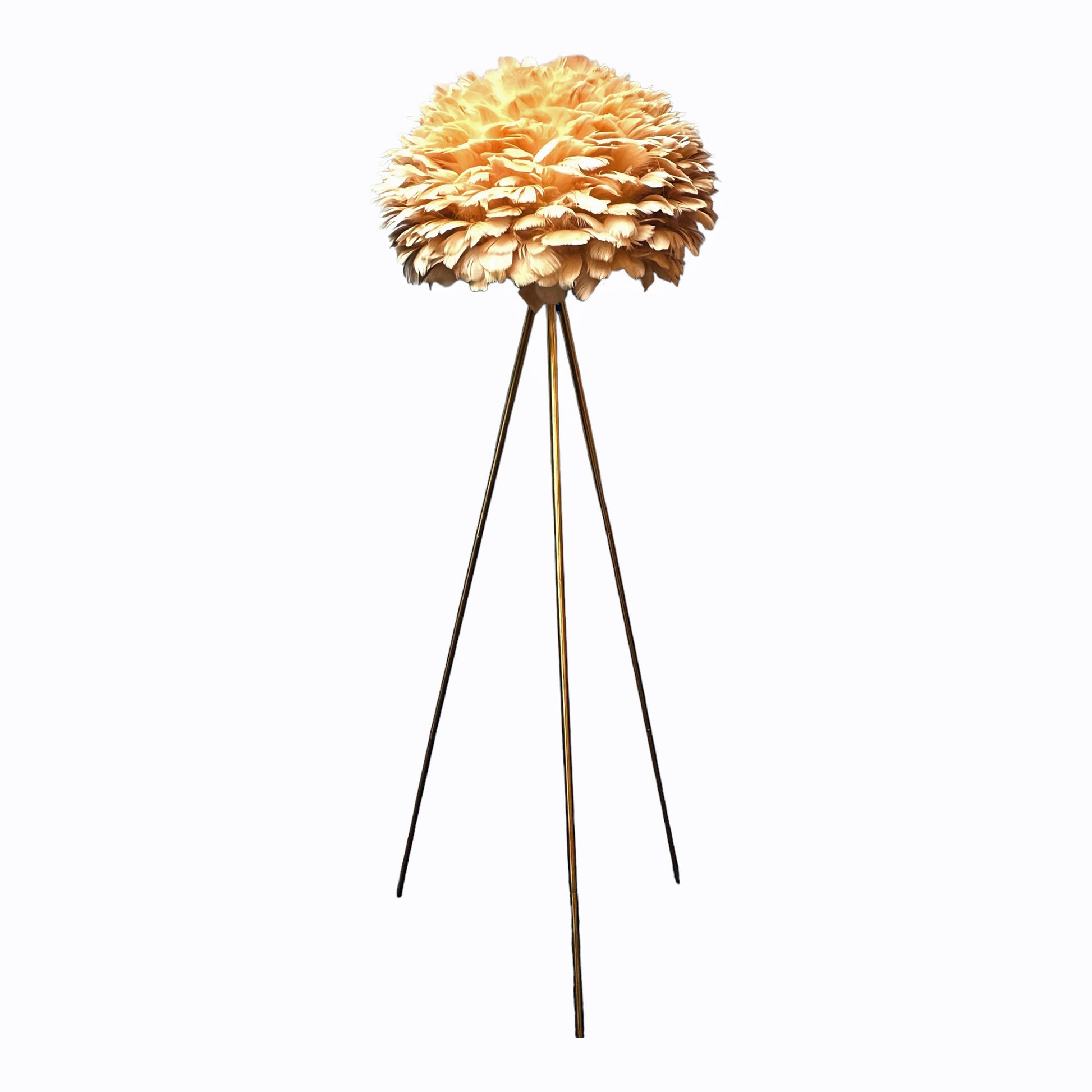 Indulge in the whimsical beauty of our Feather Standard Lamp in Gold! This stunning lamp features soft and delicate caramel gold feathers that will add a touch of elegance to any room. Illuminate your space with a warm and inviting glow, while making a statement with this unique and eye-catching piece.