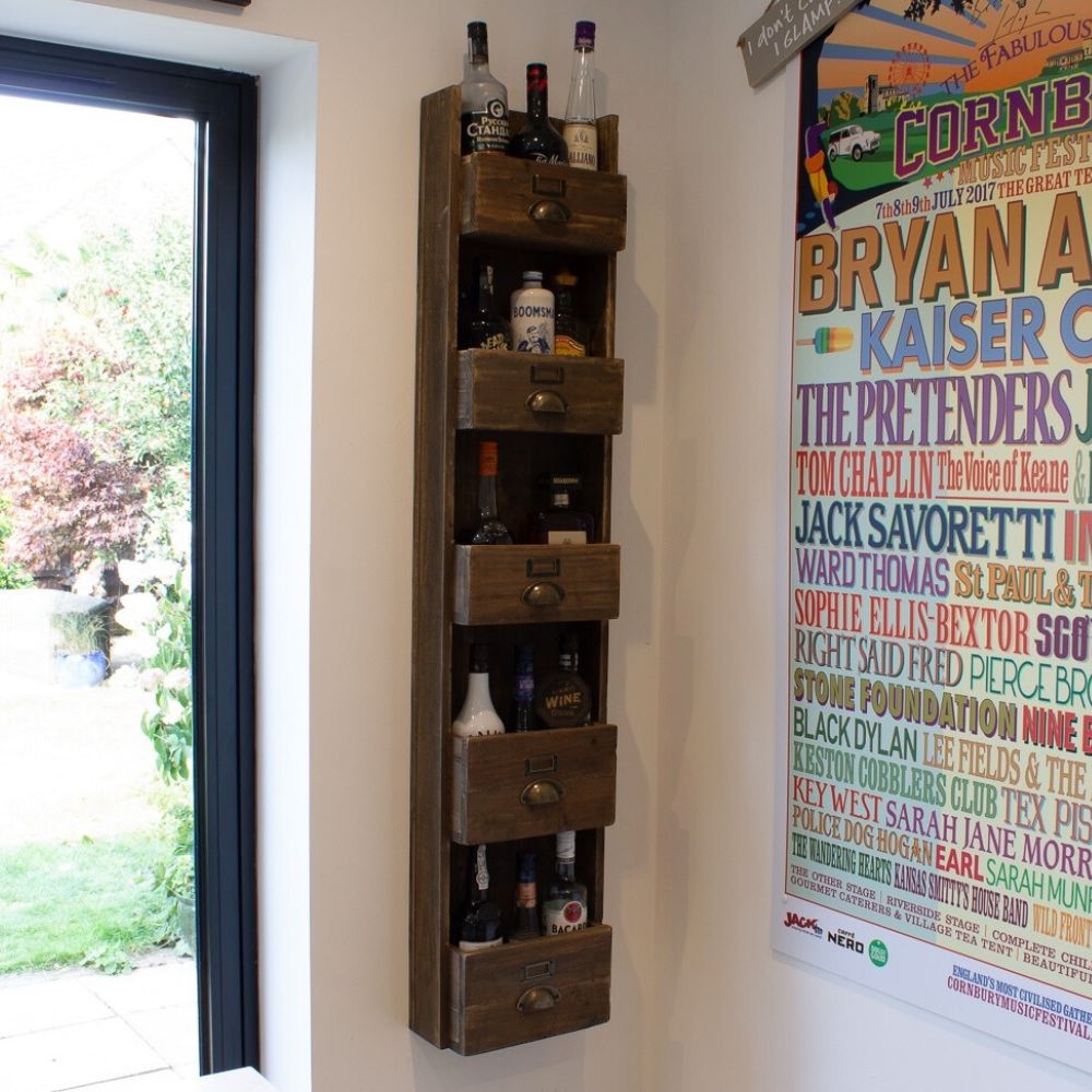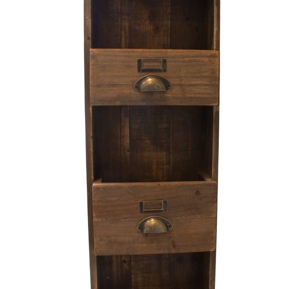 Crafted from reclaimed wood and brimming with vintage soul, The Foundry Bookcase is a wall-mounted wonder that brings both function and heritage to your space. With its five shelves of varying depths, it's cleverly designed to display everything from hardbacks to treasures and trinkets or even a mini bar — without taking up floor space.