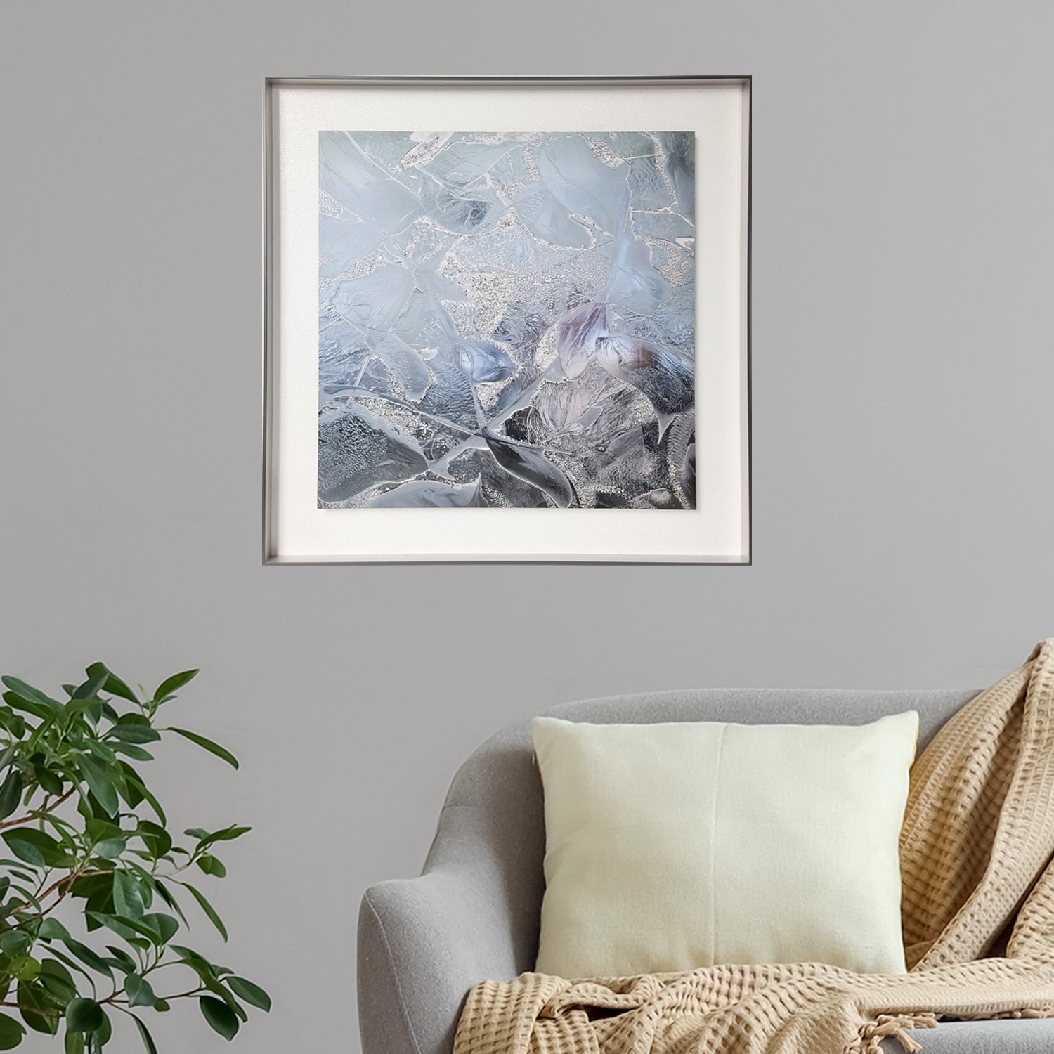 Add a touch of frost-kissed elegance to your home with the Frosty Window Art Print. This abstract masterpiece blends cool blue and grey tones, evoking the serene beauty of winter mornings and the soft glow of frost-covered glass.