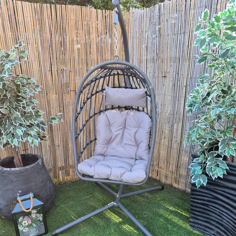 Turn your garden, patio, or conservatory into a snug sanctuary with our Geelong Hanging Egg Chair in Grey. With its graceful silhouette and irresistibly plush cushions, this chair is the definition of laid-back luxury. Whether you're sipping morning coffee, curling up with a good book, or simply swaying your cares away, Geelong creates the perfect escape.