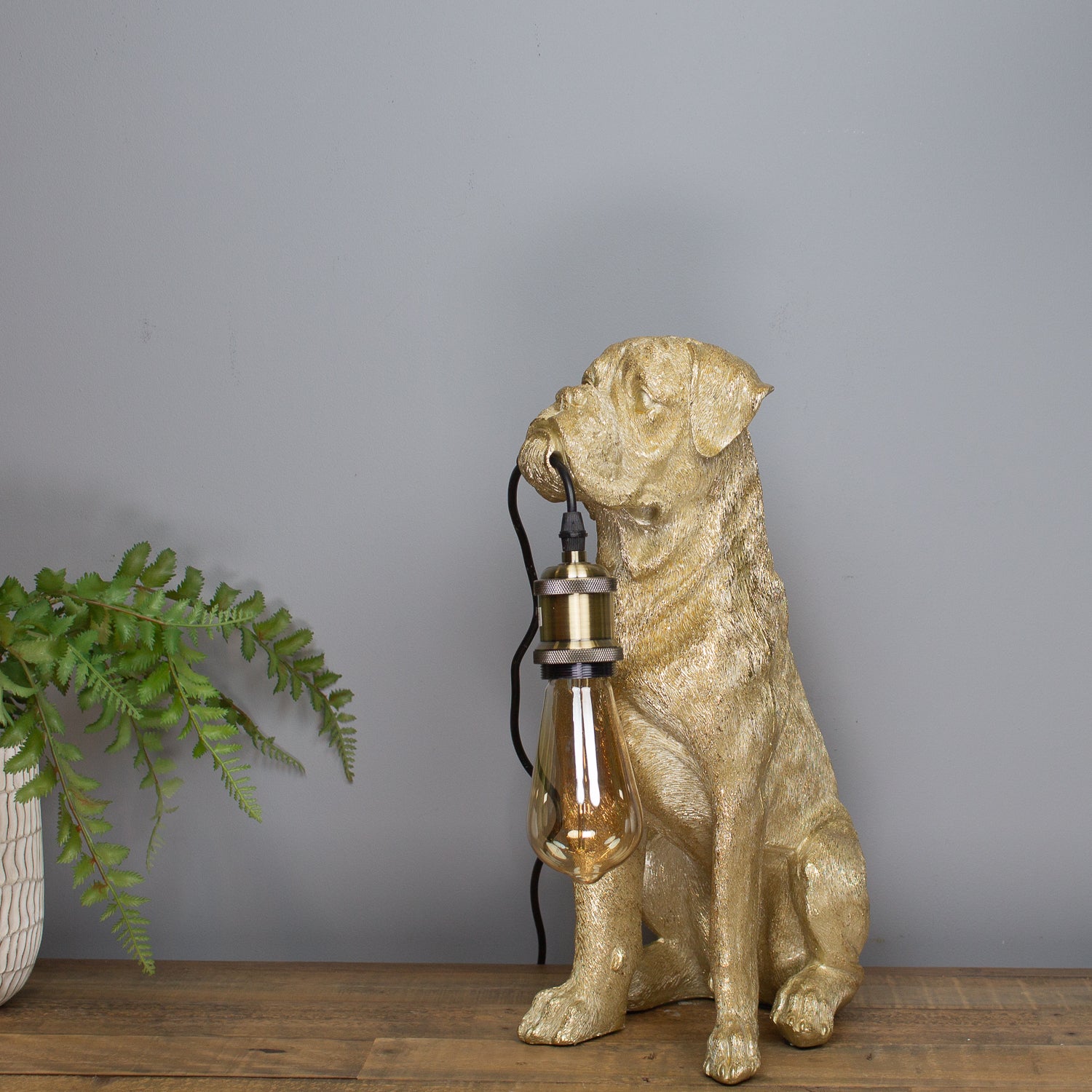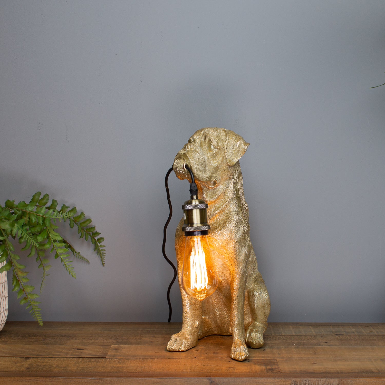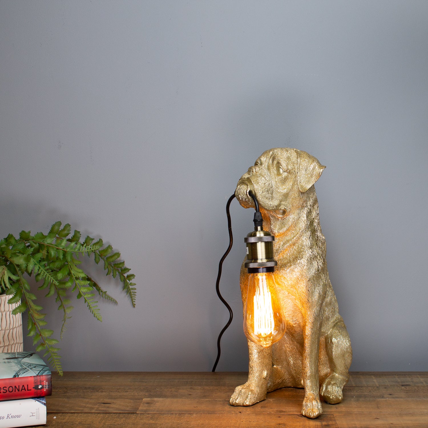 Designed to use an E27 bulb (not included), it looks especially eye-catching with a vintage-style filament bulb, casting a warm, ambient glow. Ideal for adding a bit of glamour and quirk to side tables, shelves or console tops, this lamp is a must-have for dog lovers and design enthusiasts alike.