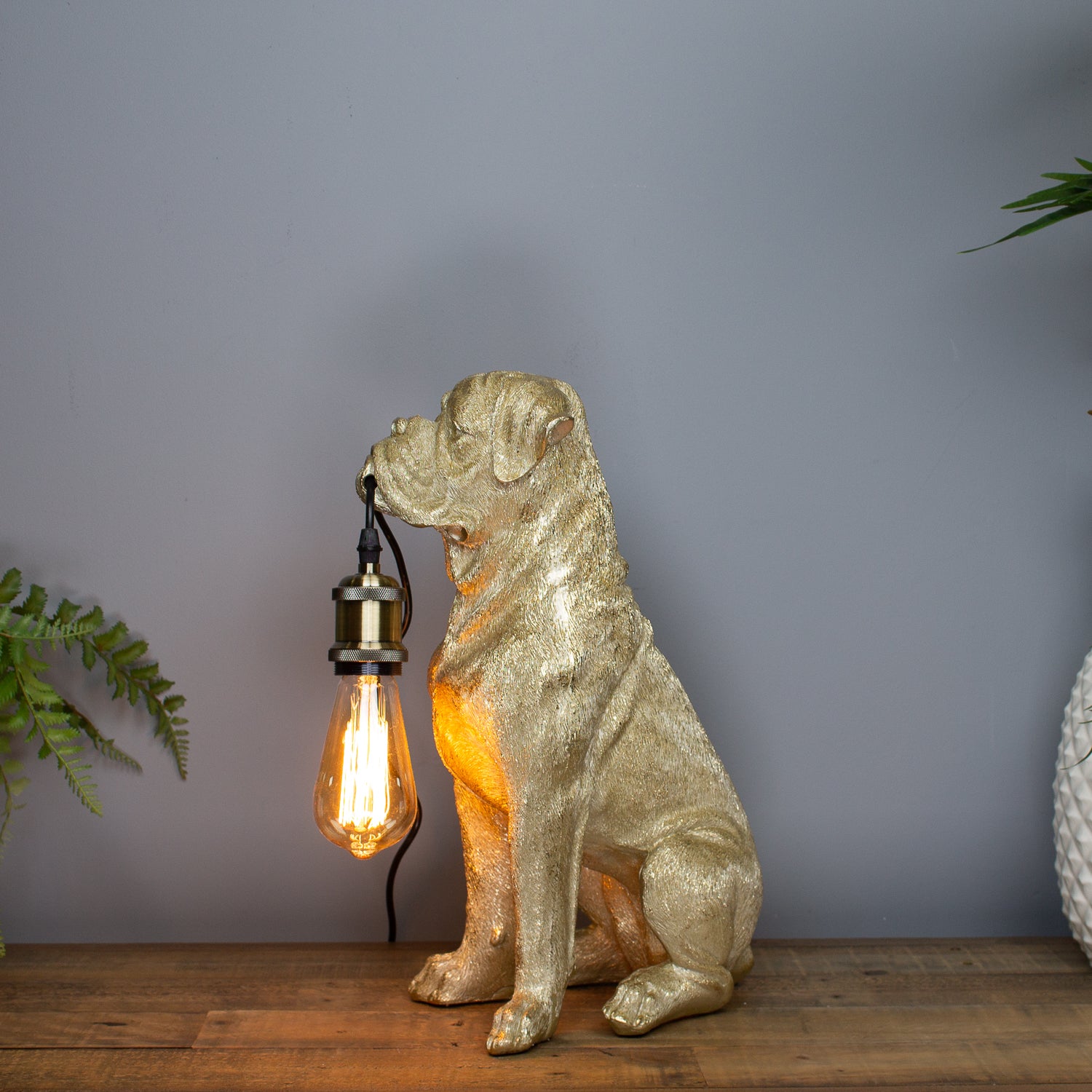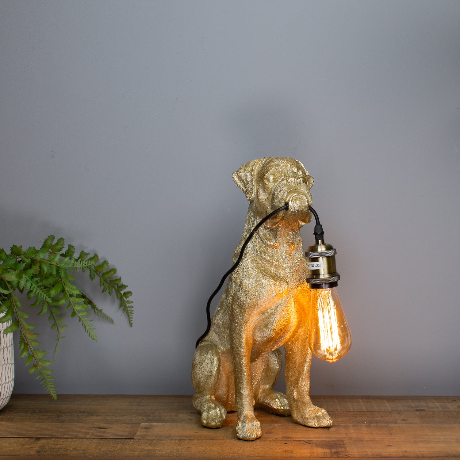 Let the Gold Boxer Dog Lamp bring a golden glow and a wag of whimsical charm to your space—lighting with personality that stands out from the pack.