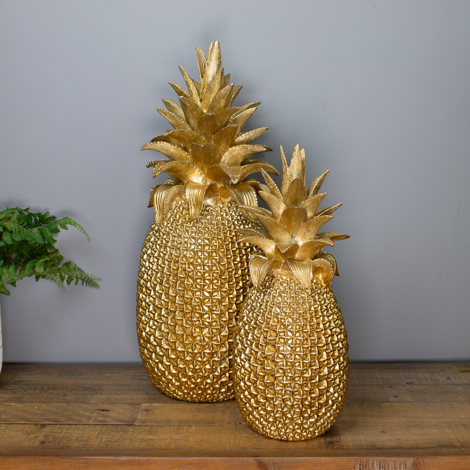 Bring a splash of sunny sophistication to your space with this Large Gold Pineapple Sculpture, crafted from resin 58 cm high and finished in a radiant gold tone. With its eye-catching size and textured detailing, this piece serves up serious tropical vibes with a luxurious edge.