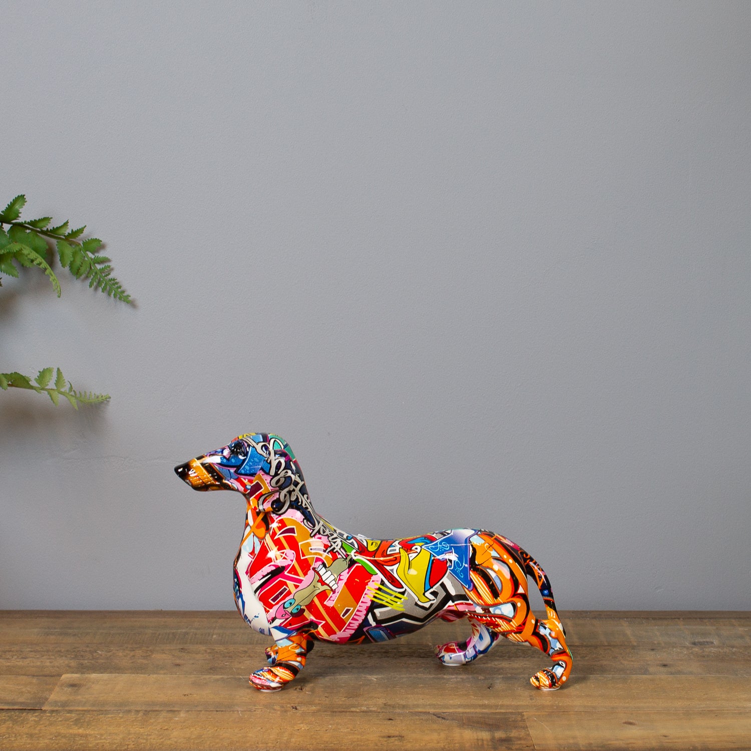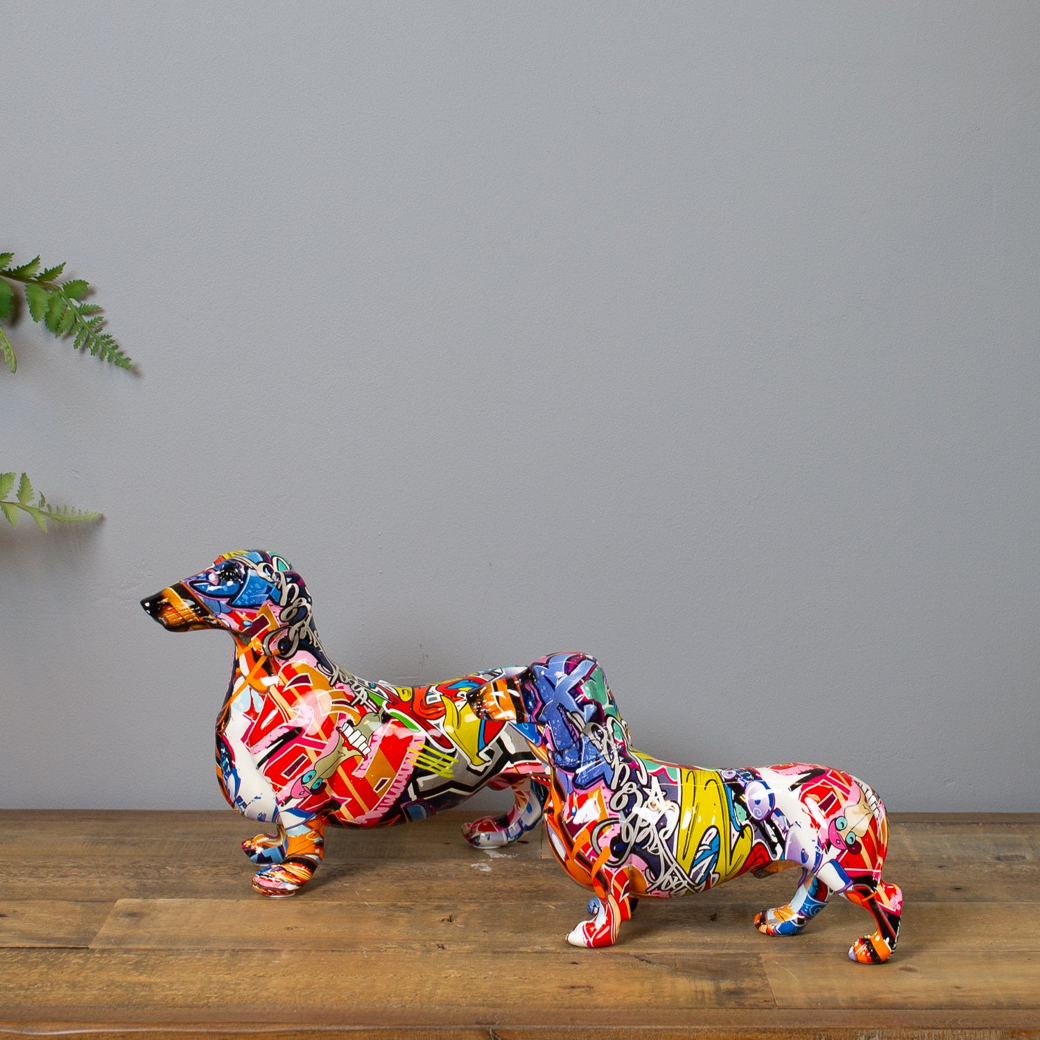 A classic silhouette with a colourful edge, our Graffiti Dachshund Ornament in large size brings playful character and contemporary attitude to any space. With its unmistakable long body and lively stance, this dachshund is more than just décor — it’s a scene-stealer.