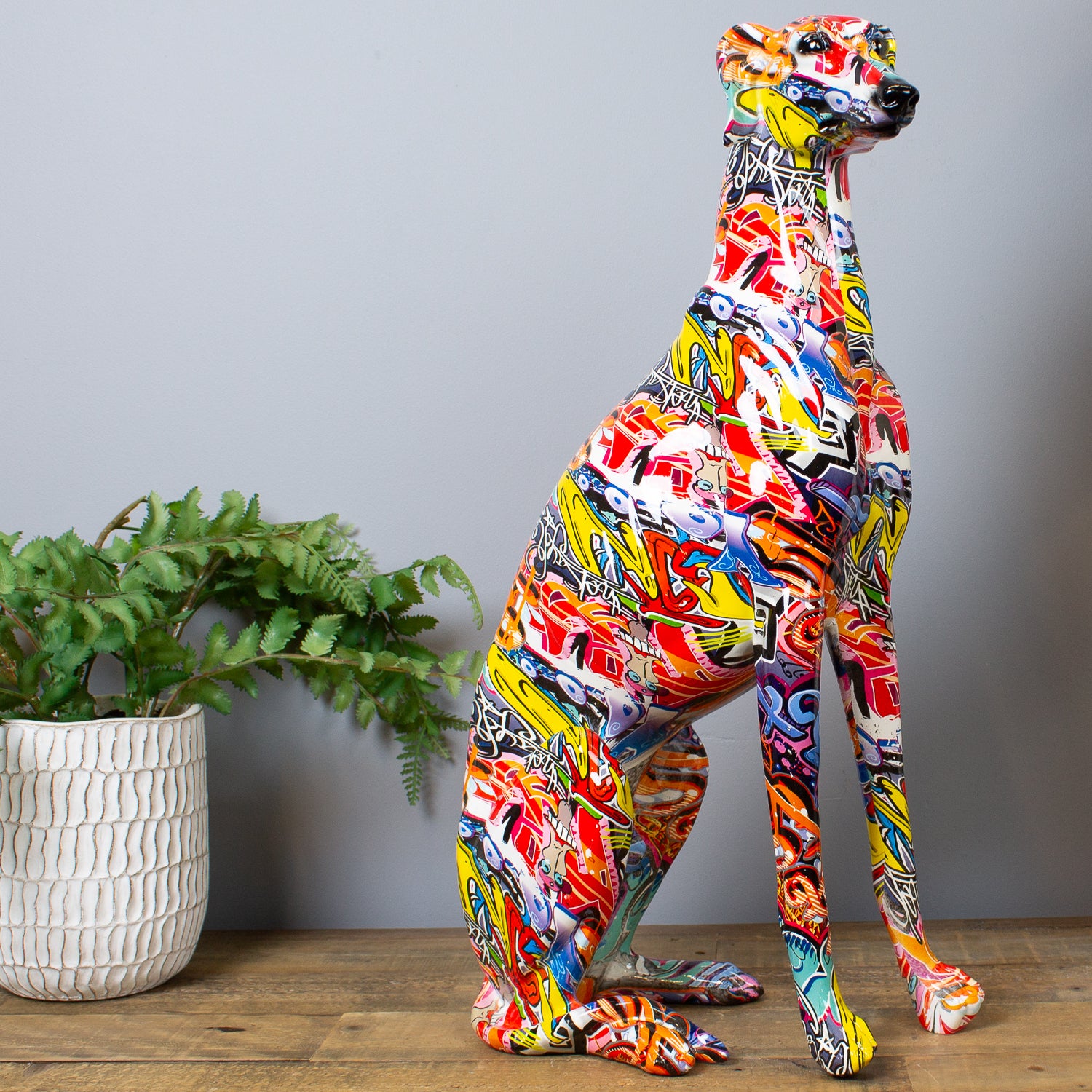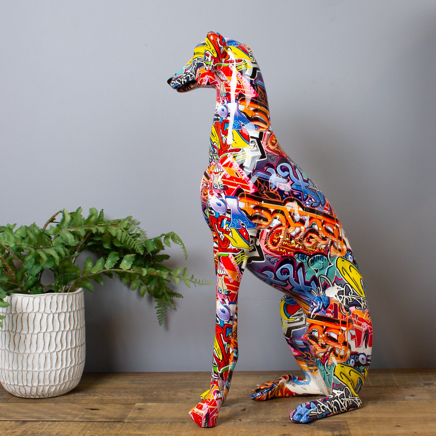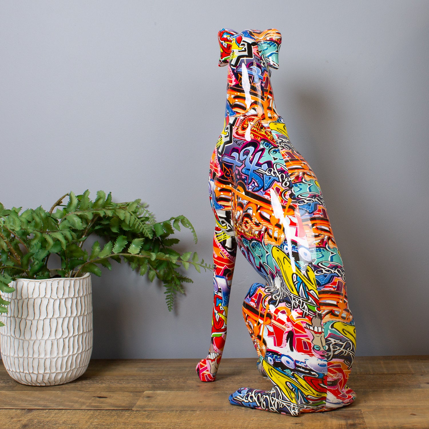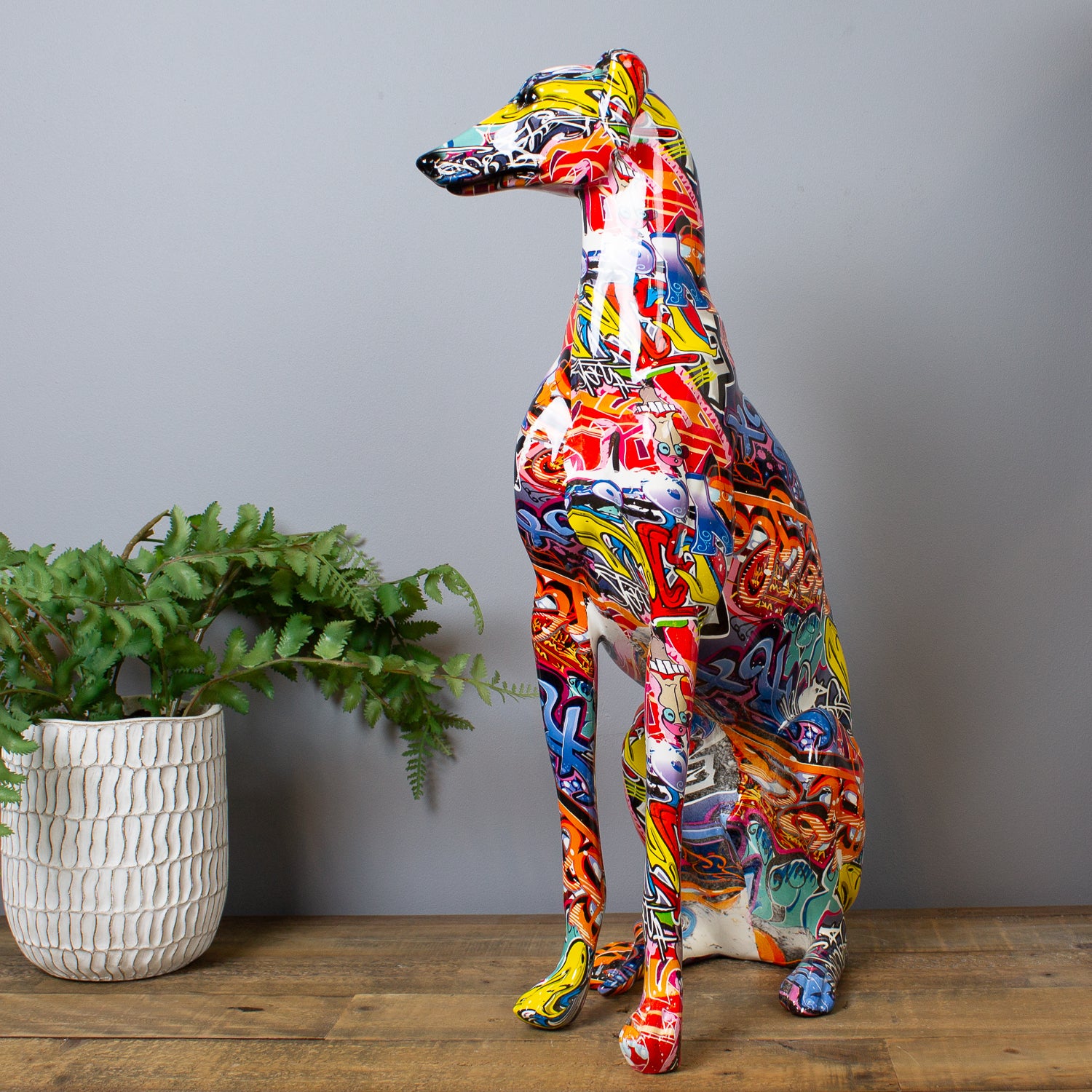 Graffiti Sitting Greyhound Ornament – Elegance Meets Urban Edge