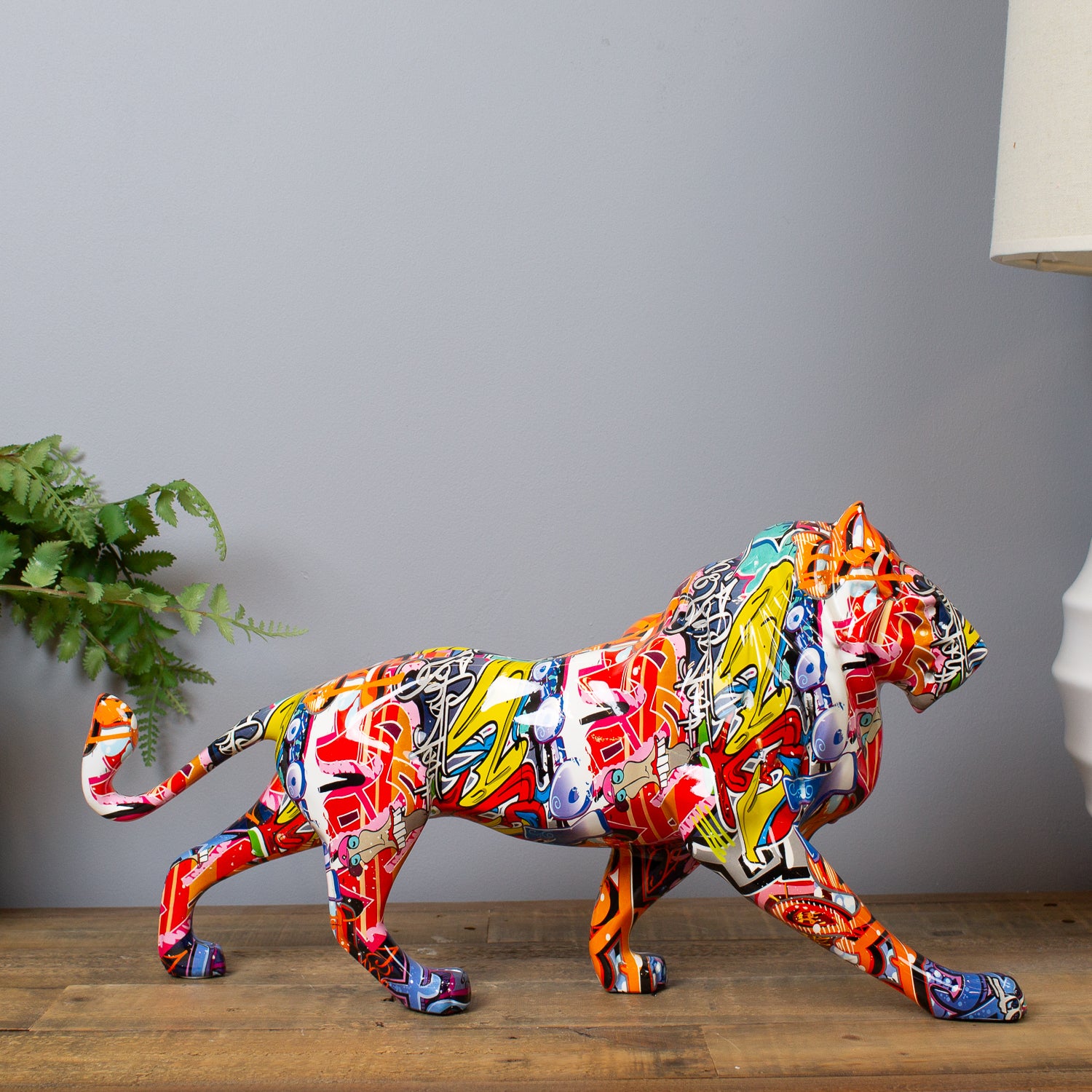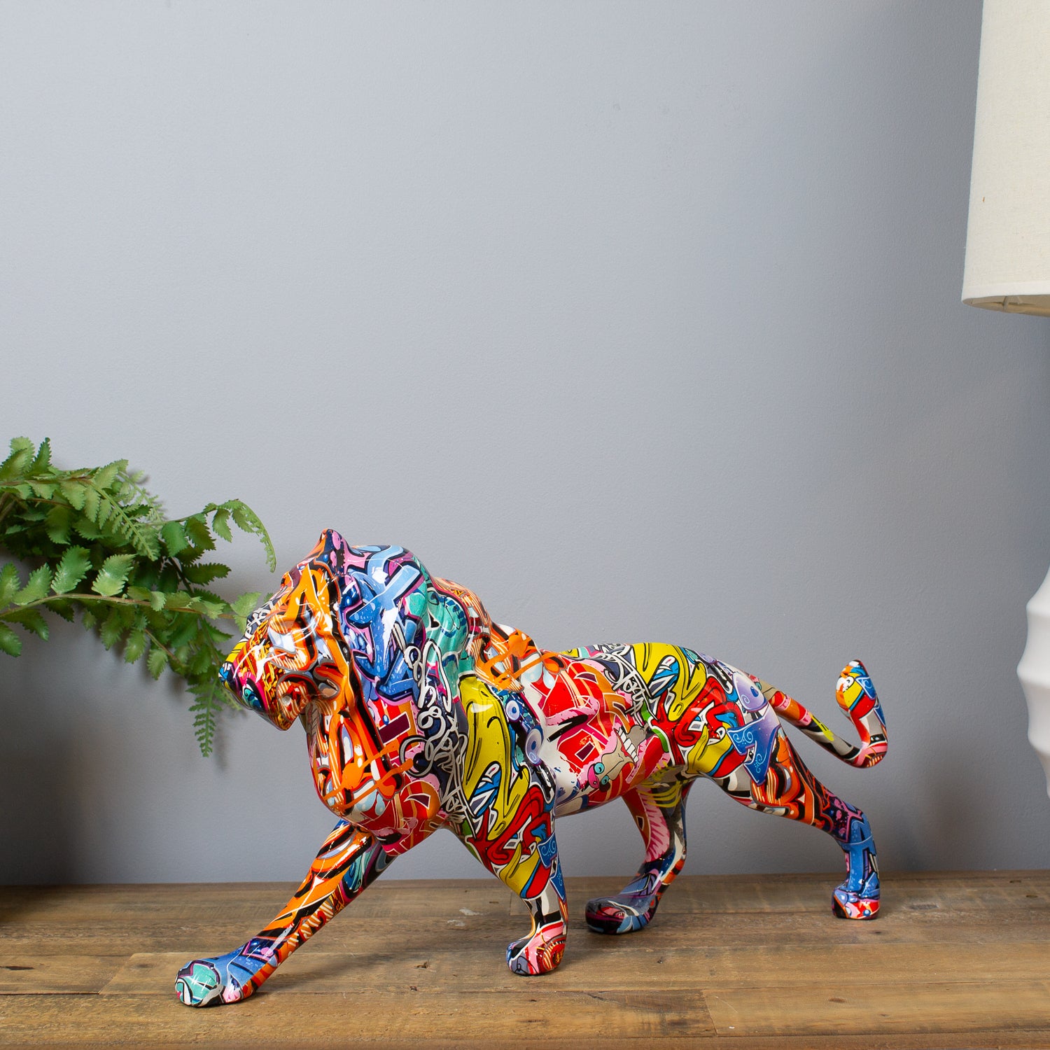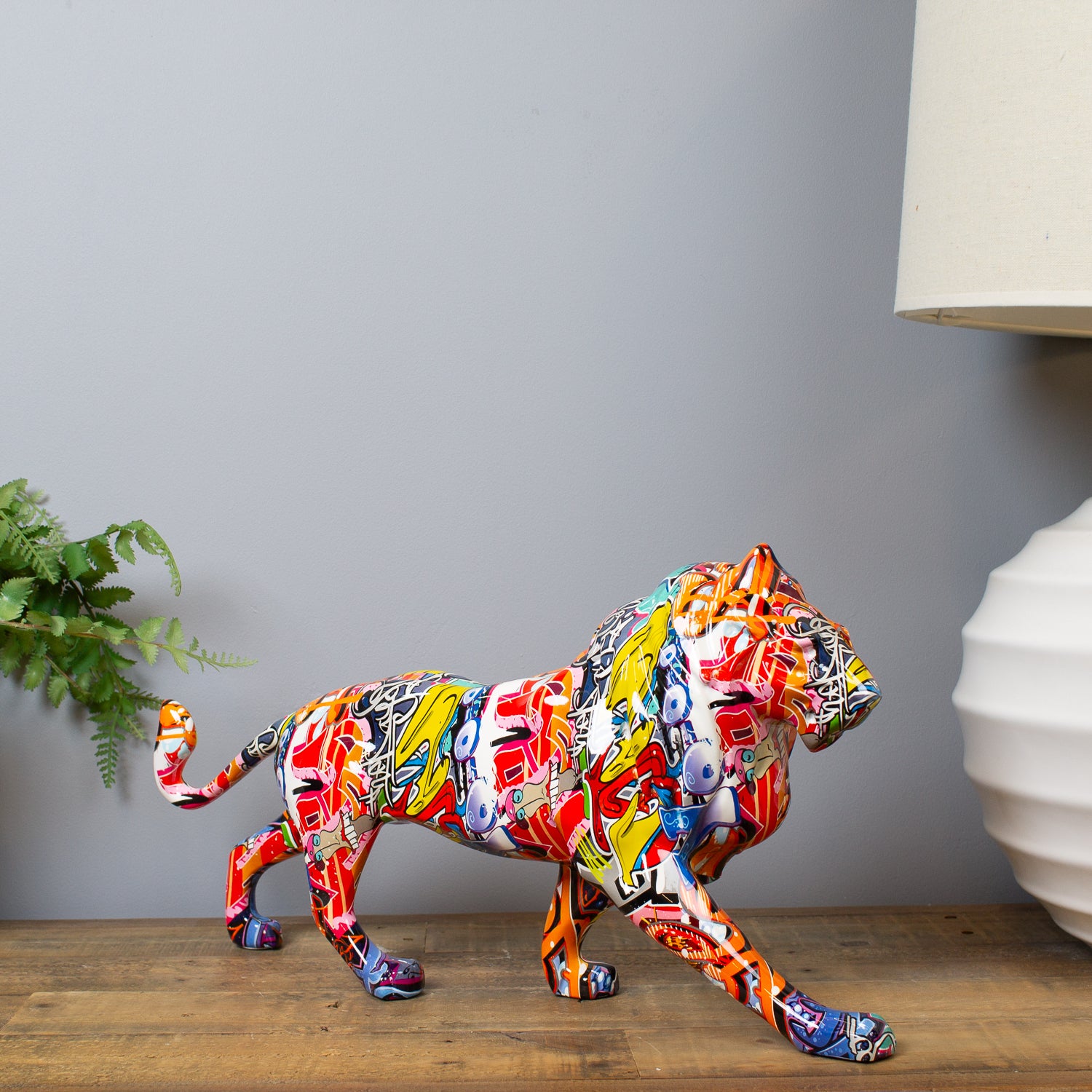 Command attention with our Graffiti Lion Ornament. A striding king of the urban jungle. Sculpted in mid-motion and cloaked in a riot of graffiti-style colour, this majestic piece blends wild energy with bold, contemporary art.