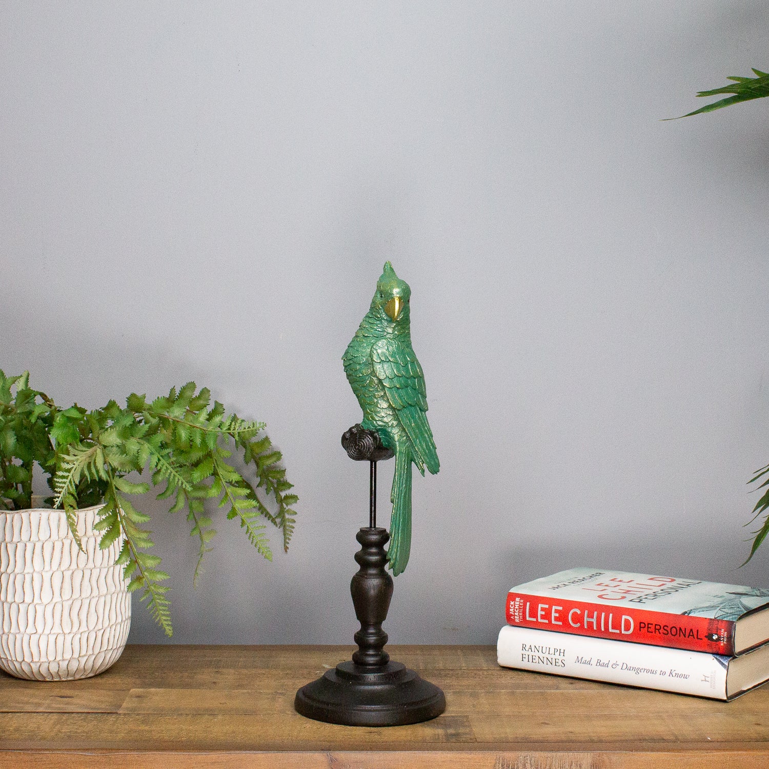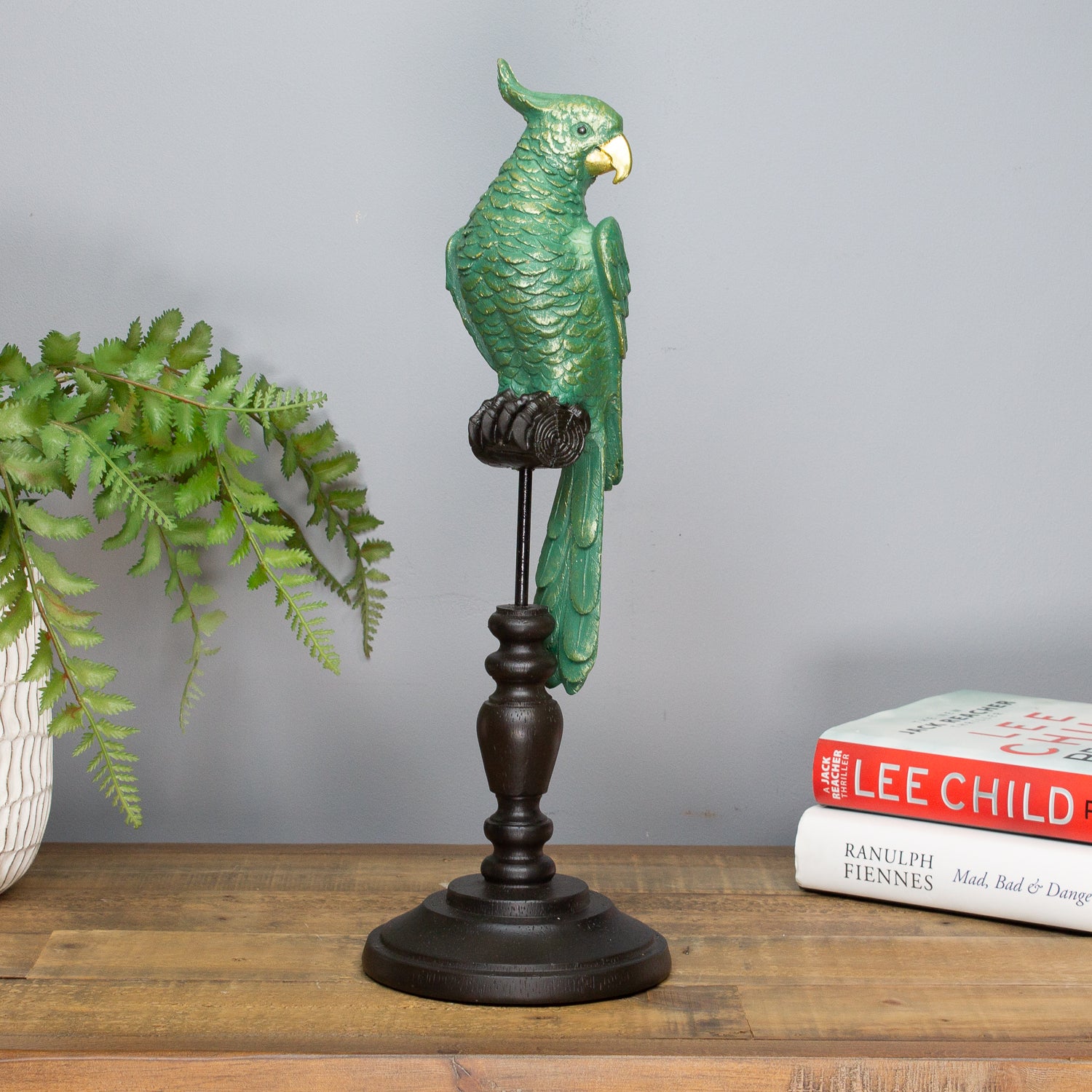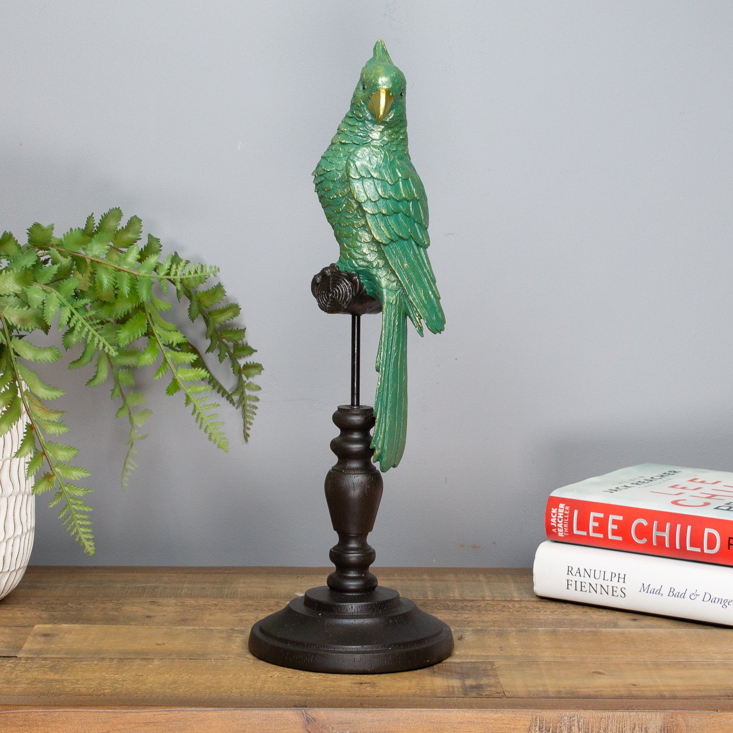 Add a splash of character and colour to your space with our Small Parrot on a Perch. Crafted from resin and finished in a stunning blue-green patina, this charming bird brings a laid-back, tropical vibe with just the right hint of vintage flair.