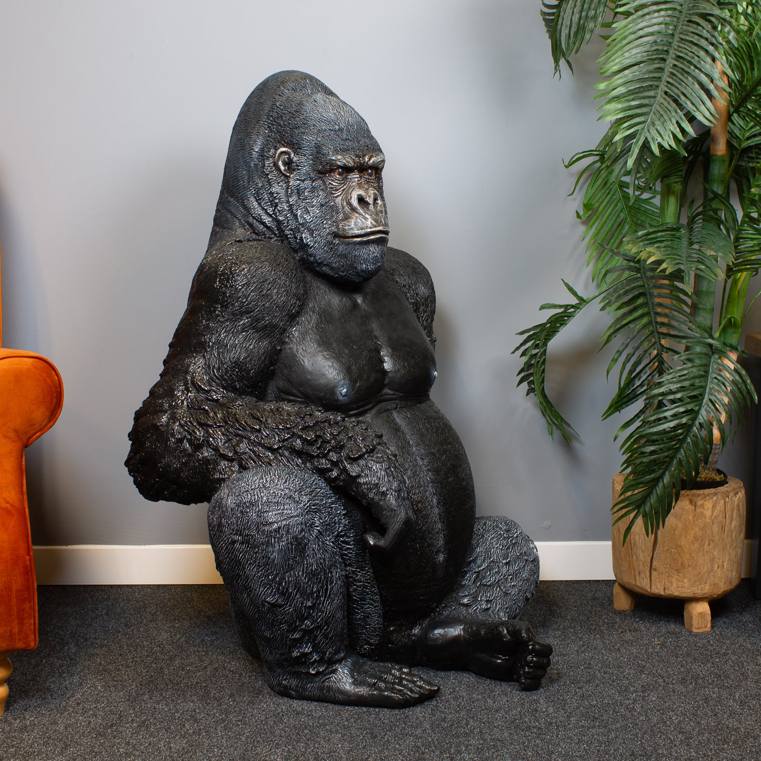 Bring the drama of the wild into your space with this breathtakingly lifelike Silverback Gorilla Ornament. Crafted from durable polyresin and standing at over a metre tall, this almost life-size sculpture commands attention with its powerful stance and incredibly detailed finish.