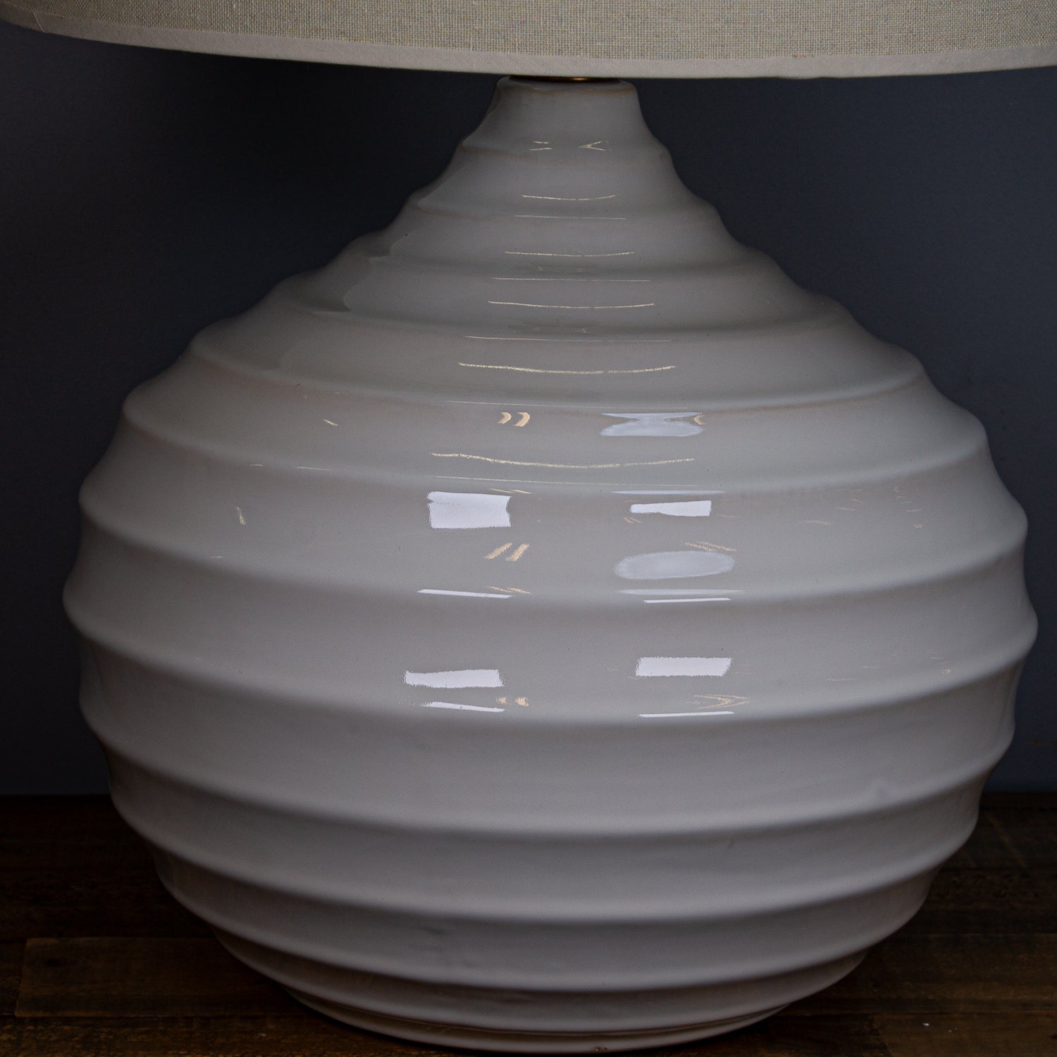 Our Nola Table Lamp is all about quiet elegance with a tactile twist. Crafted in porcelain and finished with a breaking glaze that thins over the edges, it beautifully accentuates the lamp’s gentle, wave-like ridges from top to bottom.