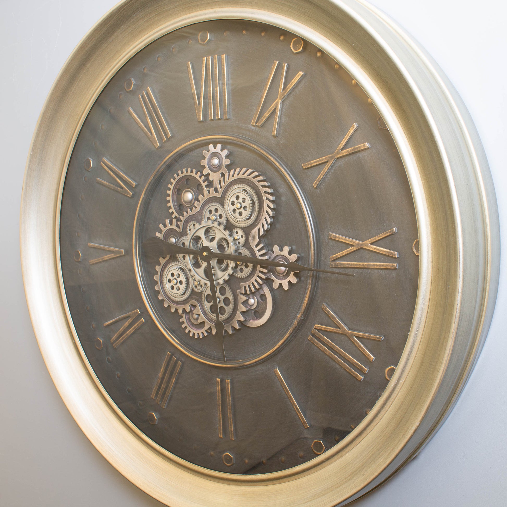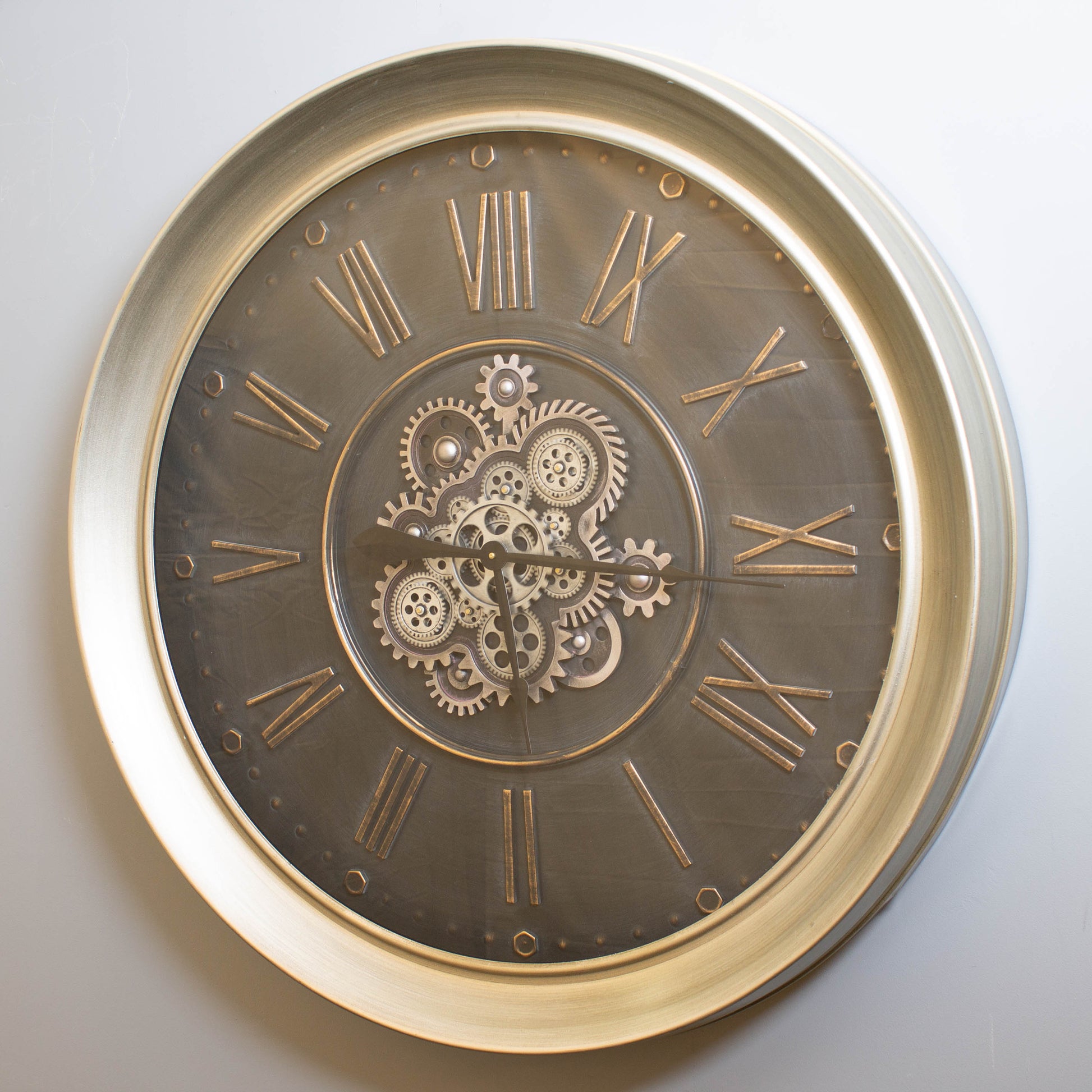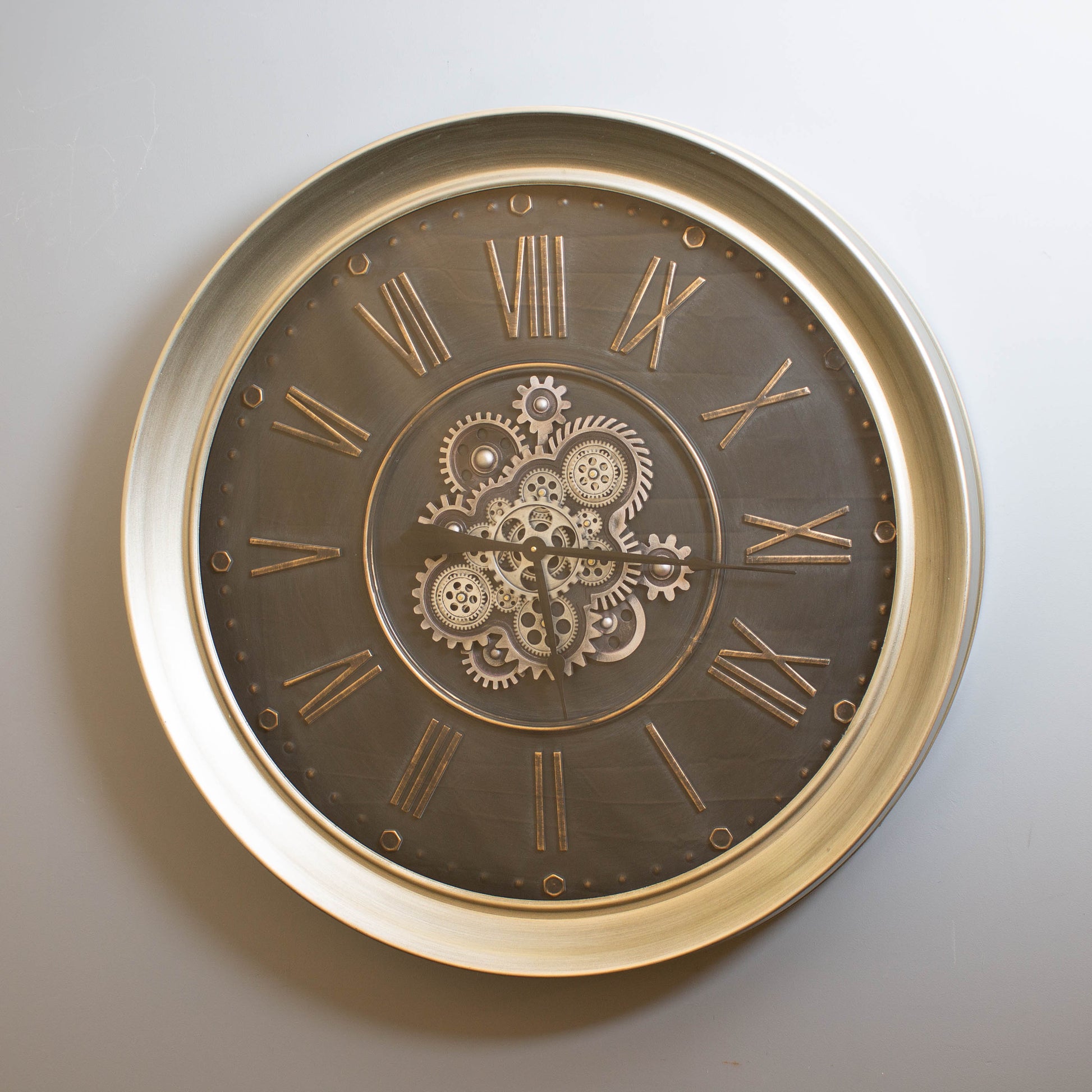 This oversized wall clock is added luxury to any home, and it is ideal for any type of room setting. This clock highlights a beautiful round shape with an elegant design and moving cogs in the centre and Roman numerals.