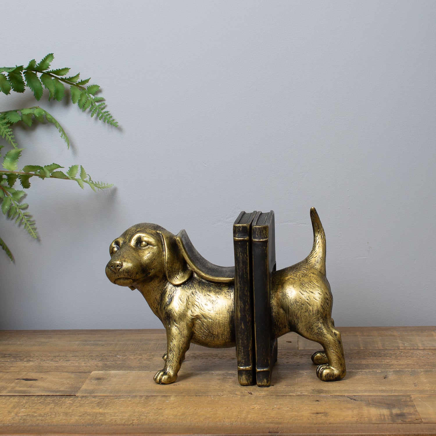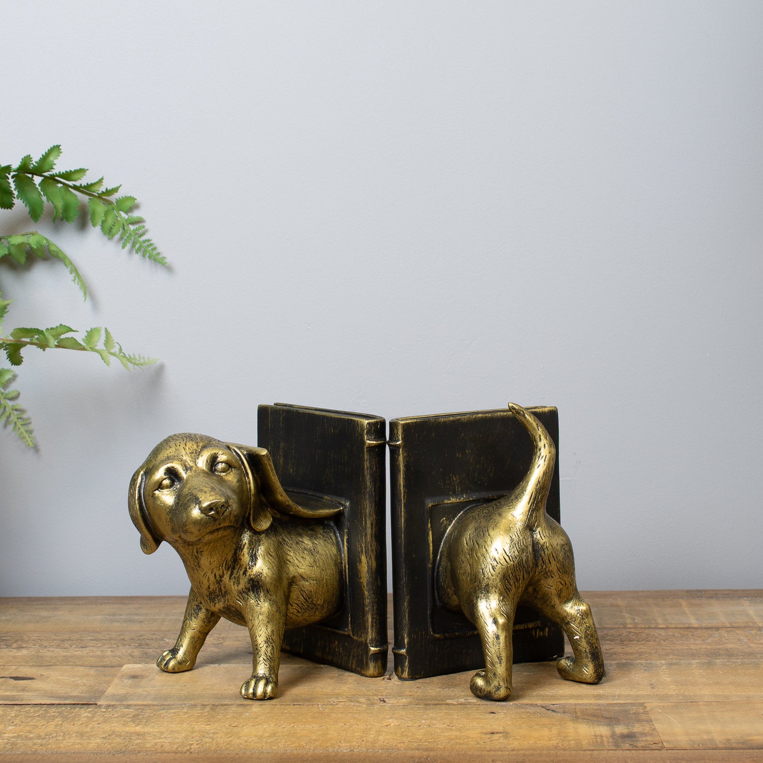 Pair with leather-bound books, vintage photo frames, or natural wood shelves to let the bronze finish shine. For a more playful touch, style alongside dog-themed artwork or accessories.