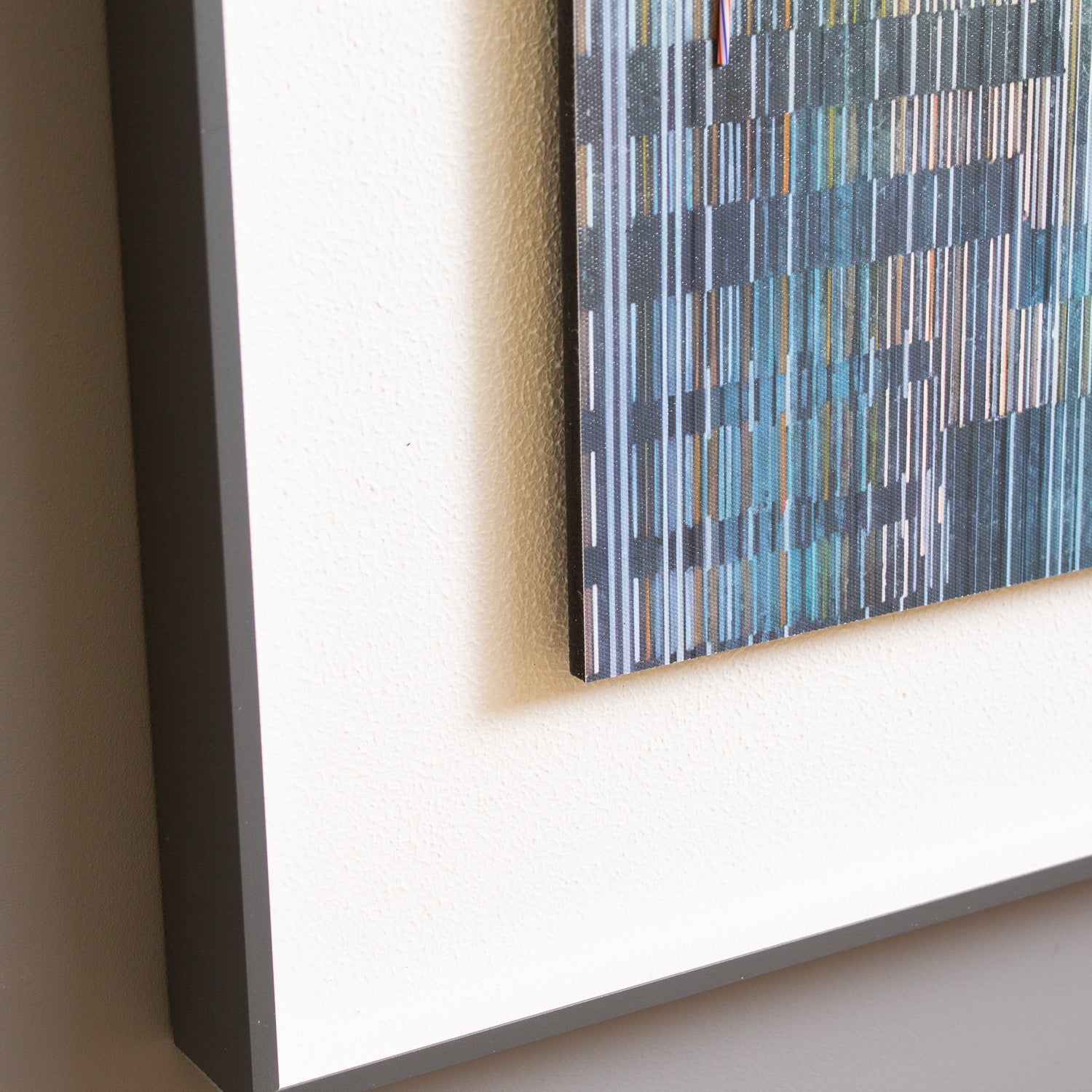 The raised mounting creates a stunning floating effect, giving the artwork a luxurious, gallery-style presence. Display it alone as a refined statement piece, or pair it with the complementary Reading Between the Lines No. 2 Art Print for a strikingly cohesive look.