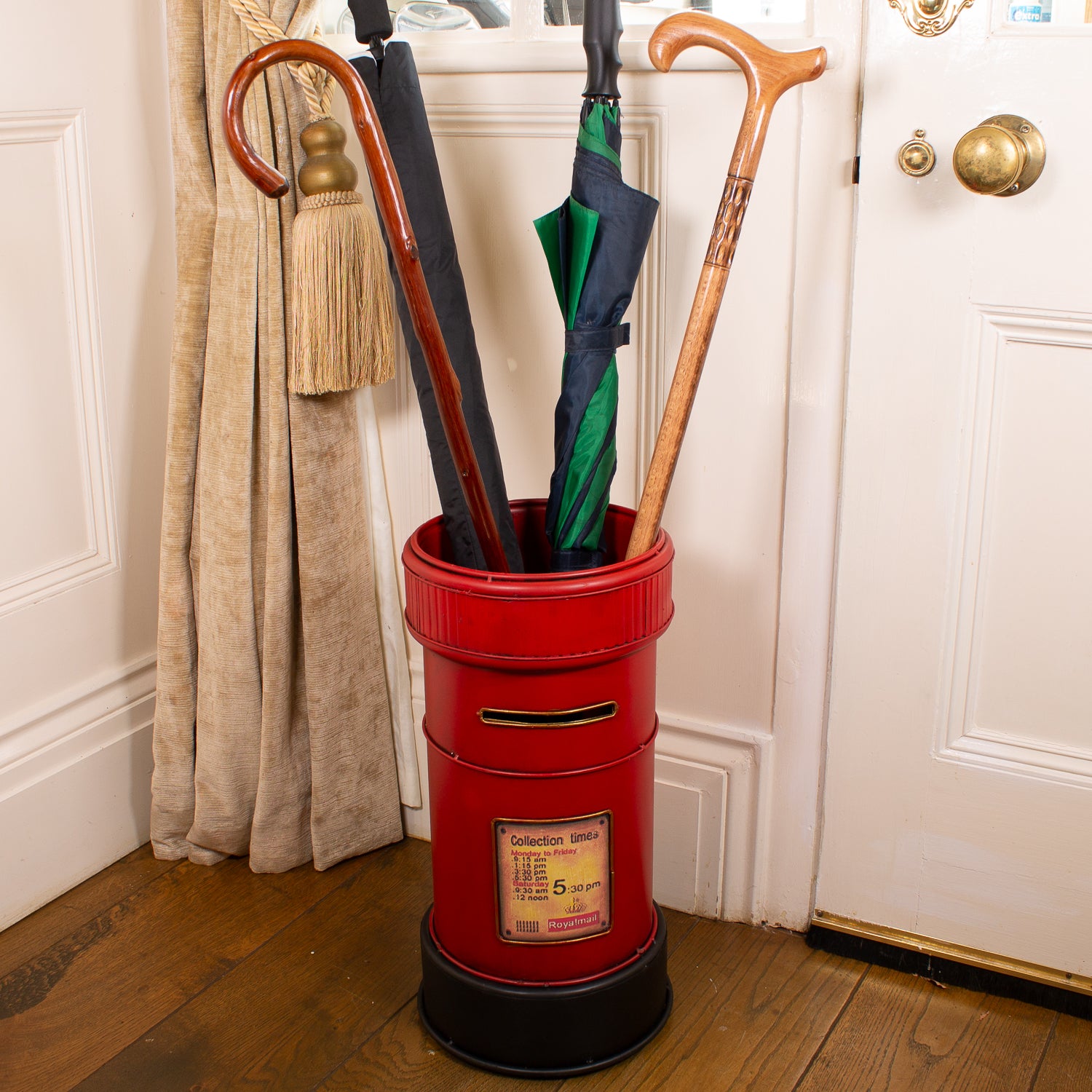 Deliver a little personality to your entryway with this fabulous Red Post Box Umbrella Stand. Inspired by the iconic British pillar box, itโs both functional and full of nostalgic charm โ perfect for stashing umbrellas, walking sticks, or even rolls of wrapping paper with a bit of flair.