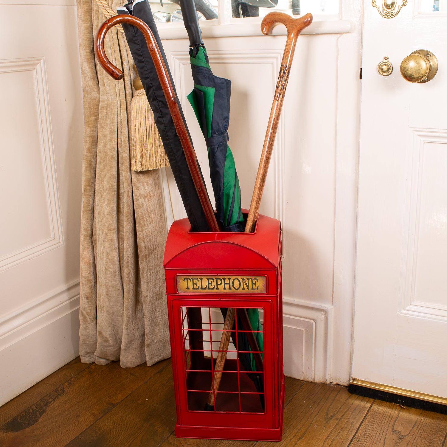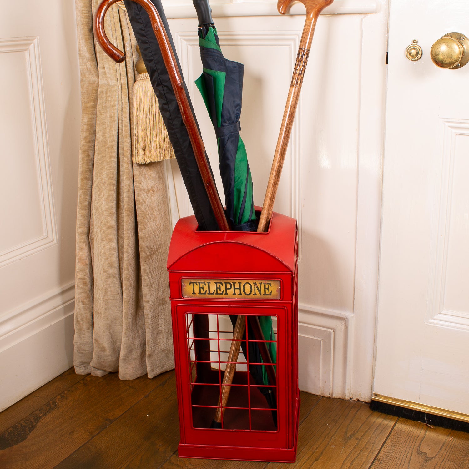 Bring a dash of nostalgia to your hallway with this eye-catching umbrella stand, styled as a traditional red British telephone box. Standing at 48 cm high, itβs the perfect place to pop your brollies, walking sticks, or canes after a blustery day.