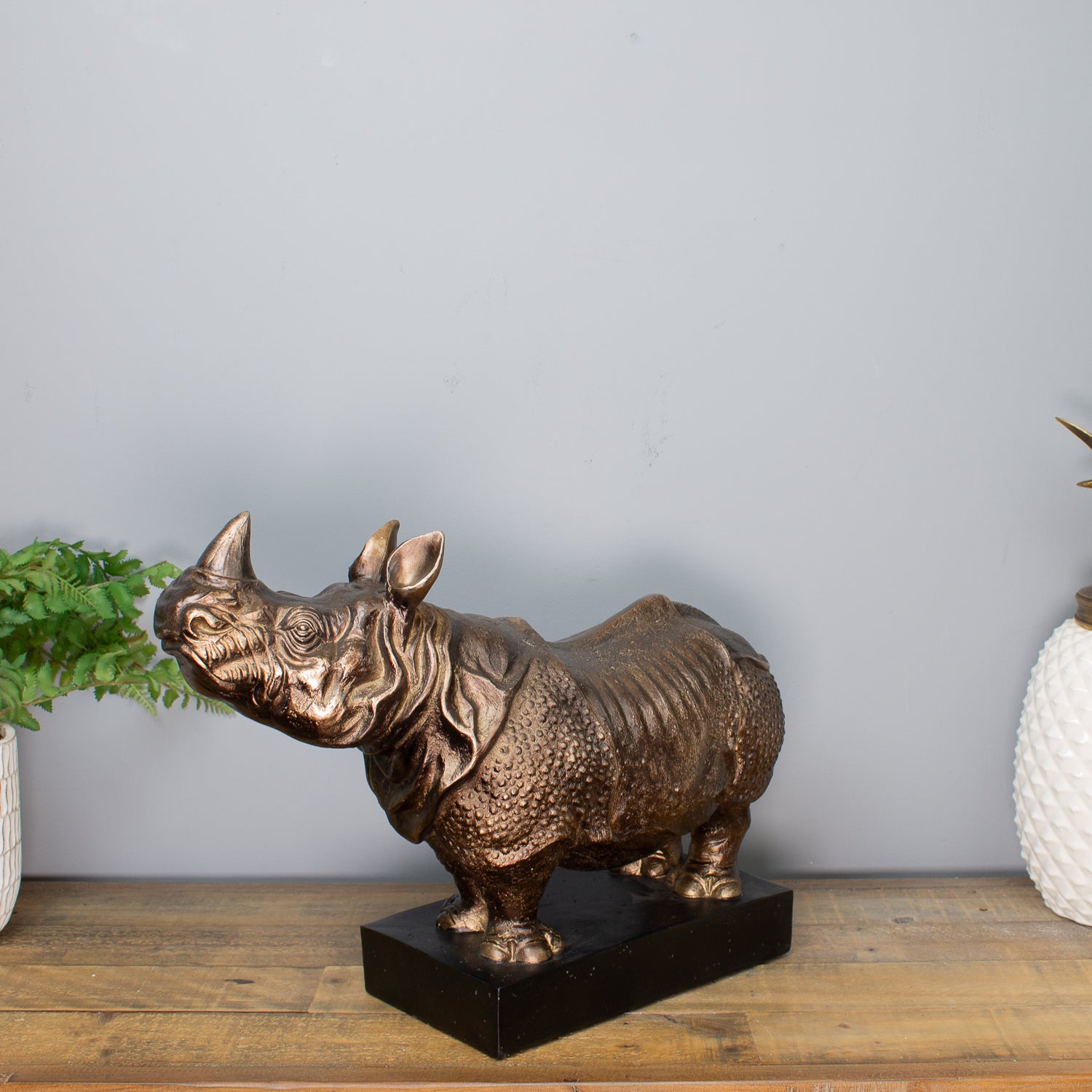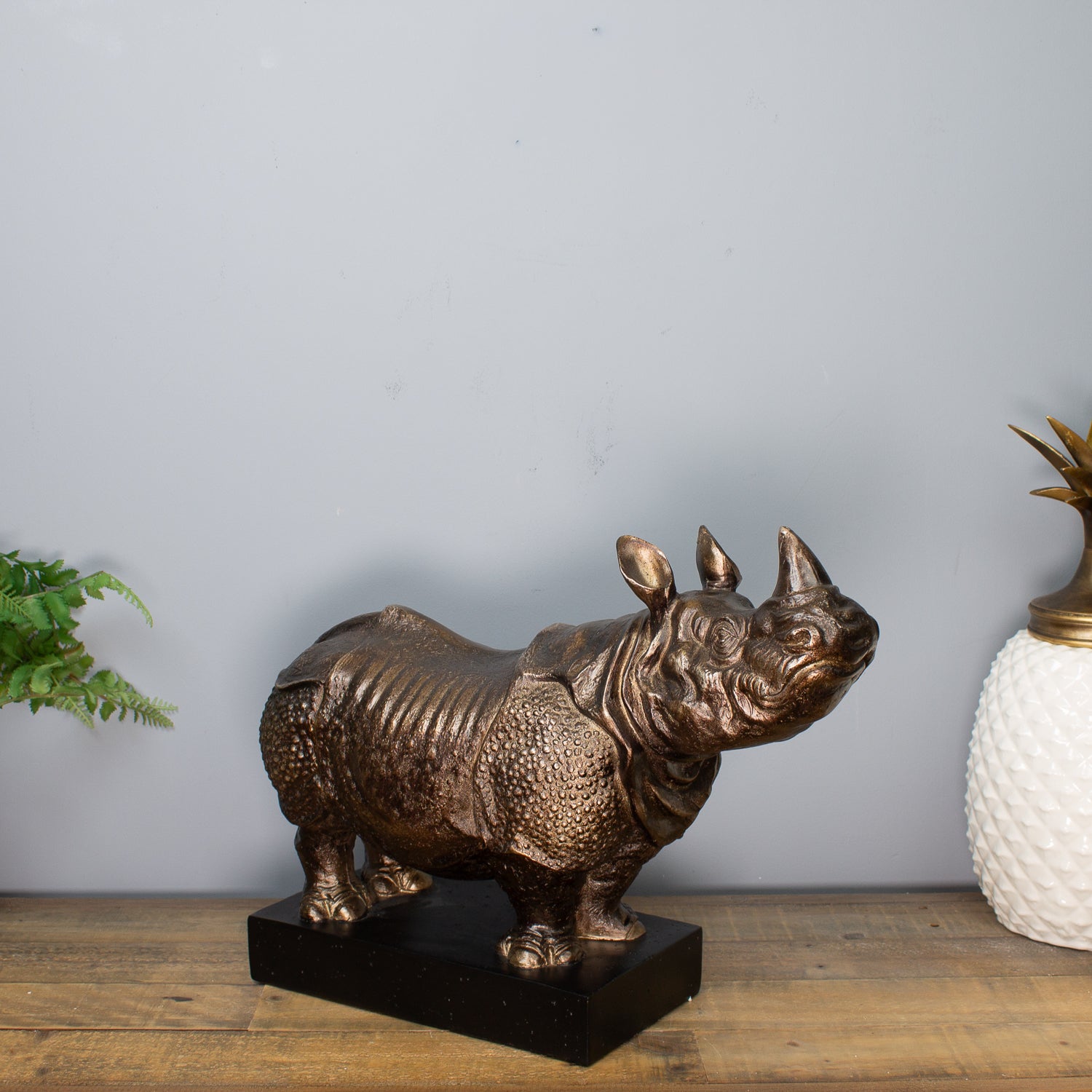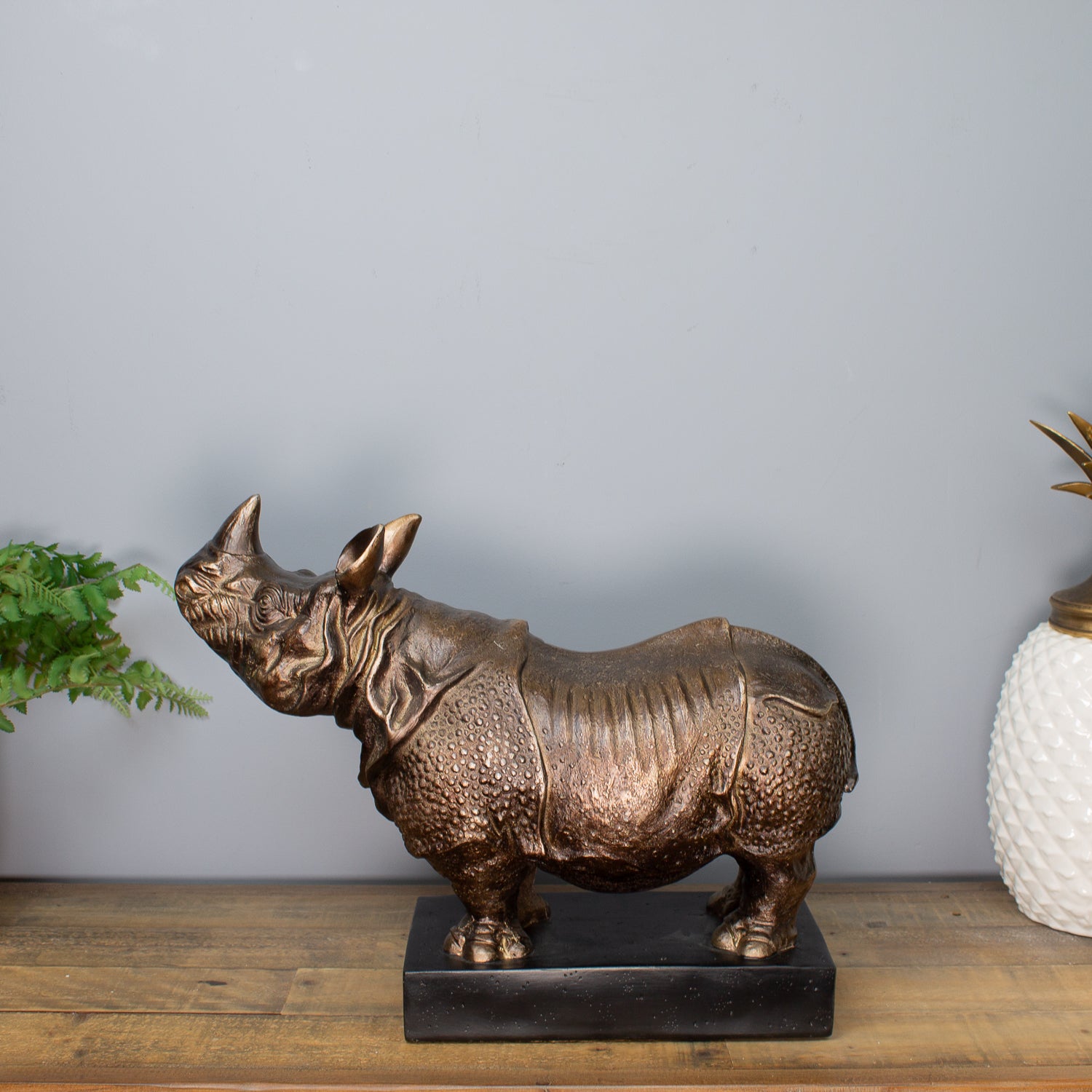 Make a bold statement with this Resin Rhino Statue, a striking piece that embodies strength, resilience, and quiet majesty. With its head held high and confident stance, the rhino is sculpted in fine detail and finished in a rich dark antiqued bronze colour, giving it a sense of aged elegance and enduring power.