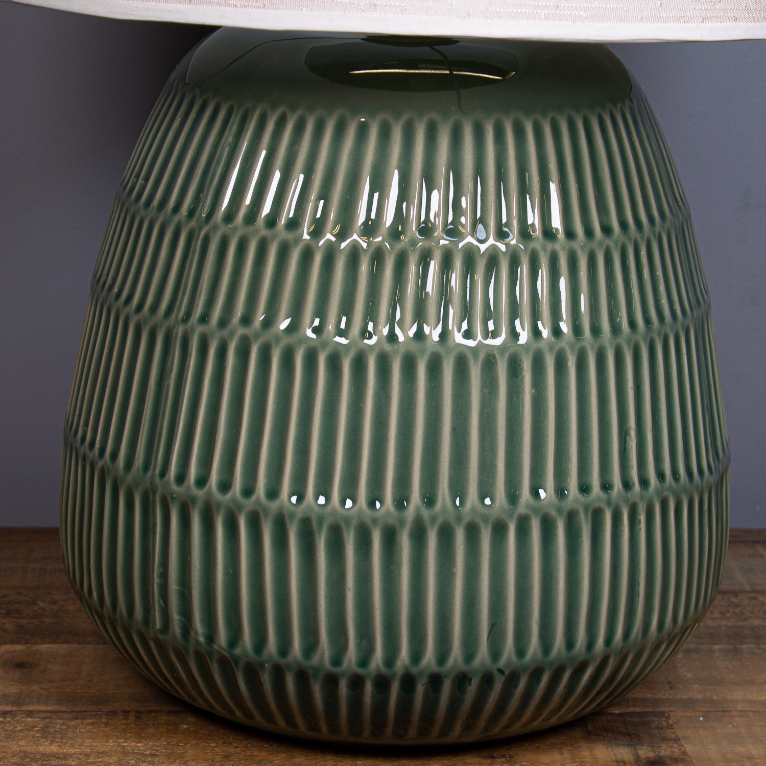 The lamp base features a refined, tactile design that strikes a perfect balance between simplicity and sophistication. Its surface is adorned with evenly spaced vertical ridges, tapering gracefully toward the neck—creating a pleated, almost basket-like texture that adds both depth and artisanal charm.