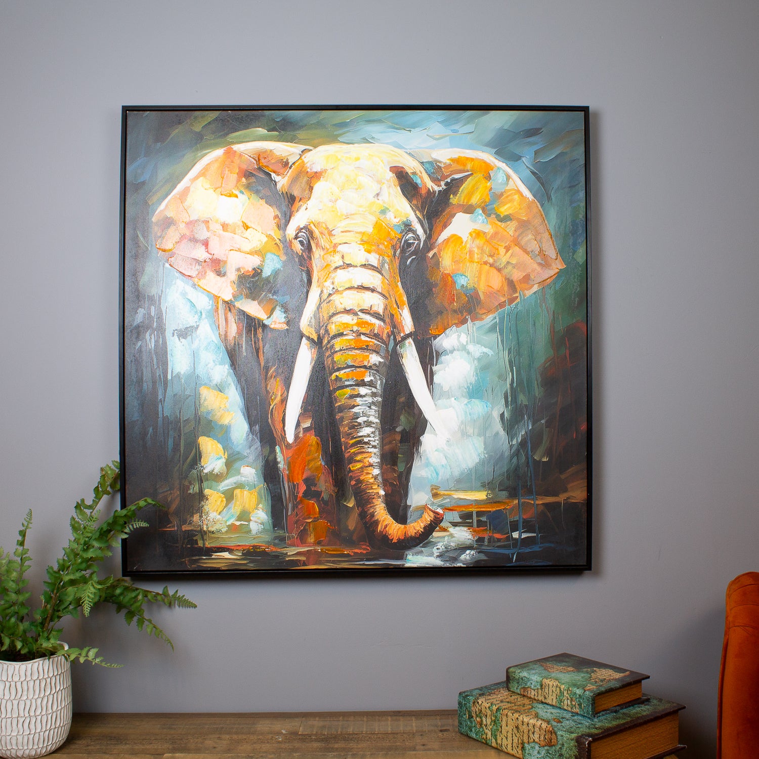 Expertly hand-finished, this artwork brings depth and texture to every detail, while the moody hues add an air of mystery and drama, enhancing the elephantβs commanding presence. Framed in a sleek black frame, this piece exudes sophistication and timeless elegance, making it the perfect centrepiece for any space.