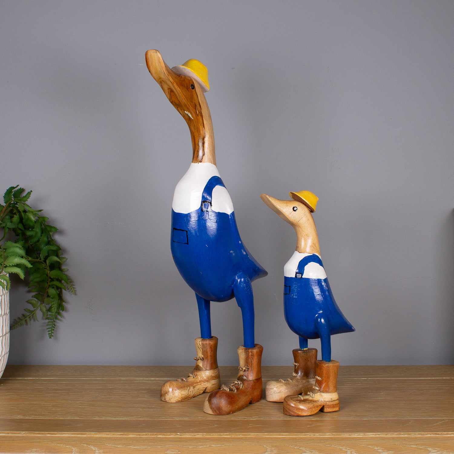 Our Builder Duck is hand-carved from sustainable bamboo and styled to get the job done—with a bright yellow hard hat, painted blue overalls, and bags of can-do character.