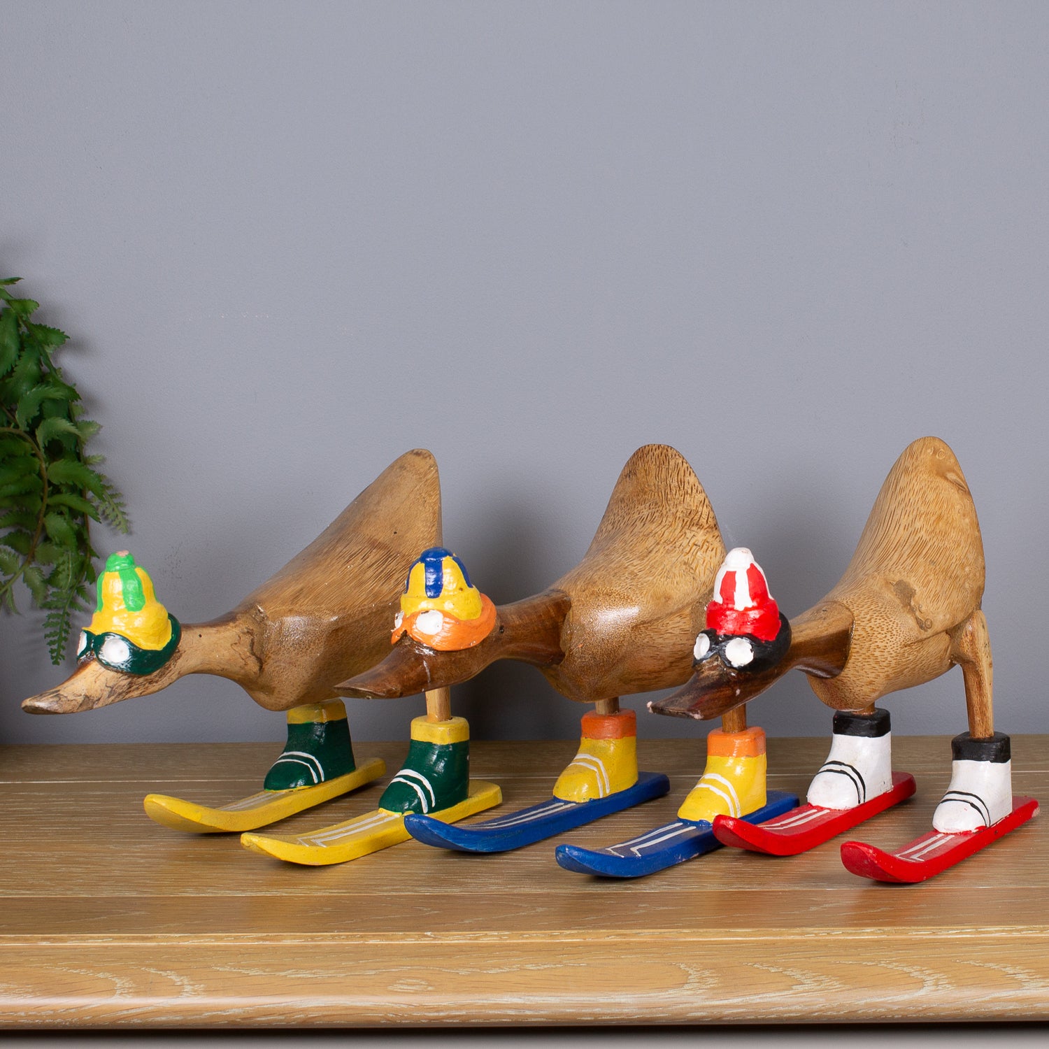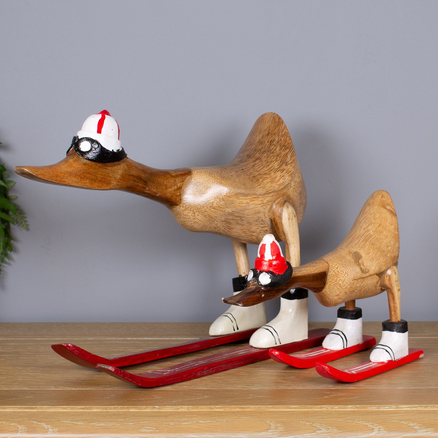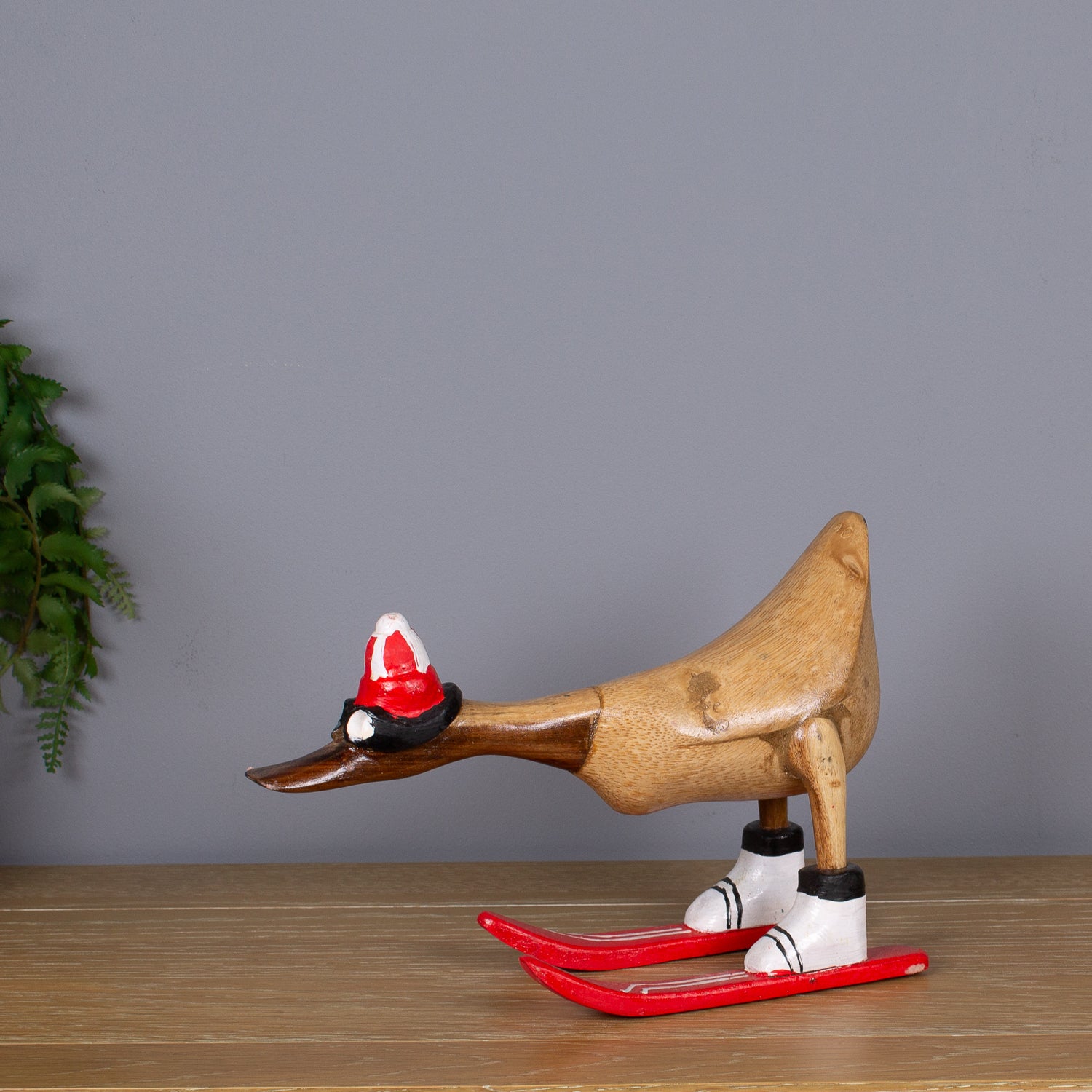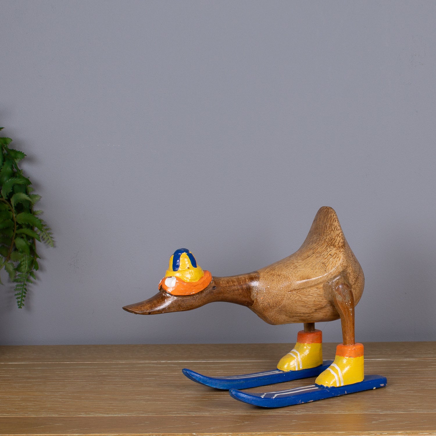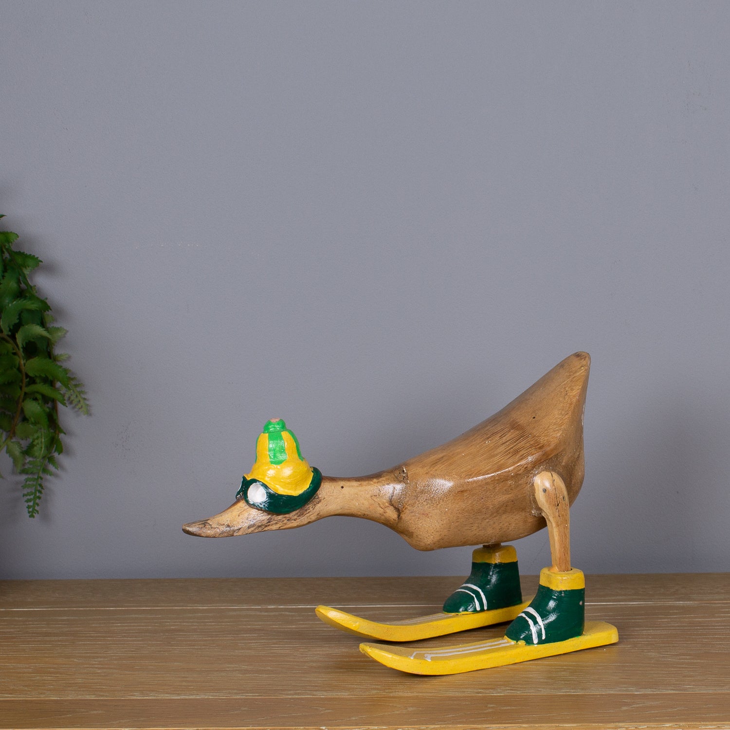 This duck has zero fear of black runs—and even less fear of being fabulous. Meet our Skiing Duck, hand-carved from sustainable bamboo and geared up for the piste in a full skiing outfit, complete with helmet, goggles, ski boots and carved wooden skis.