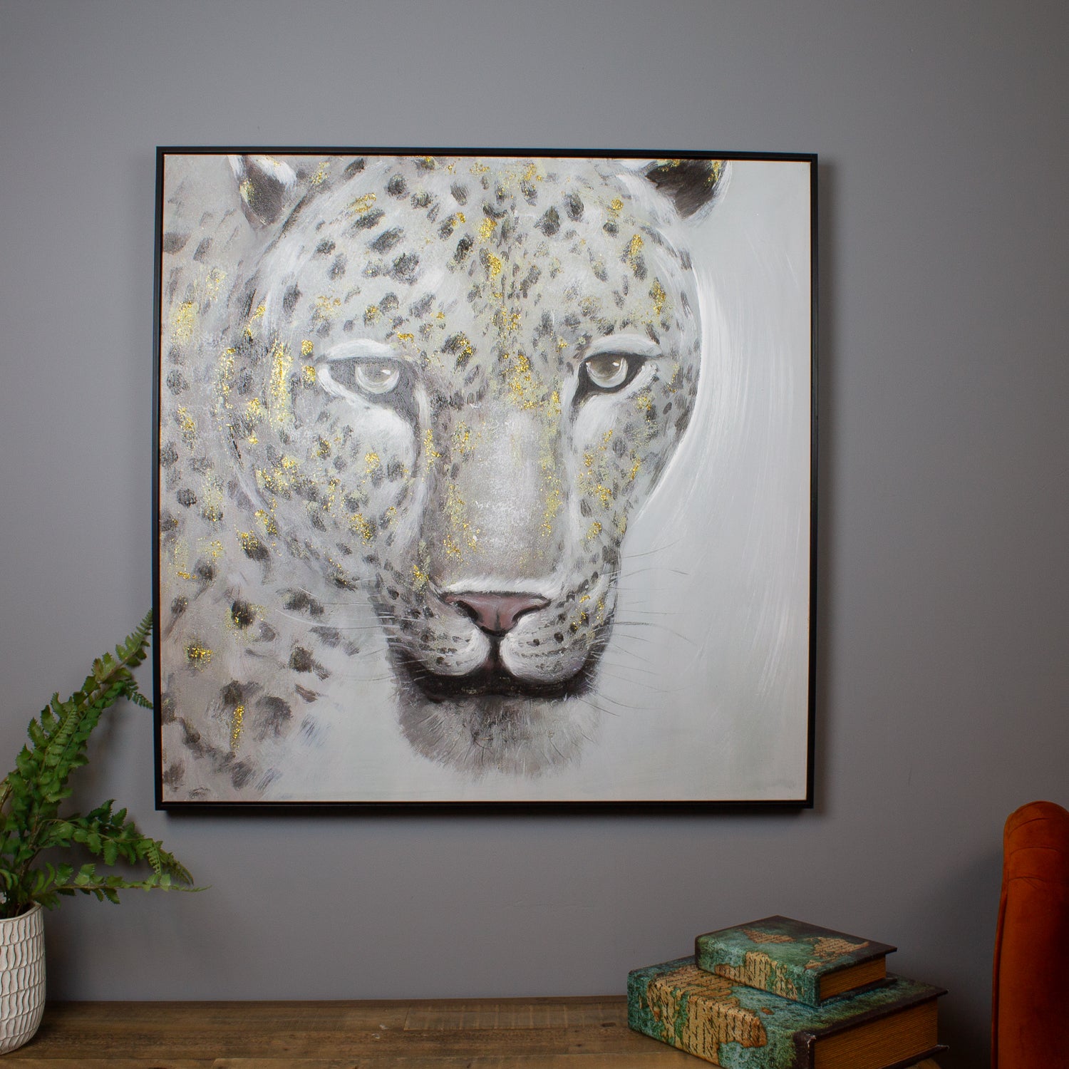 Capture the majestic beauty of one of nature’s most elusive predators with the Snow Leopard Hand-Finished Oil Canvas. Measuring 82 cm x 82 cm, this stunning artwork showcases the grace and intensity of the snow leopard, bringing a sense of mystique and refinement to your space.