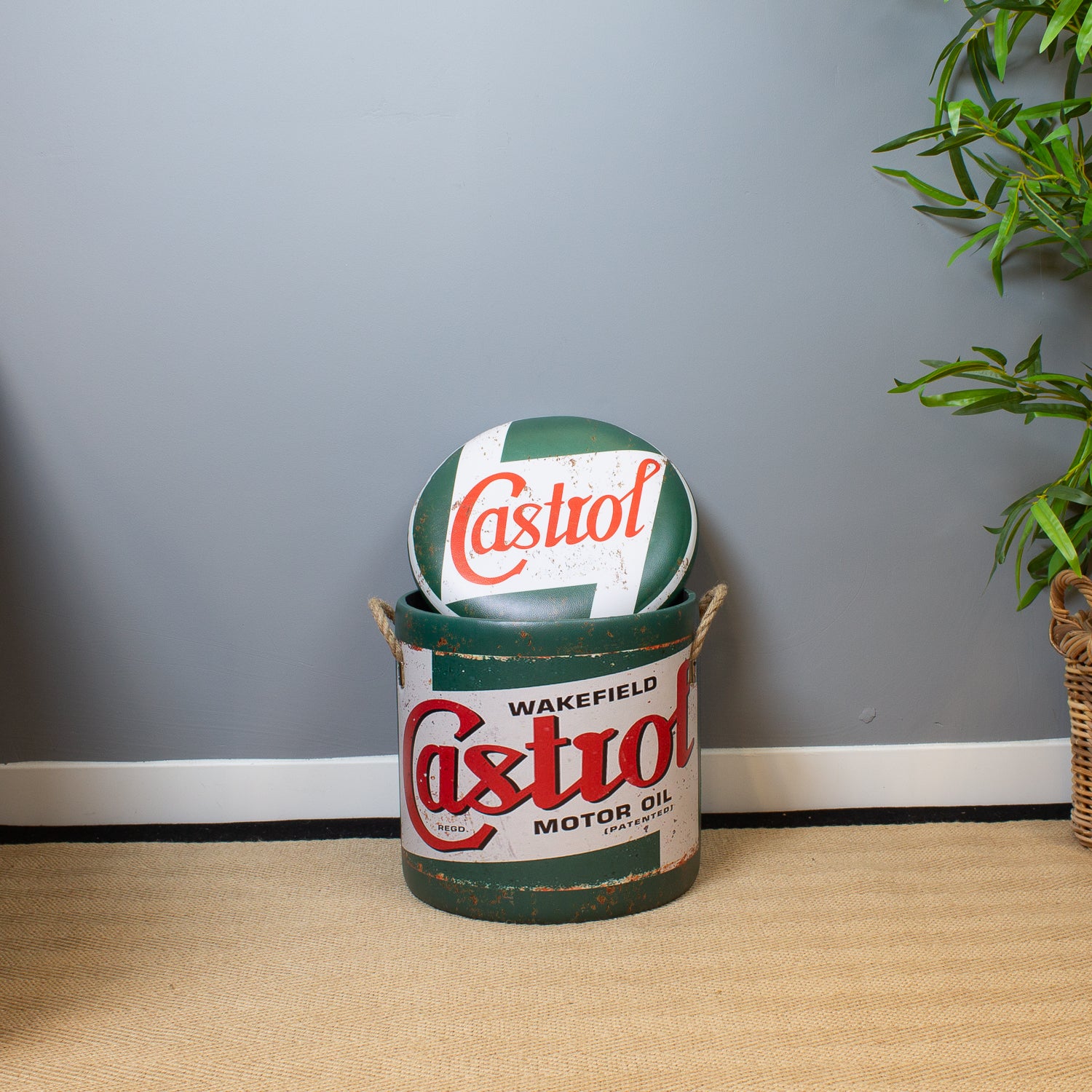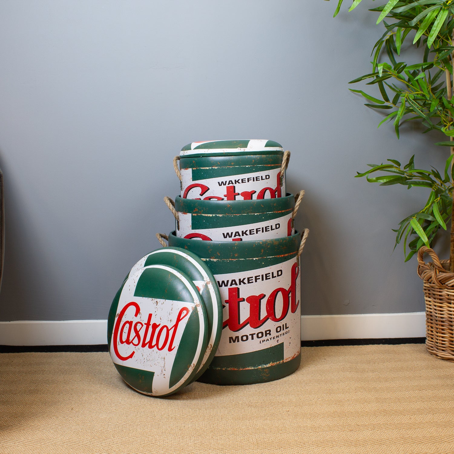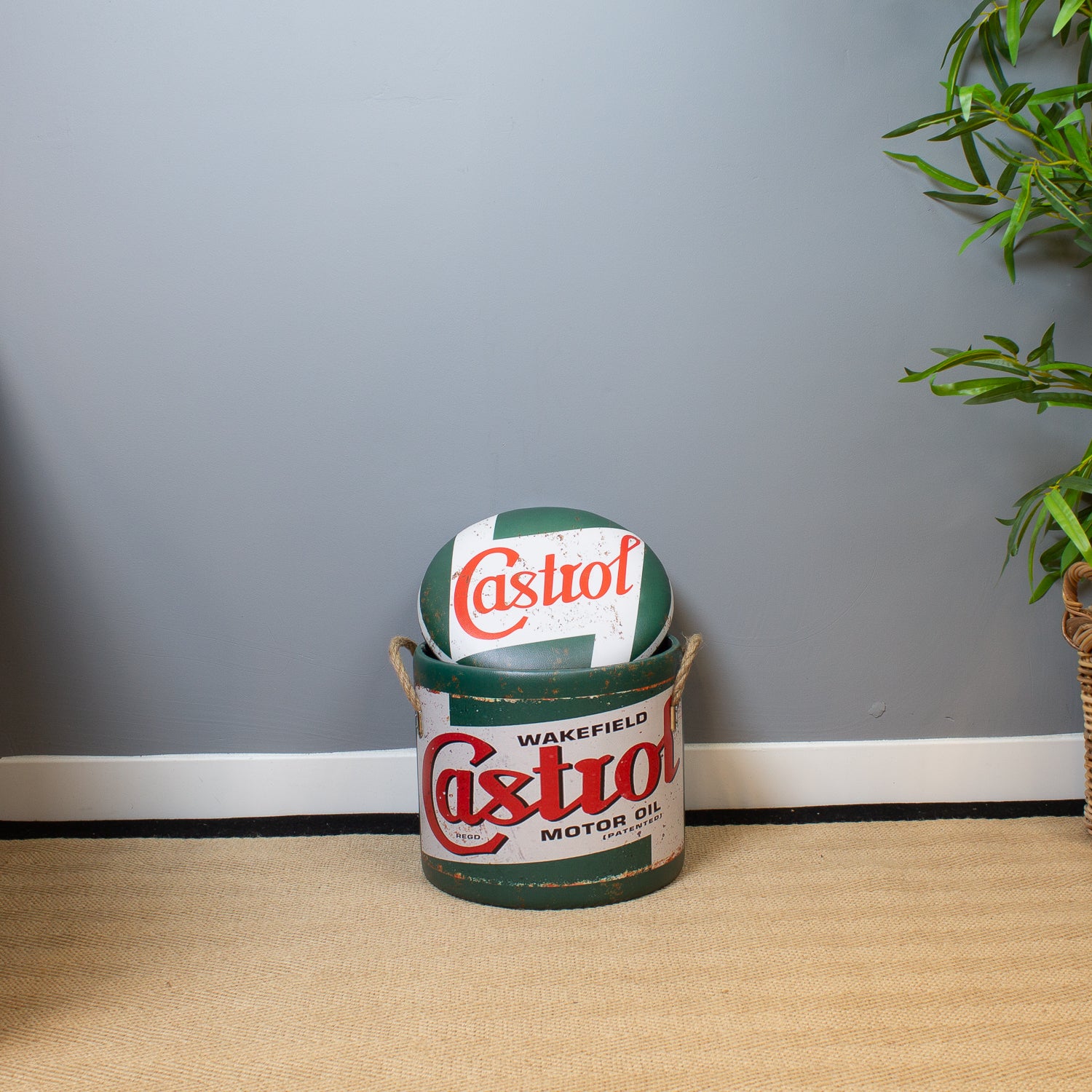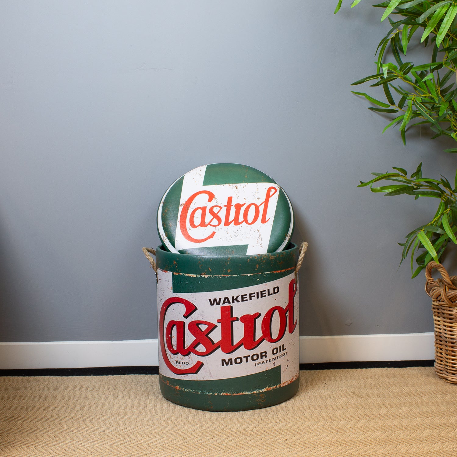 Channel classic motoring heritage with our Vintage Motor Oil Storage Stools. Featuring red, green, and white livery of a legendary British oil brand, these stools are a nostalgic nod to the golden age of garages, workshops, and racing pits.