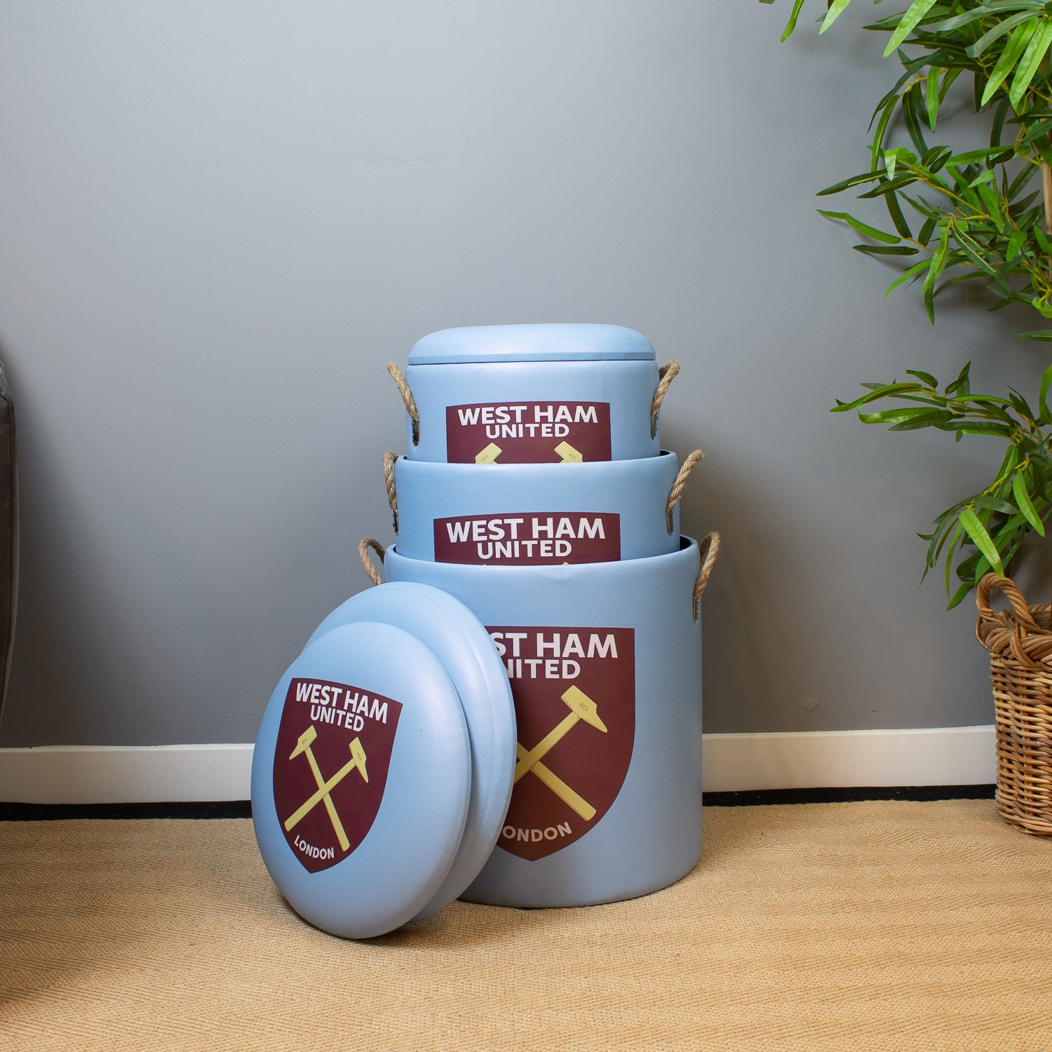 Show your colours and keep your space tidy with our West Ham Storage Stools – the perfect blend of practicality and team pride. A must-have for any die-hard fan’s bedroom, game room or man cave.