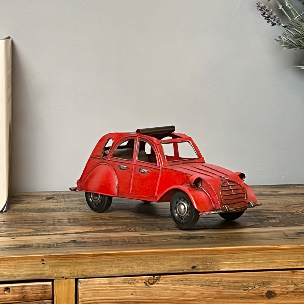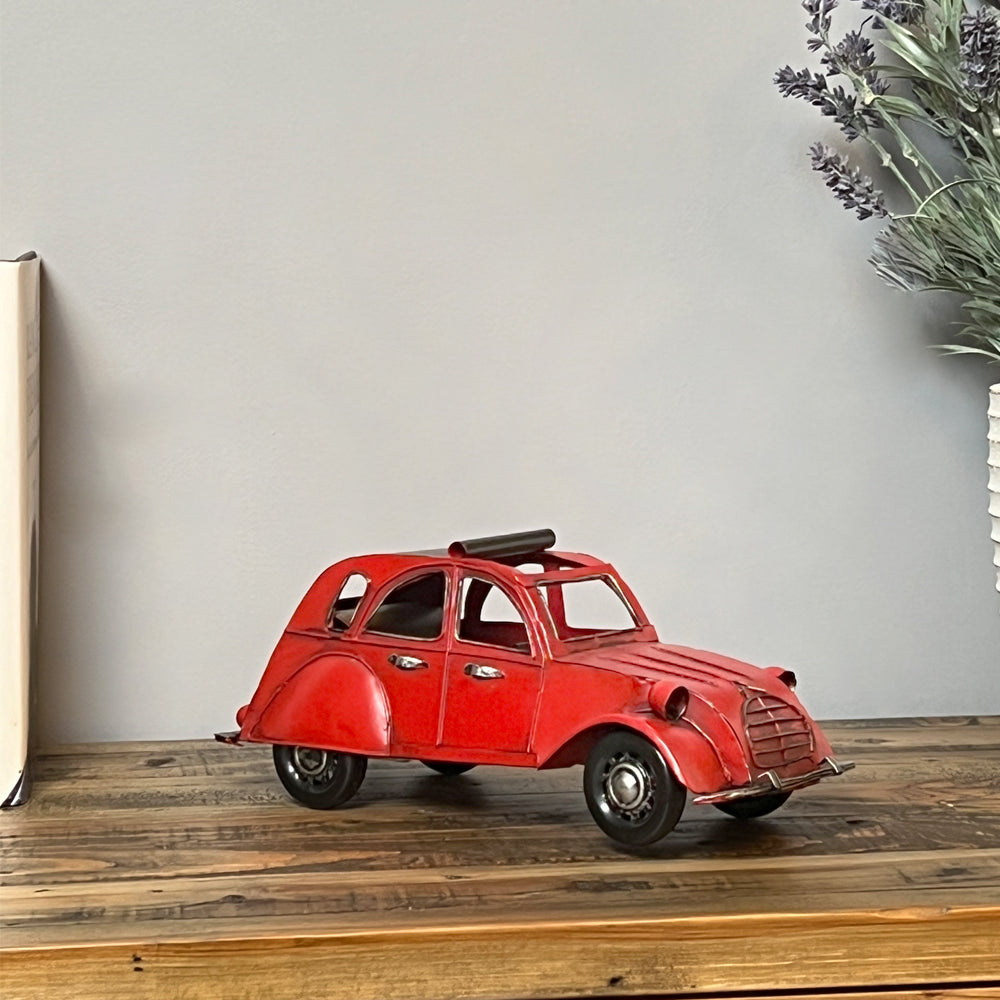 This Vintage Citroen 2CV model exudes timeless charm. From carefully crafted metal, this stunning replica captures the essence of the iconic car.