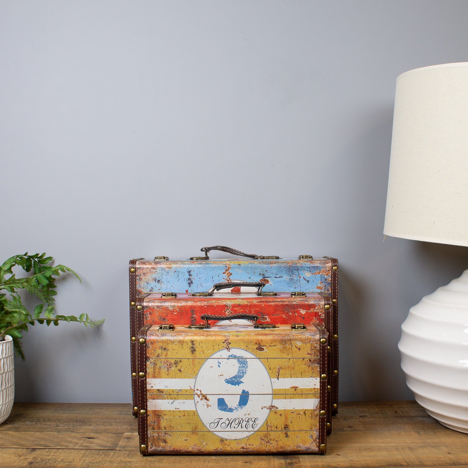 Crafted with faux leather corner straps and vintage-style metal clasps, they’re as practical as they are decorative—ideal for tidying away toys, crafts, books or keepsakes, all while helping little ones learn their numbers in style.