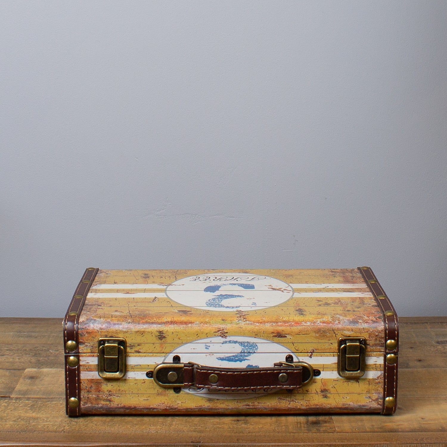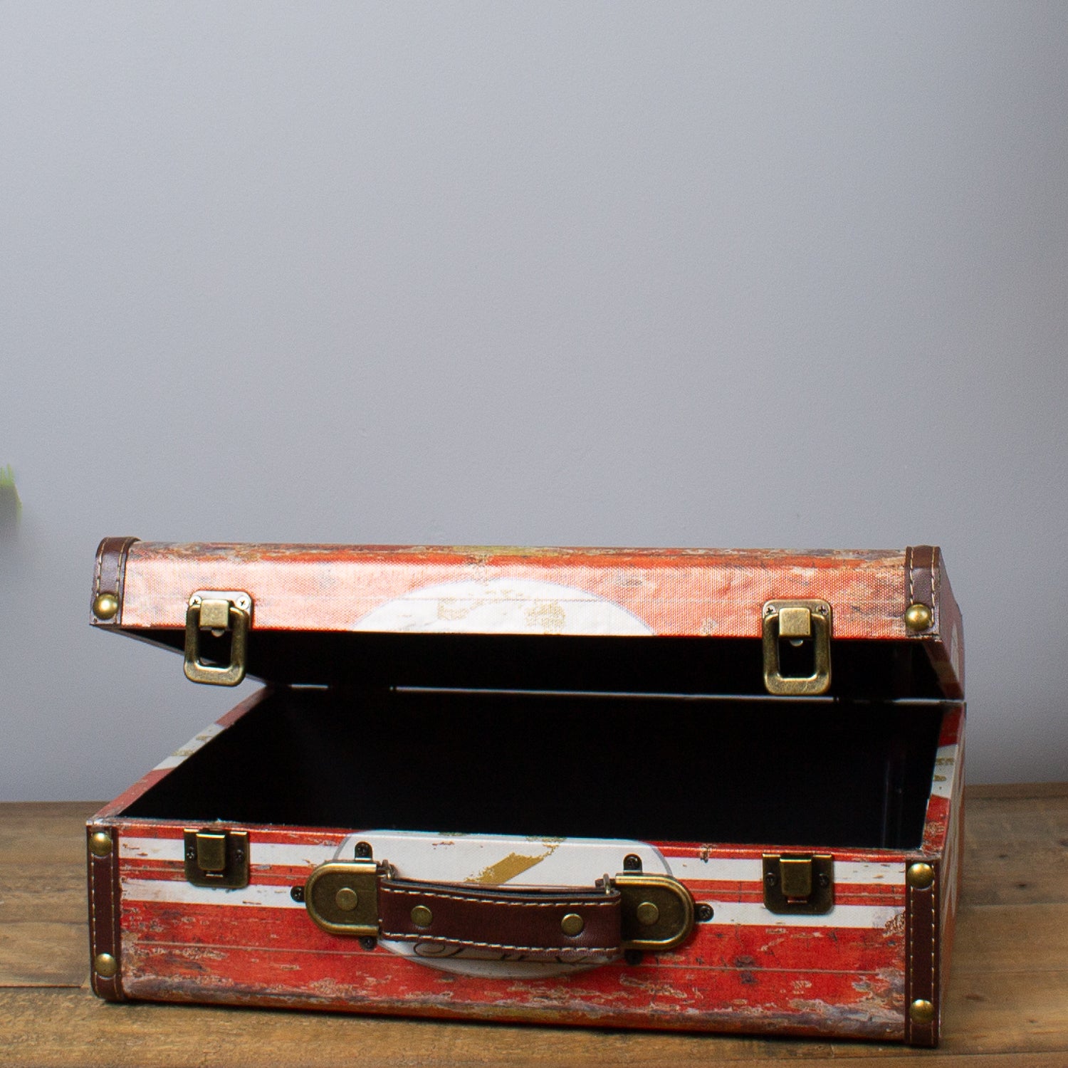 | Material | Sturdy board with faux leather accents and metal fittings |