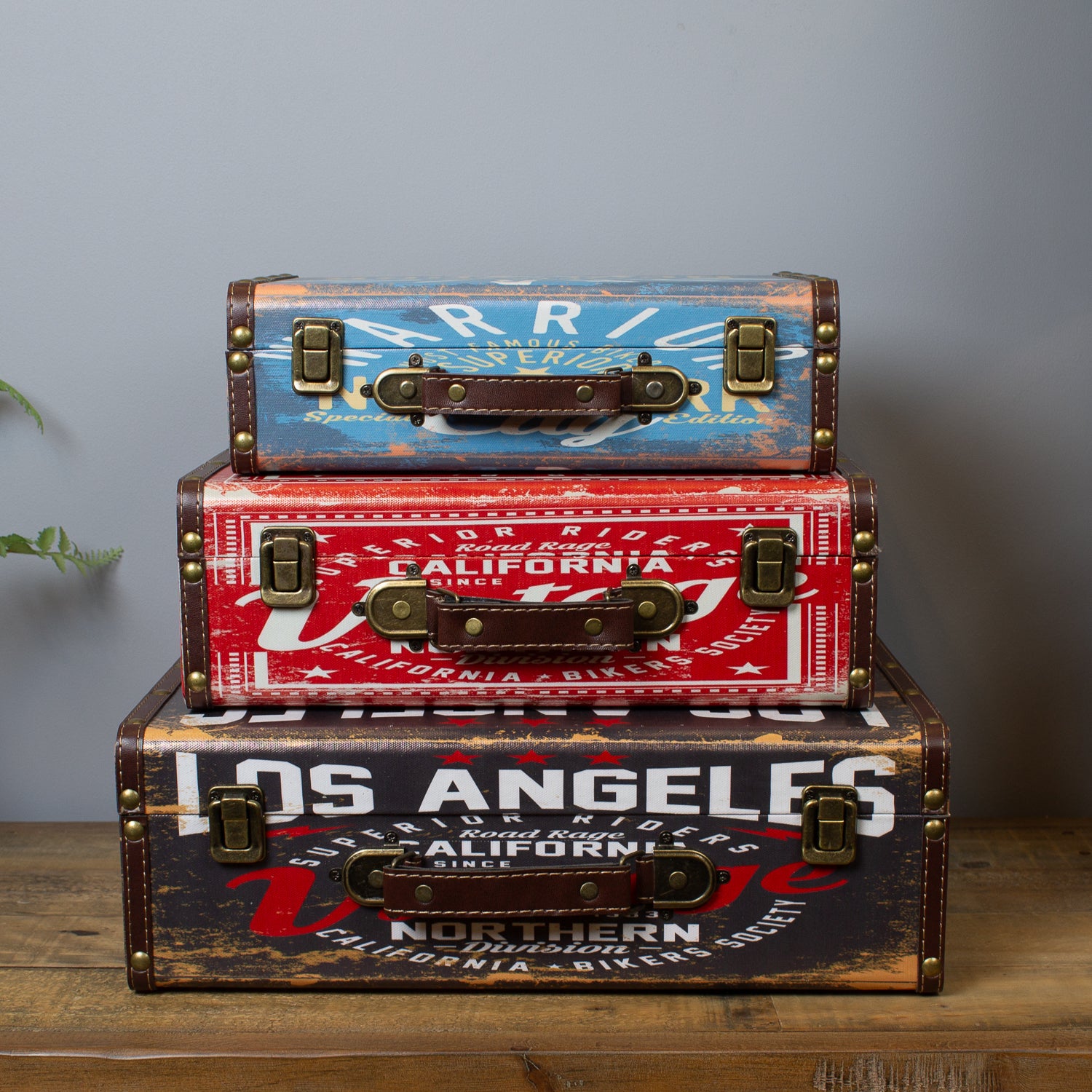 Finished with faux leather corner straps, stitching details, and antique-style metal clasps, these trunks strike the perfect balance between practical storage and statement décor. Whether used as keepsake boxes, under-bed storage, or stylish shelf accents, they deliver personality in spades.
