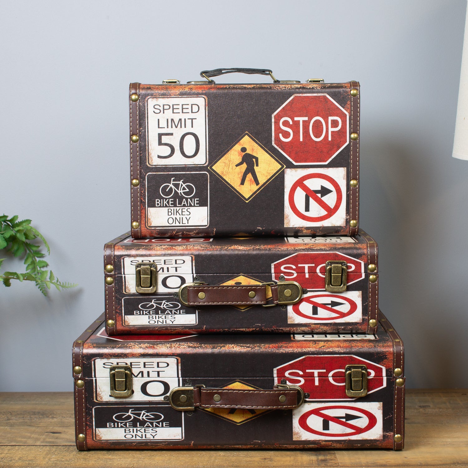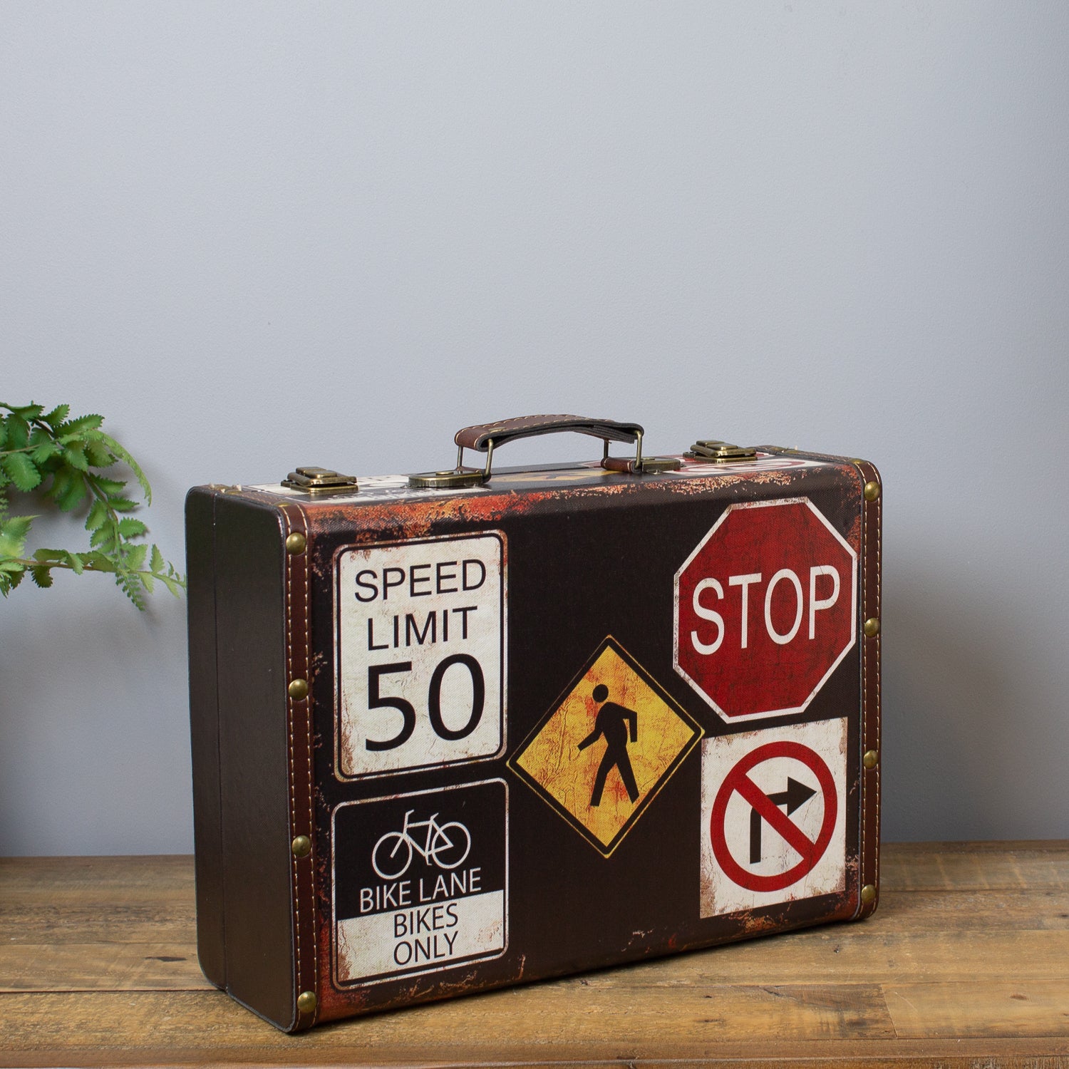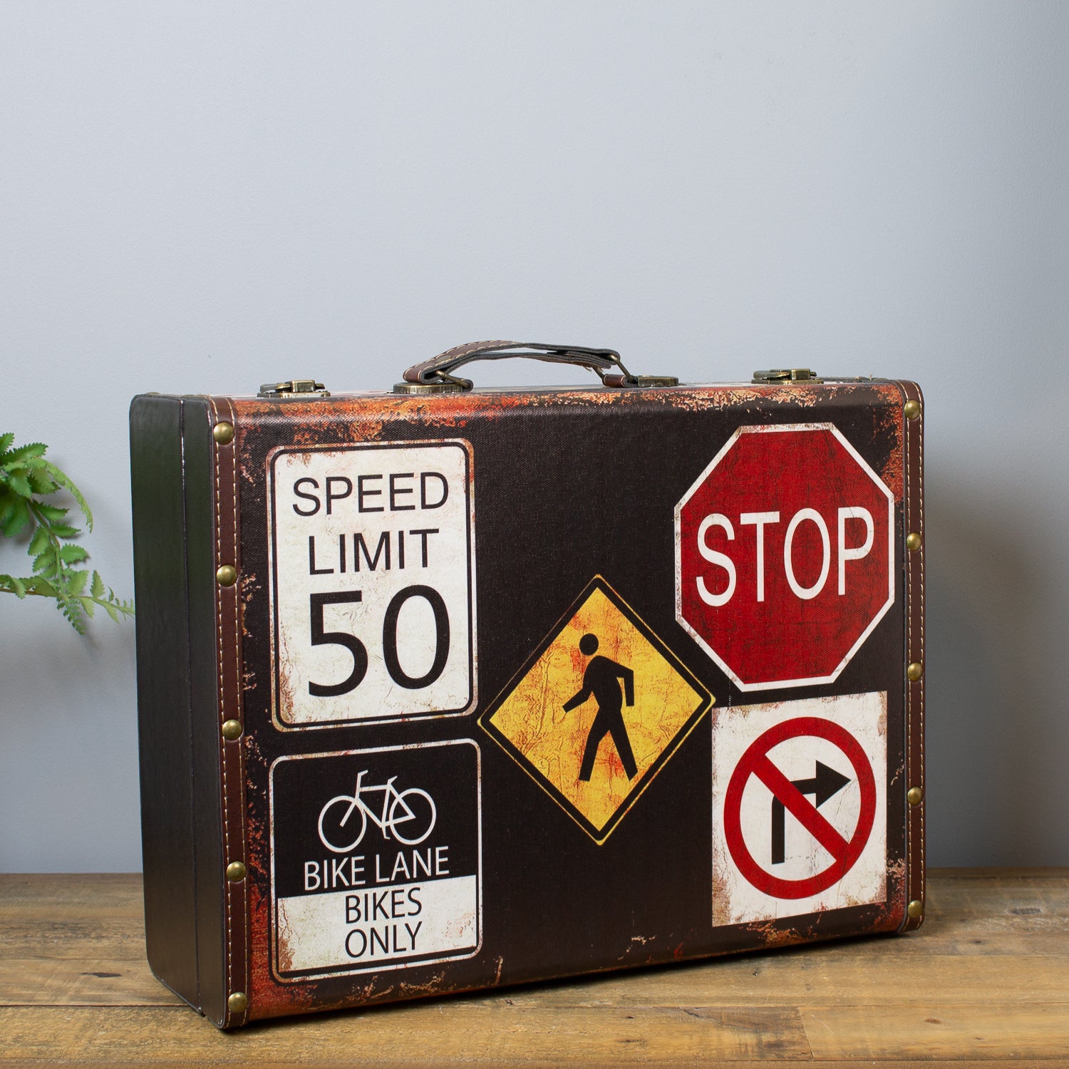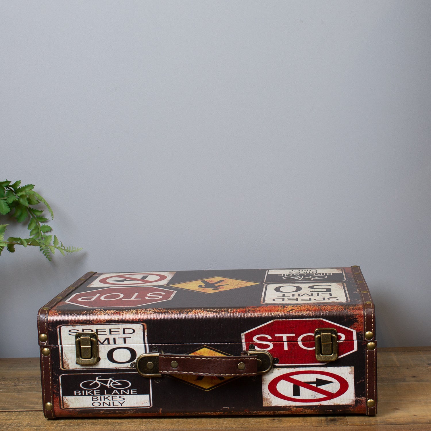 Make a bold statement with these vintage-style storage cases, decorated with a collage of classic UK road signs. From the unmistakable red STOP sign to familiar pedestrian and cycle route markers, it’s a playful nod to British roads and retro design. Available in 3 sizes, choose one or grab yourself a full set.