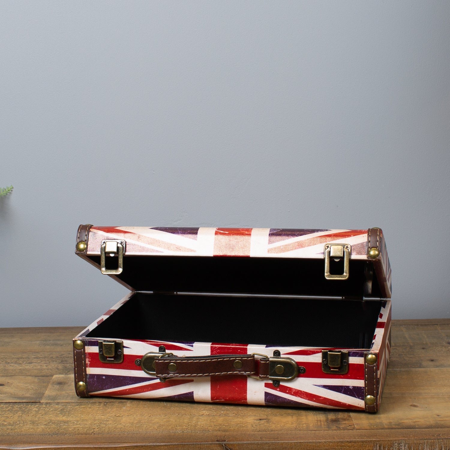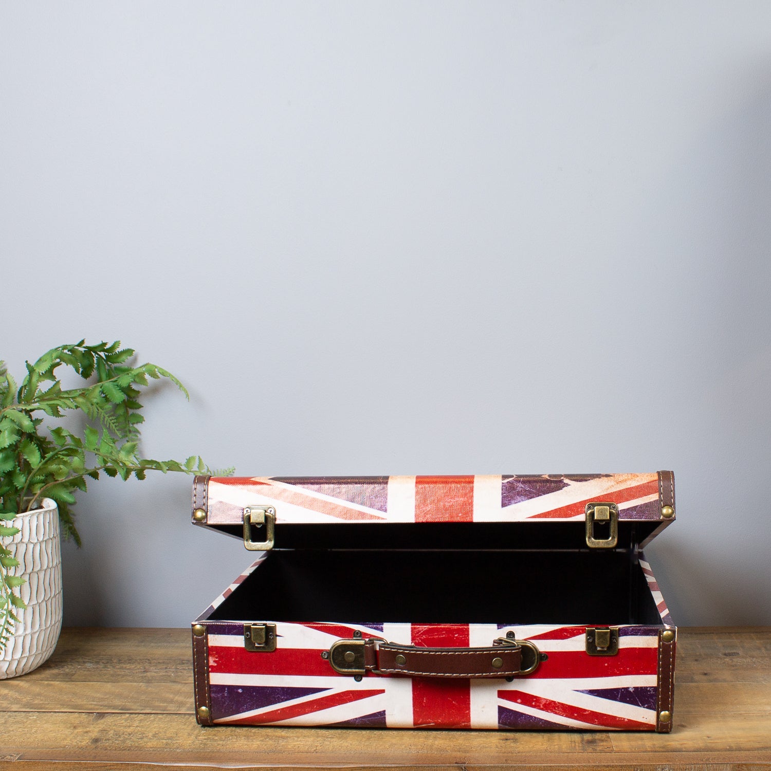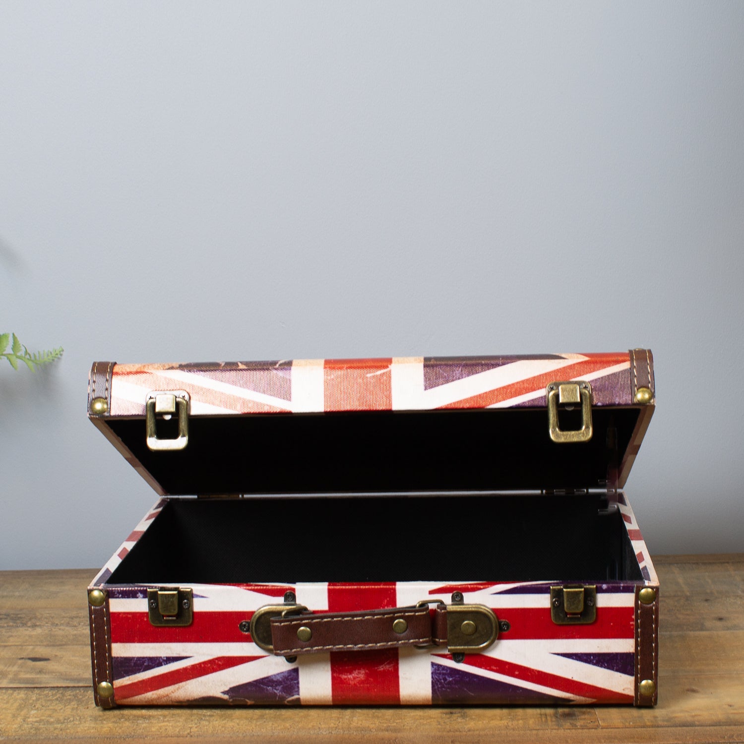 Add a dash of retro Britannia to your home with these beautifully crafted vintage-style storage cases. Featuring a bold Union Jack design with faux leather corner trims, a stitched handle and antique-style fastenings, they’re as charming as they are functional.