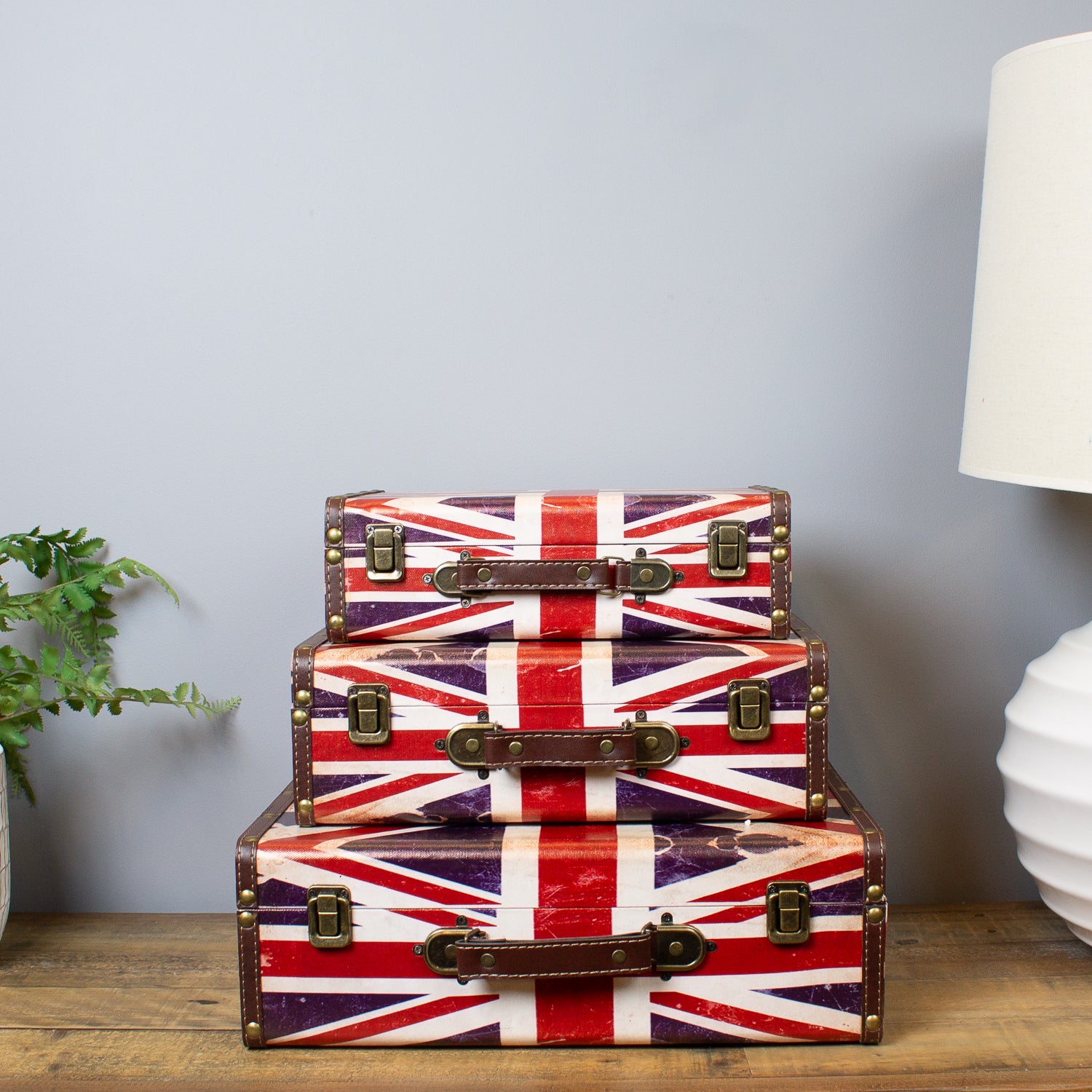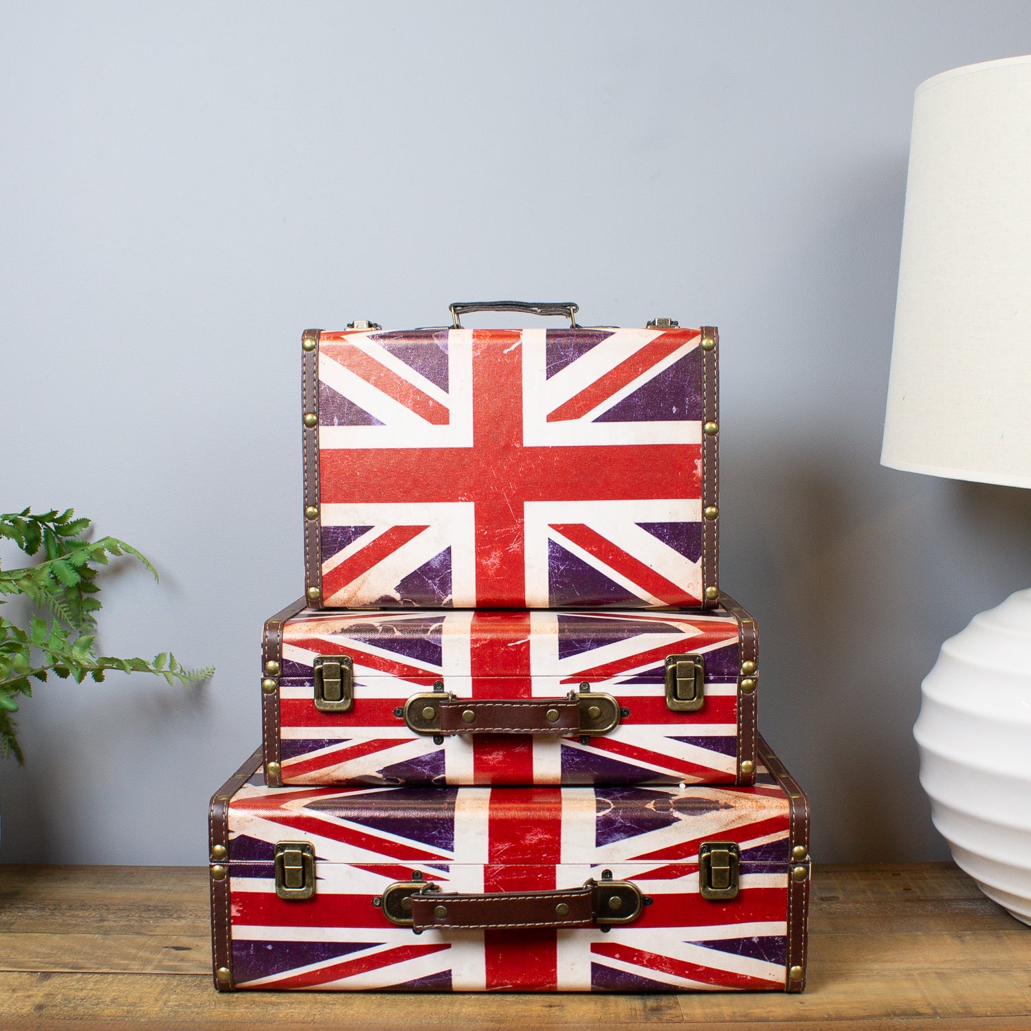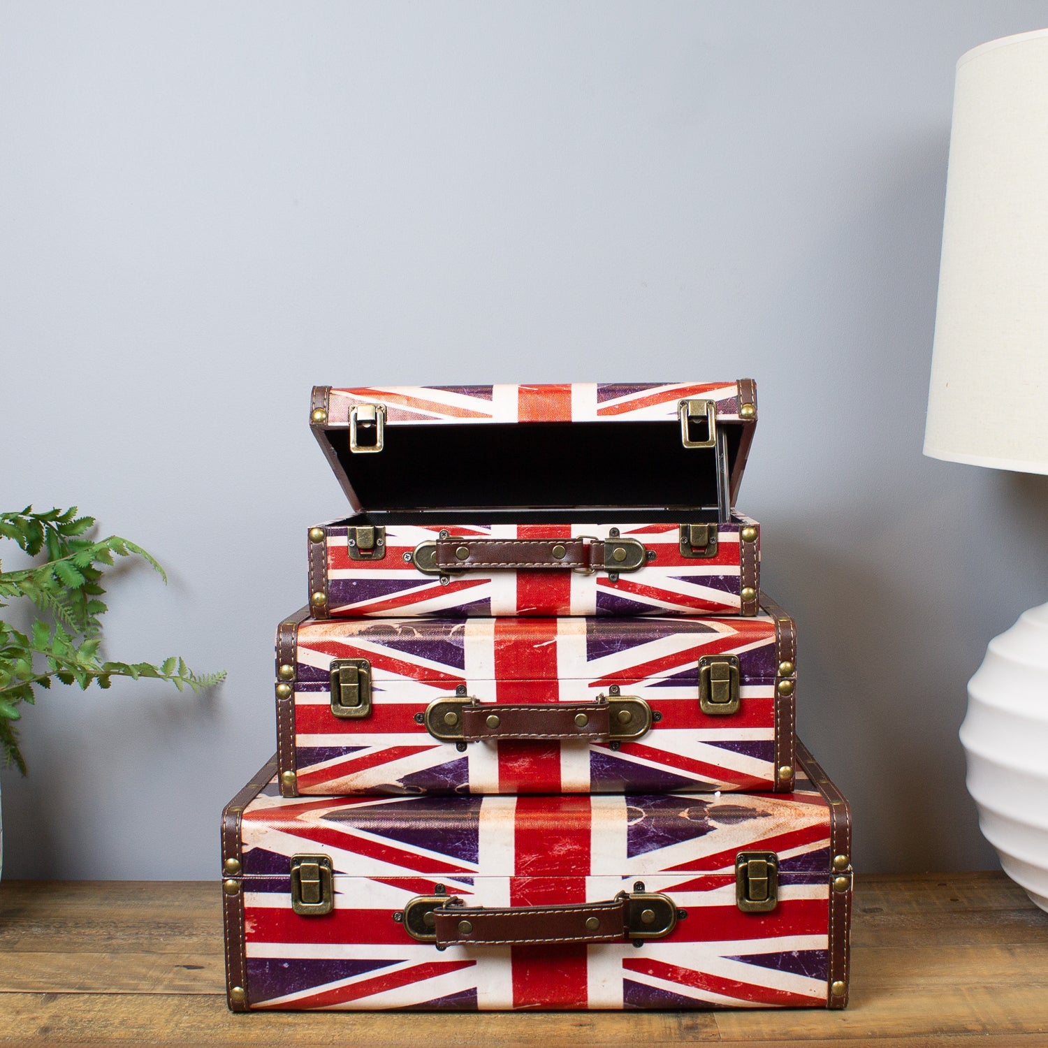 Add a dash of retro Britannia to your home with these beautifully crafted vintage-style storage cases. Featuring a bold Union Jack design with faux leather corner trims, a stitched handle and antique-style fastenings, they’re as charming as they are functional.