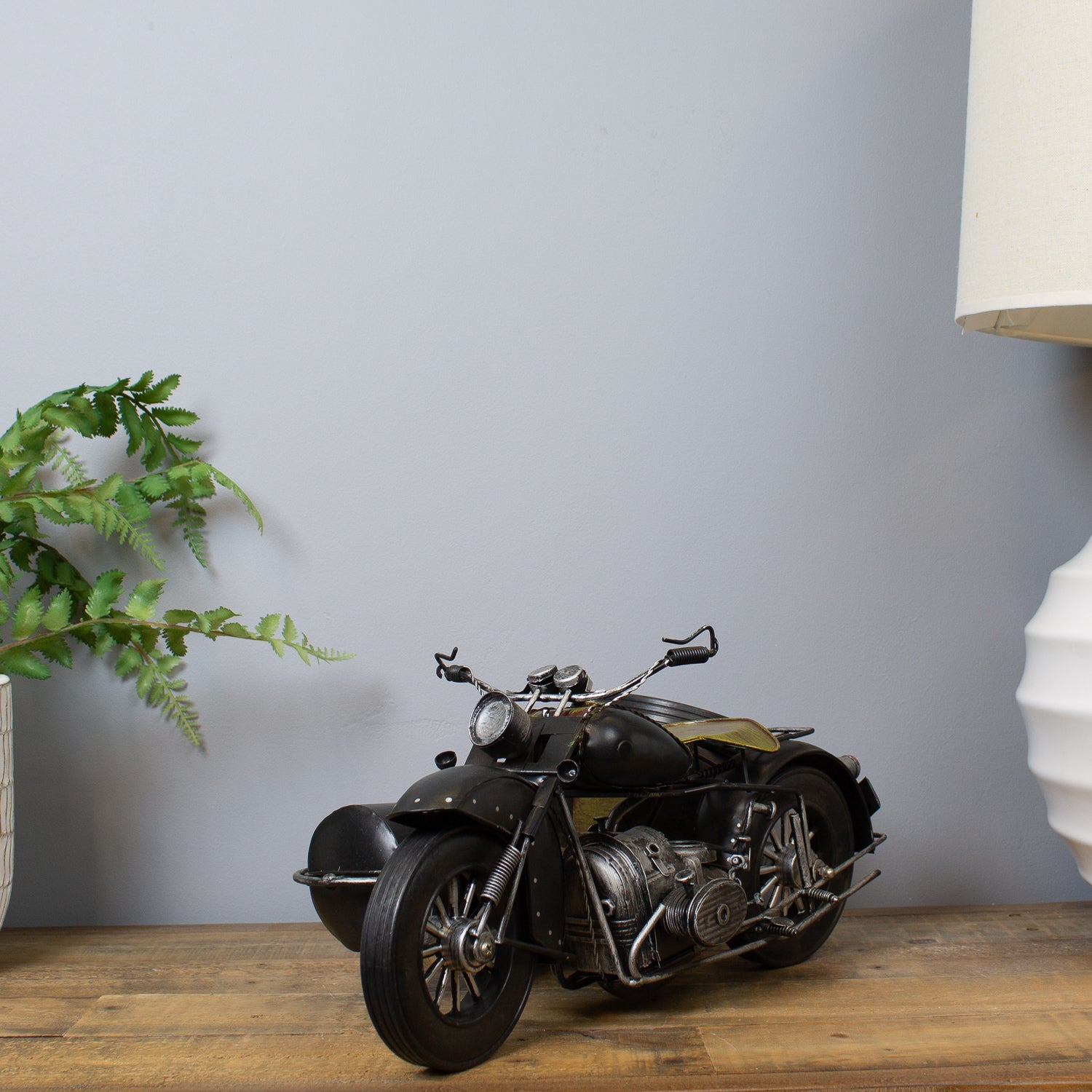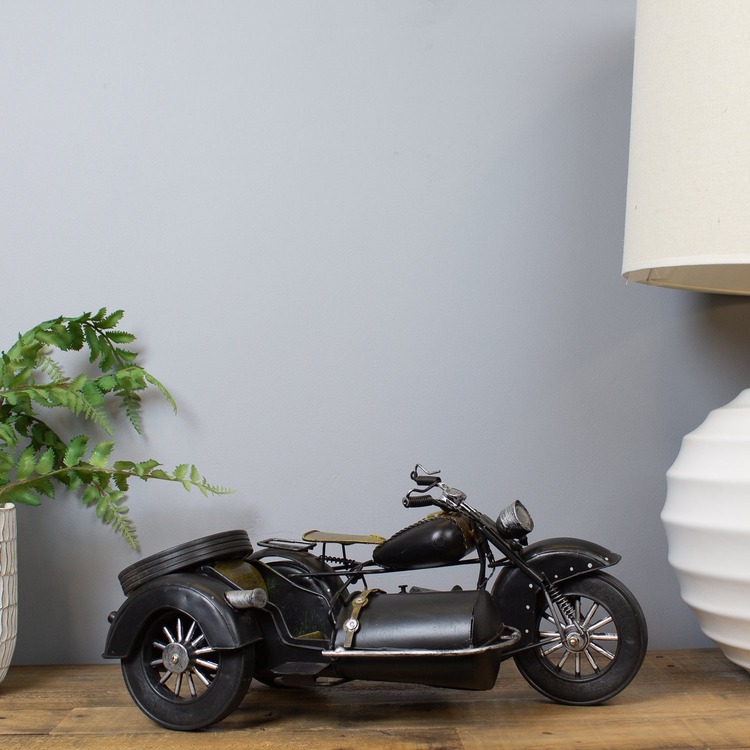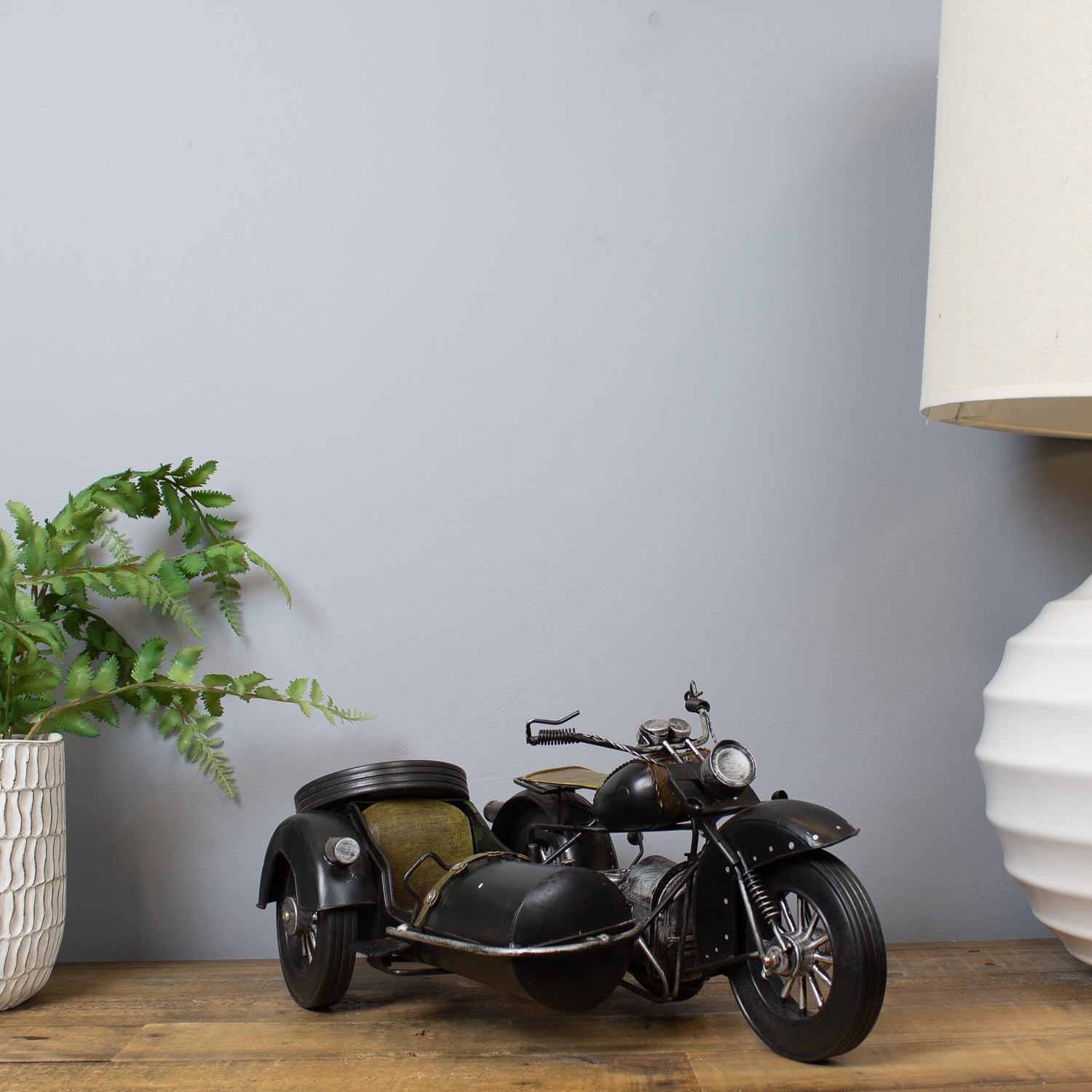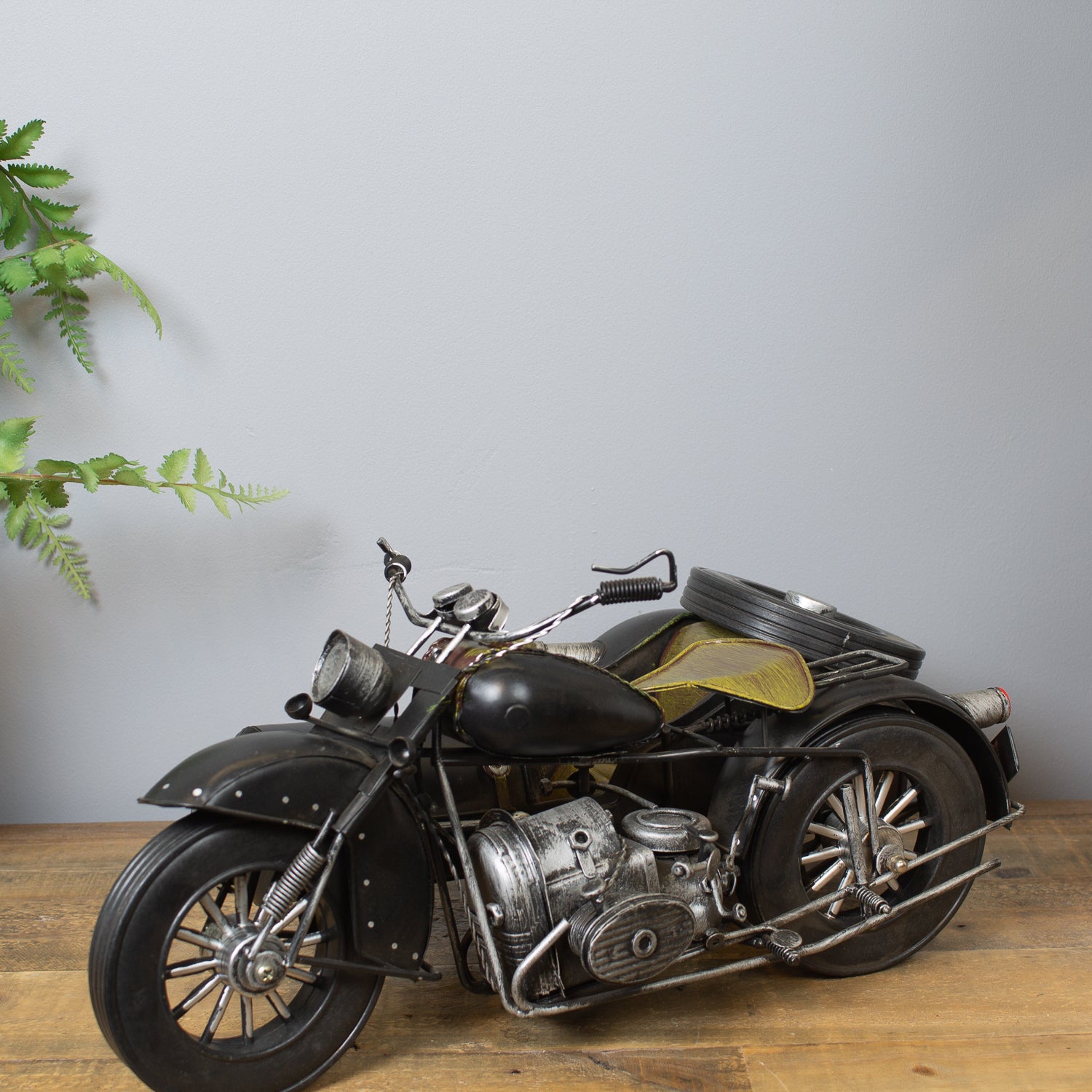 Bursting with character and incredible engine detail, this piece captures the spirit of the open road, perfect for display in a study, man cave, or anywhere that needs a little rebel energy. The sidecar? A nod to days when travel was as much about style as it was about speed.