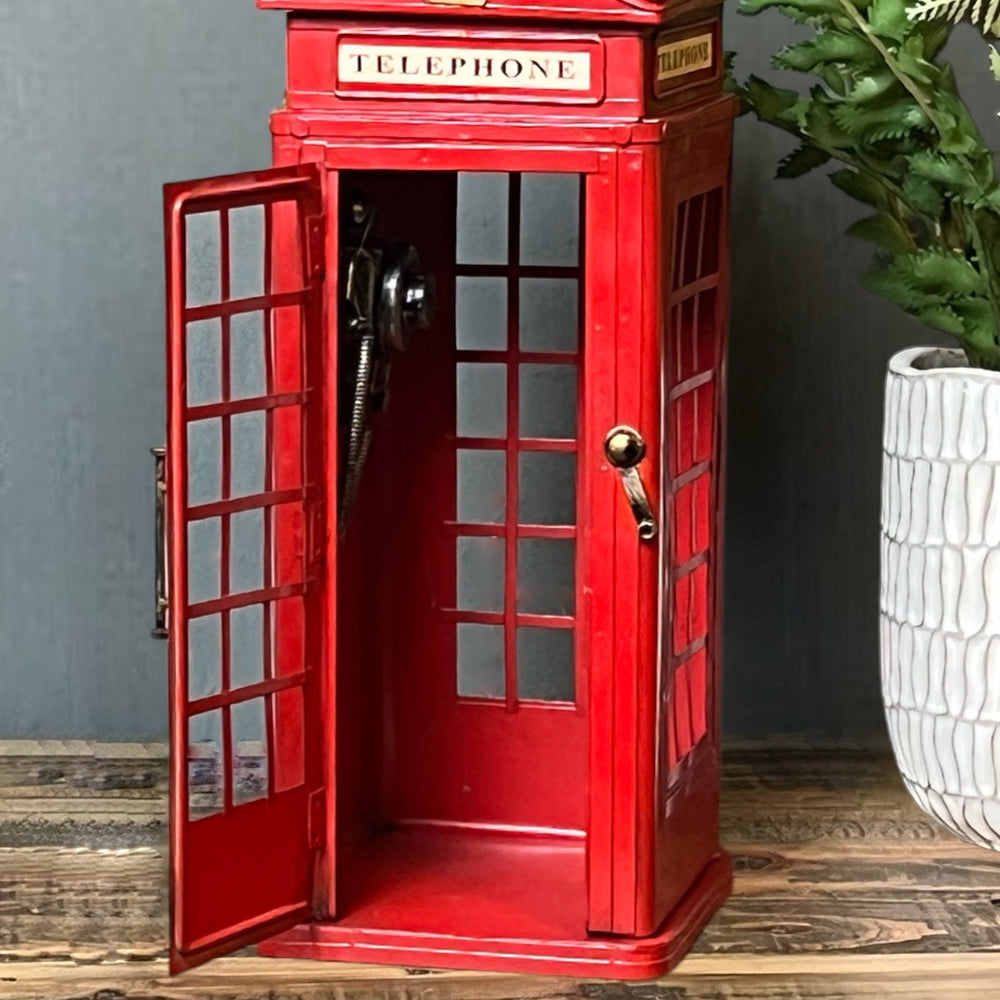 This vintage metal replica red telephone box adds a touch of nostalgia to any space. Crafted with attention to detail, it captures the charm of the iconic British phone boxes. Perfect for home décor or as a unique statement piece, this telephone box evokes a sense of history and character.