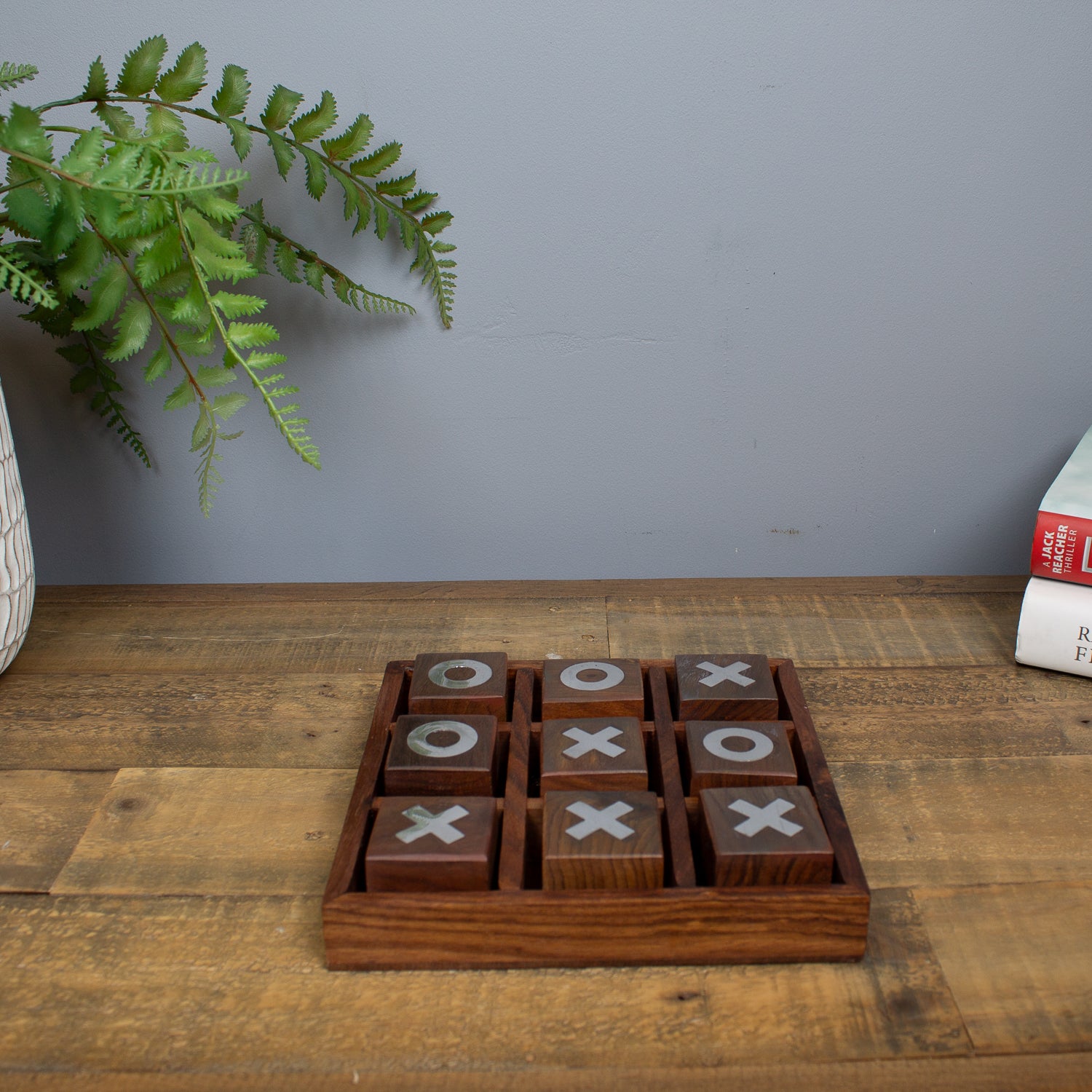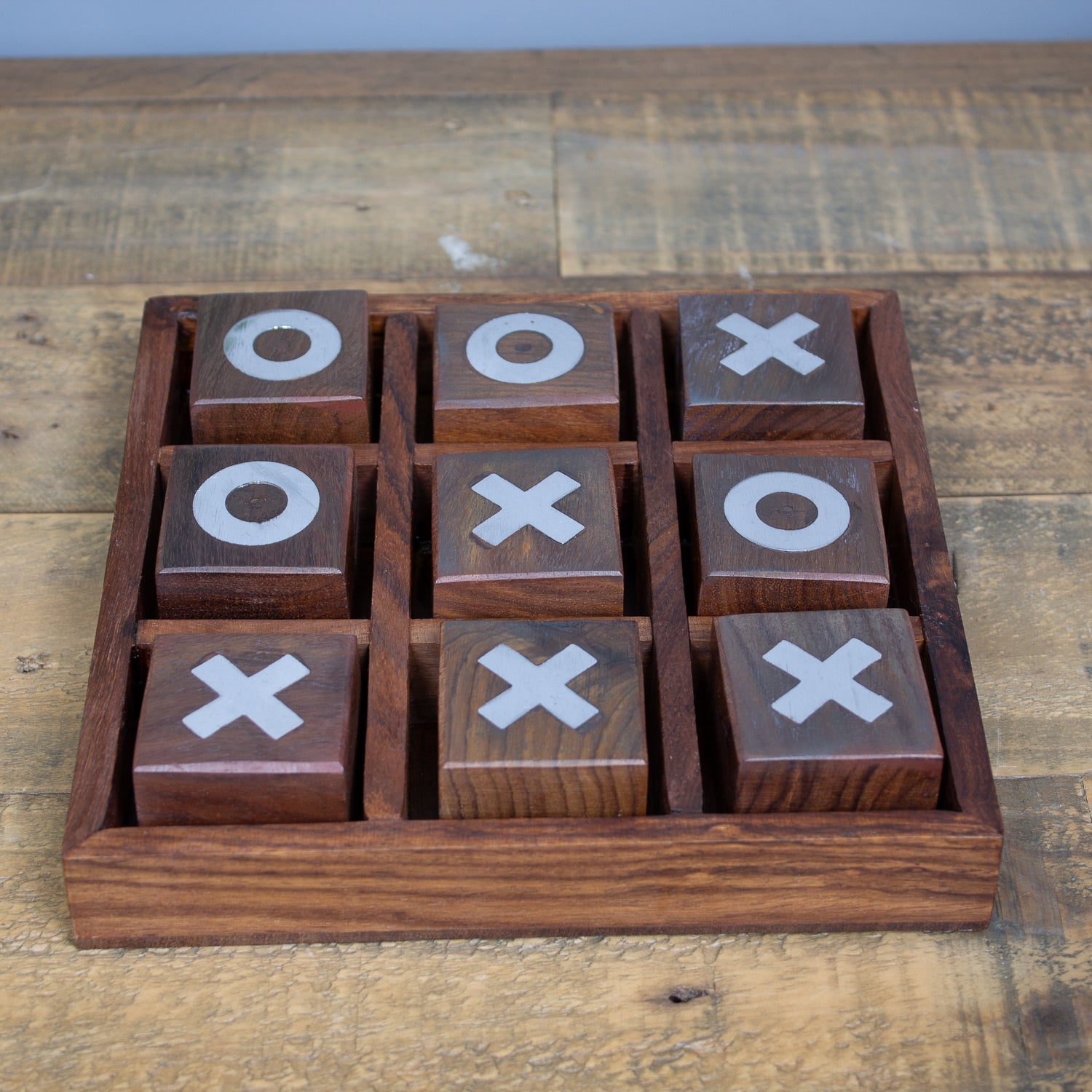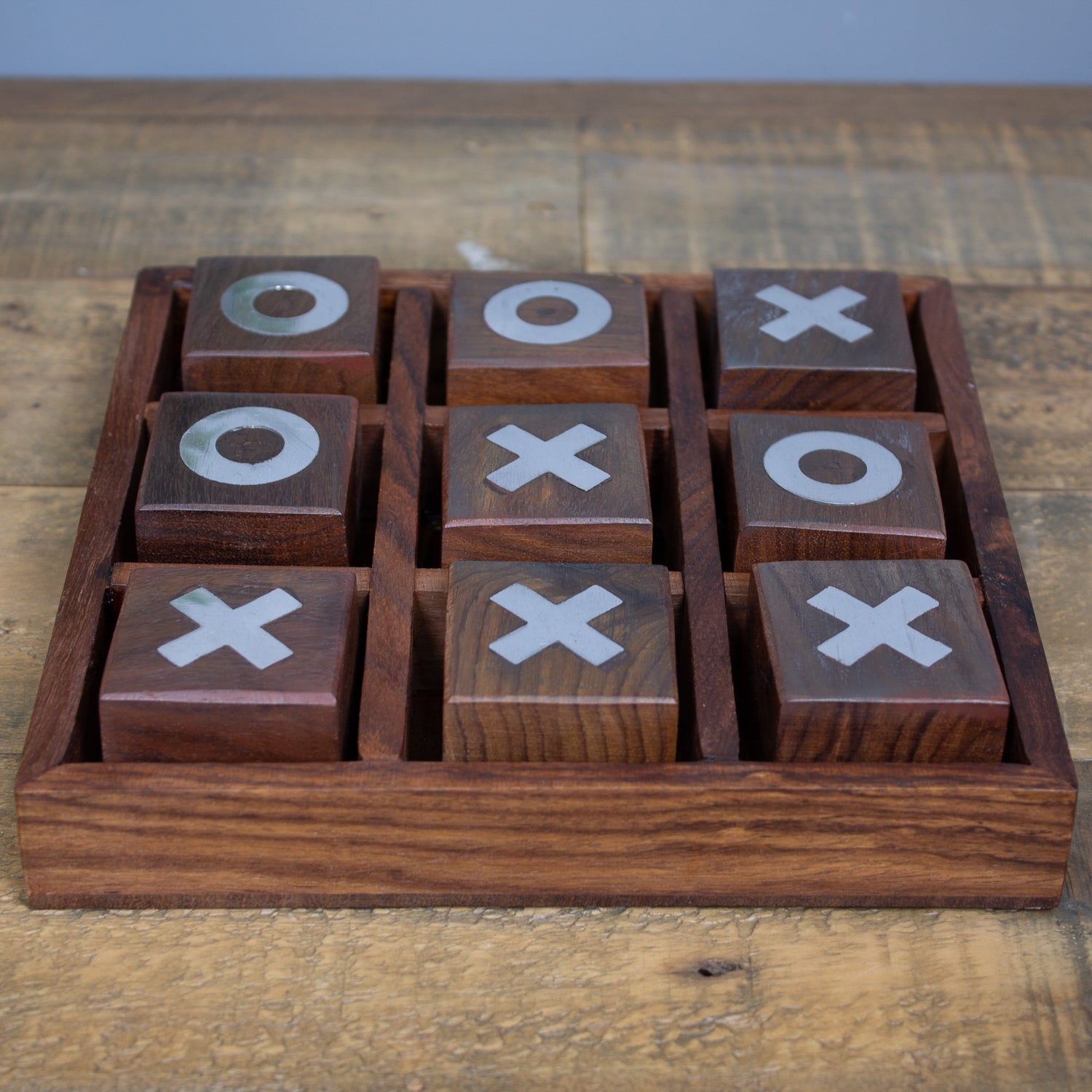 Beautifully handcrafted from rich sheesham wood, this elegant Tic Tac Toe set is both a game and a conversation piece. The deep brown wood exudes warmth and character, while the nickel inlay markings add a hint of refined shine, elevating the classic game to a piece of functional art.